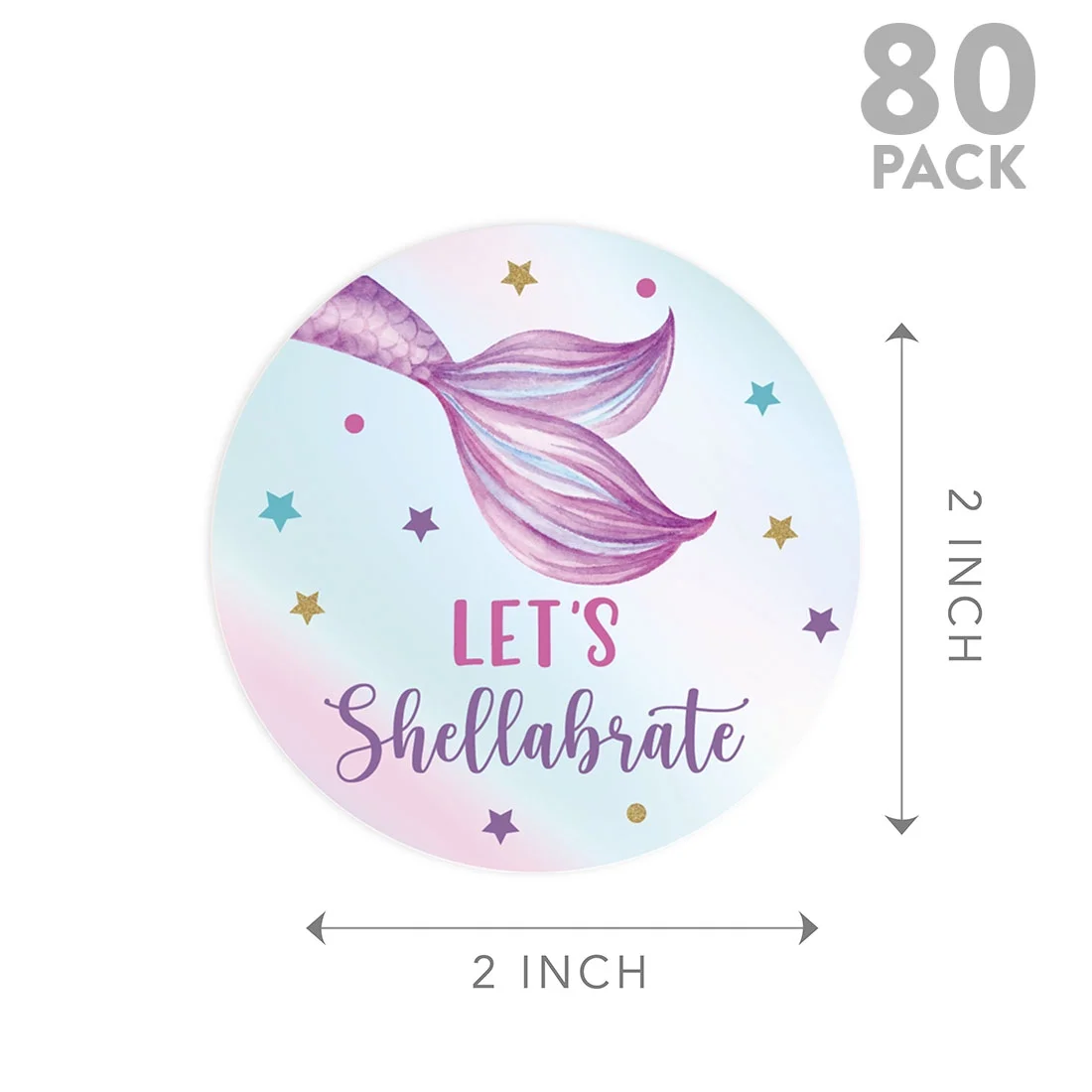 Koyal Wholesale Kids Party Favor Thank You Stickers, 80-Pk 2-Inch Round Mermaid Birthday Stickers For Kids Party Favors