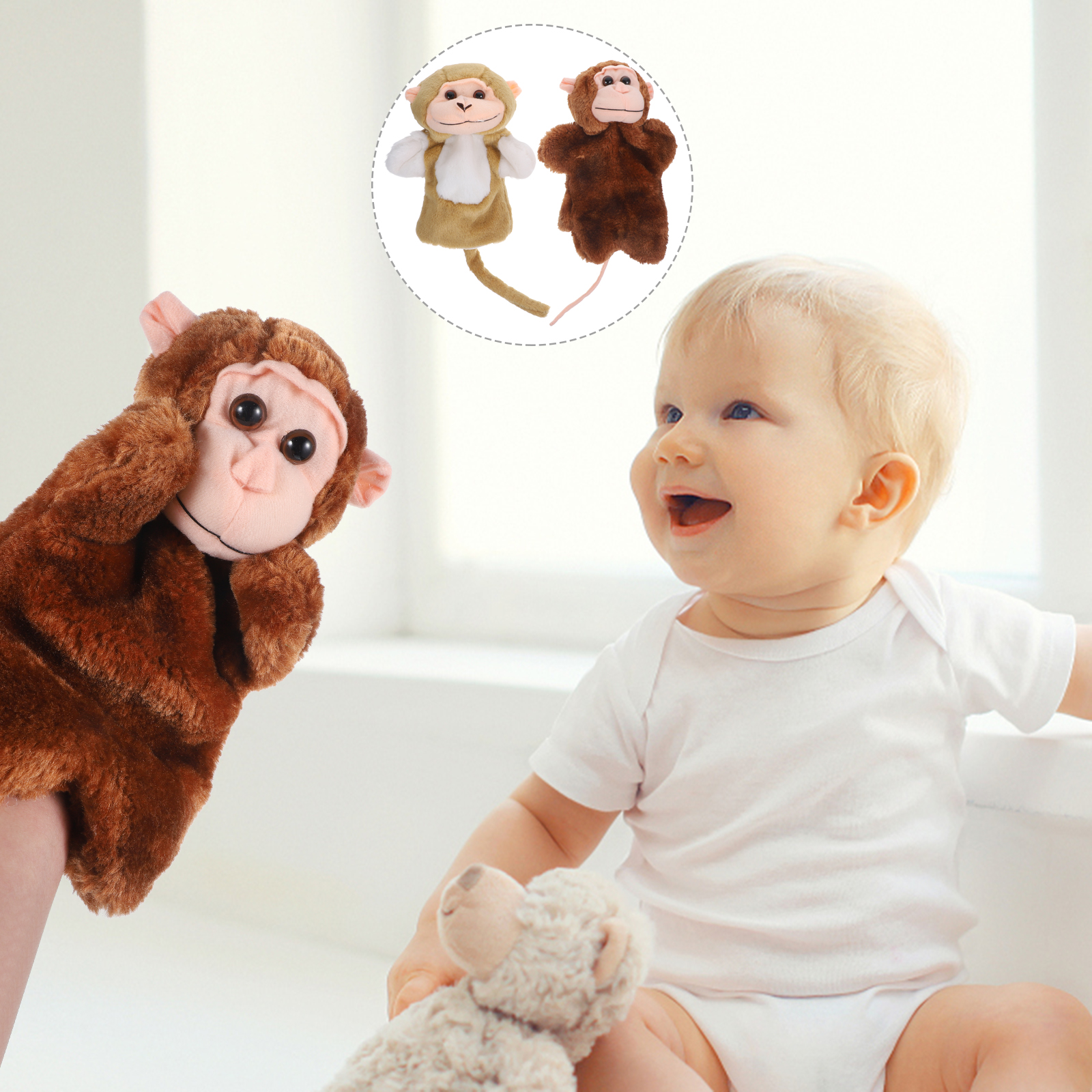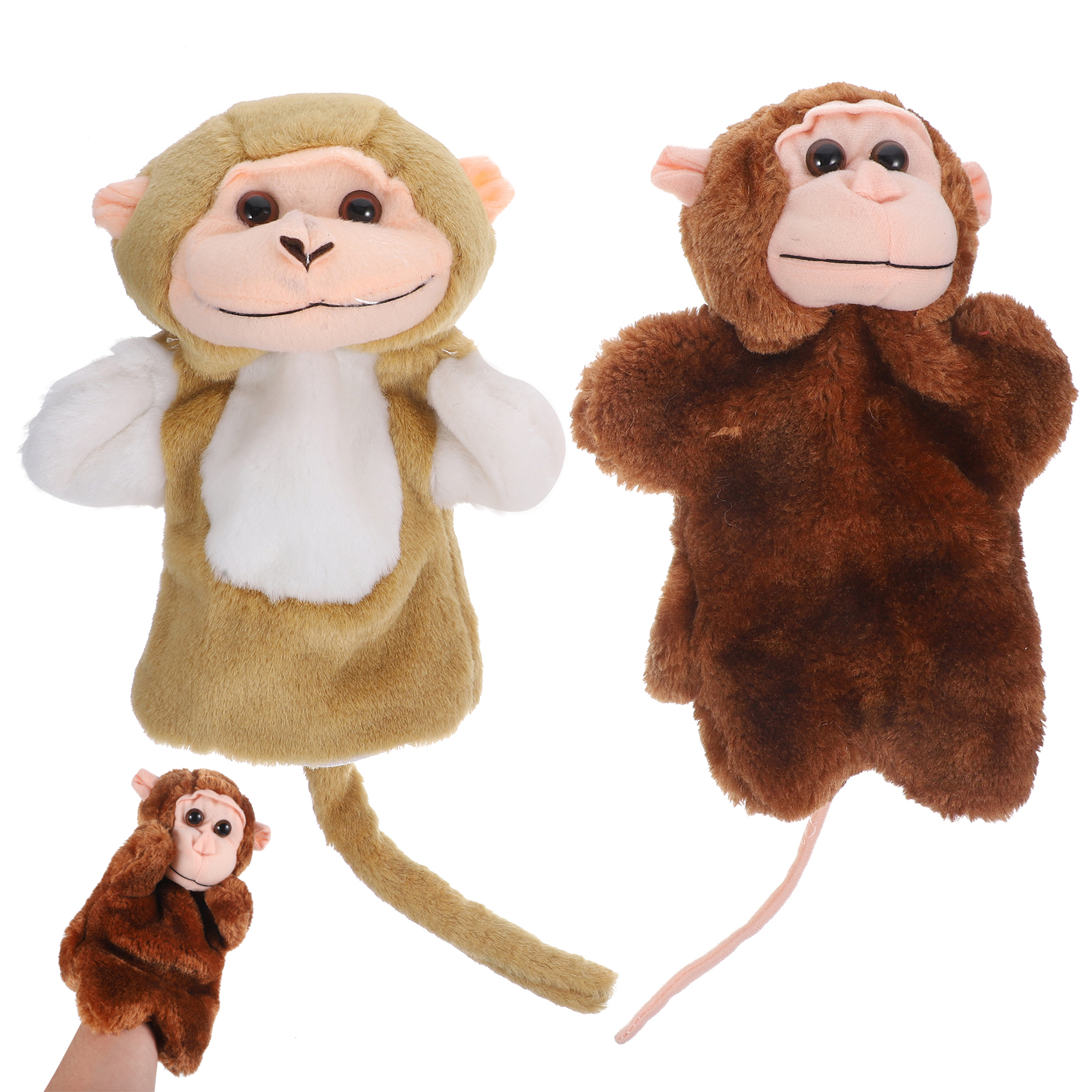 2Pcs Monkey Hand Puppet Decorative Hand Puppet Hand Toy Lifelike Hand Toy