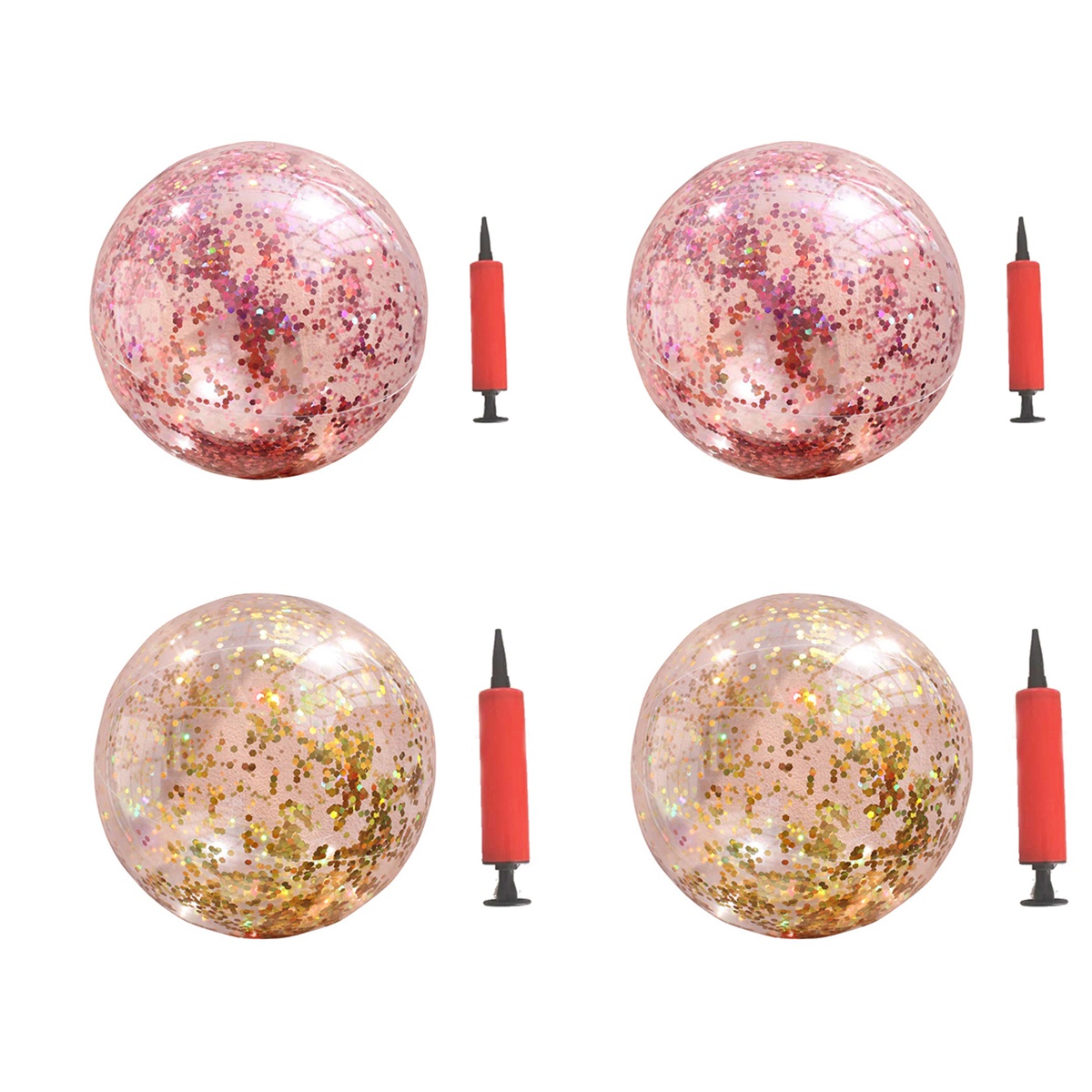 4 pcs Glitter Sequin Beach Balls Round Transparent PVC Balls Funny Water Play Beach Balls Inflatable Ball Toys with Pumps (Luxury Gold Sequin+Rose Gold Sequin, 1pc for Each Color)
