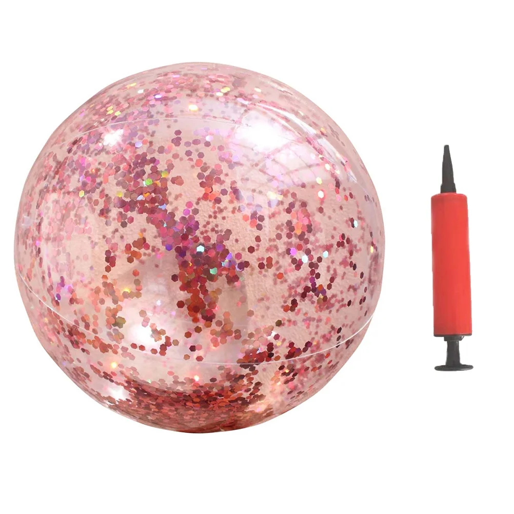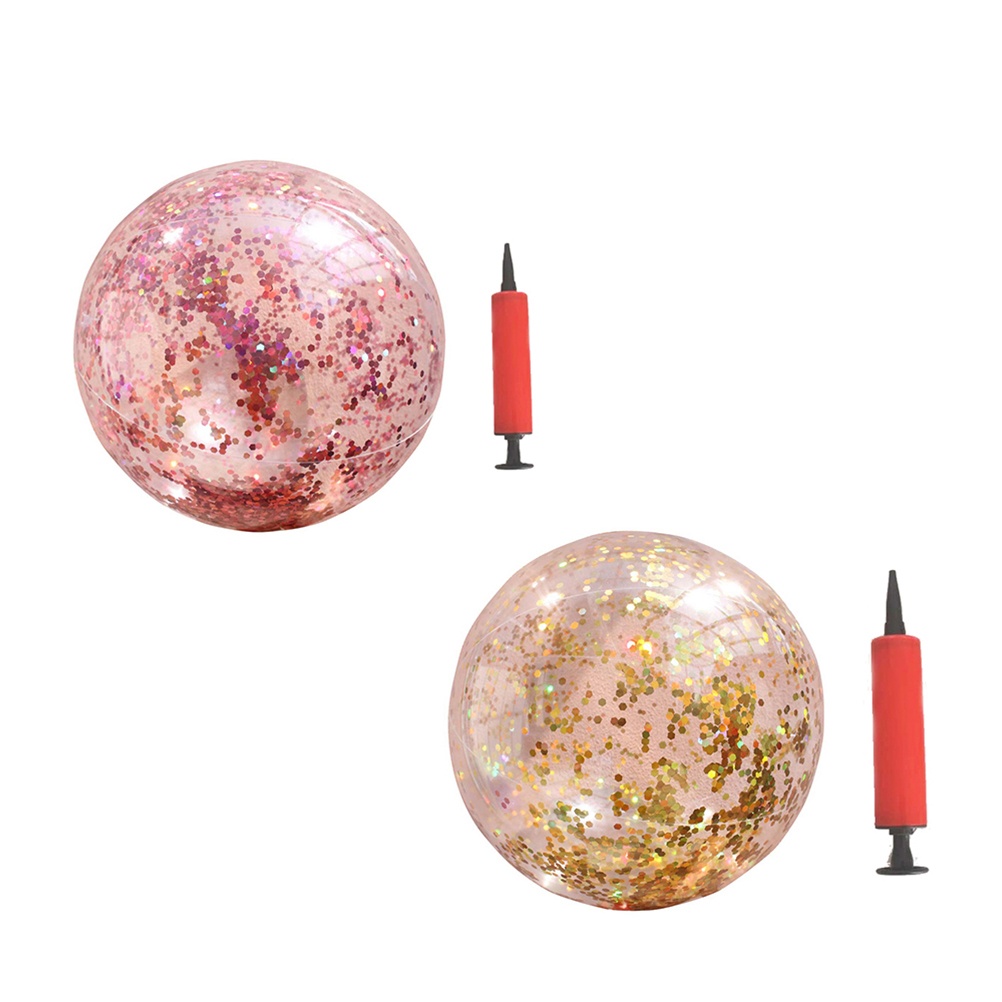 Glitter Sequin Beach Balls 2pcs Glitter Sequin Beach Balls Round Transparent PVC Balls Funny Water Play Beach Balls Inflatable Ball Toys with Pumps (Luxury Gold Sequin+Rose Gold Sequin, 1pc for Each