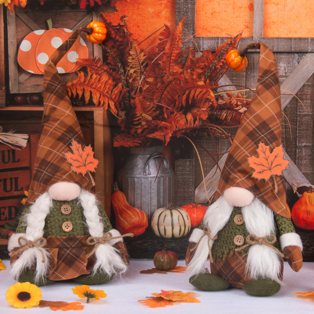 Halloween Decor Faceless Doll Harvest Festival Pumpkin Maple Leaf Sitting Doll