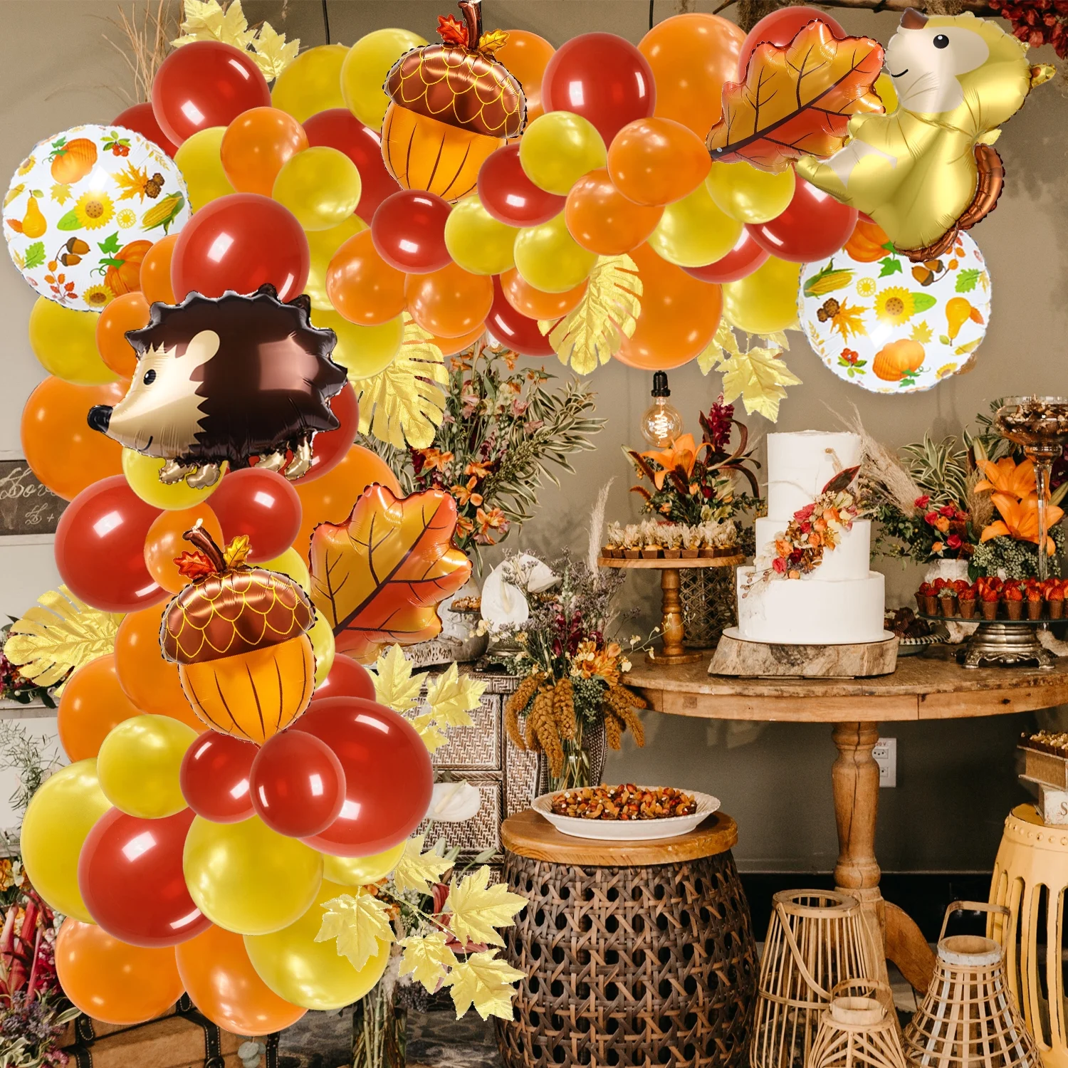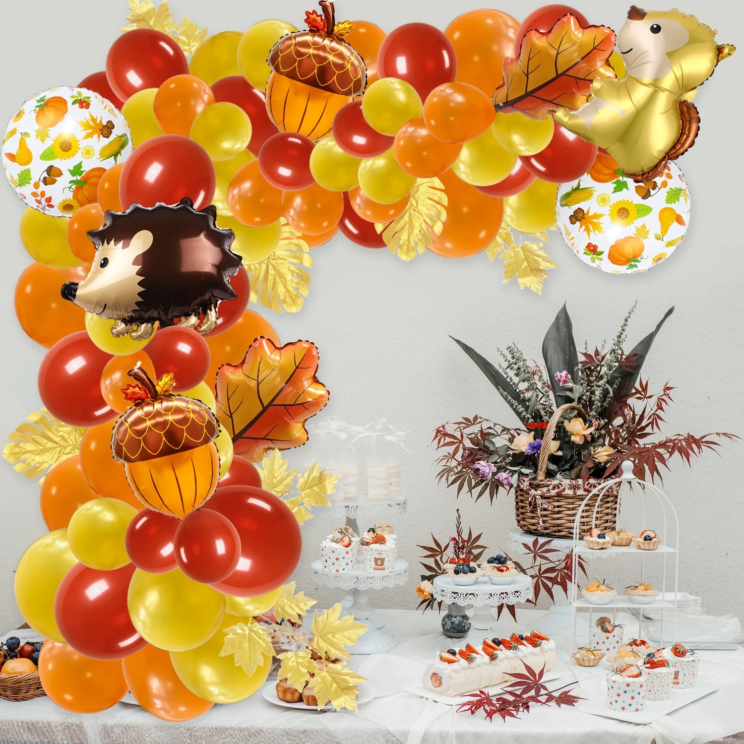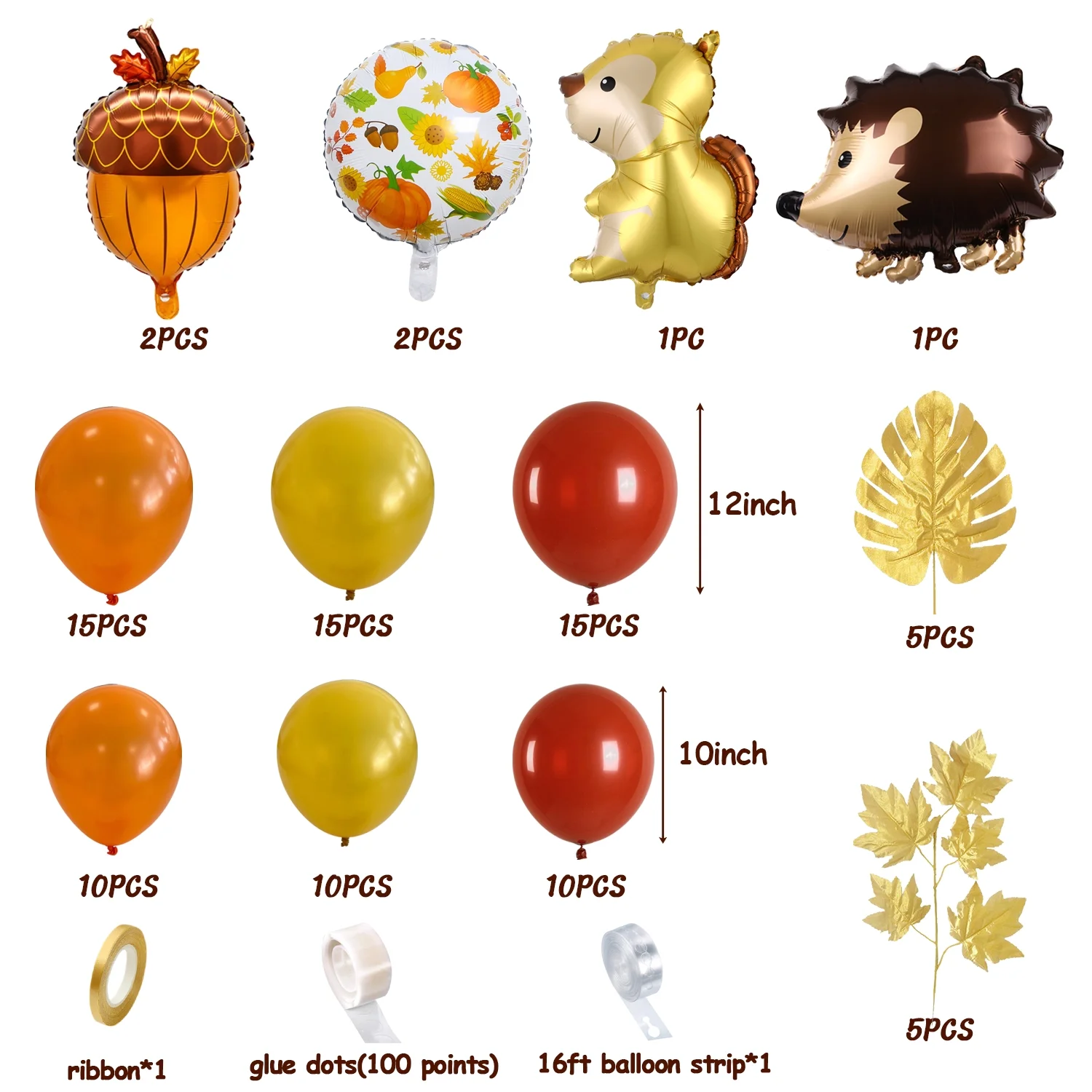 Fall Balloons Arch Garland Kit, Orange Brown Gold Balloons Balloons Arch Strip Maple Leaves for Wedding Autumn Harvest Birthday Thanksgiving Party Fall Decorations