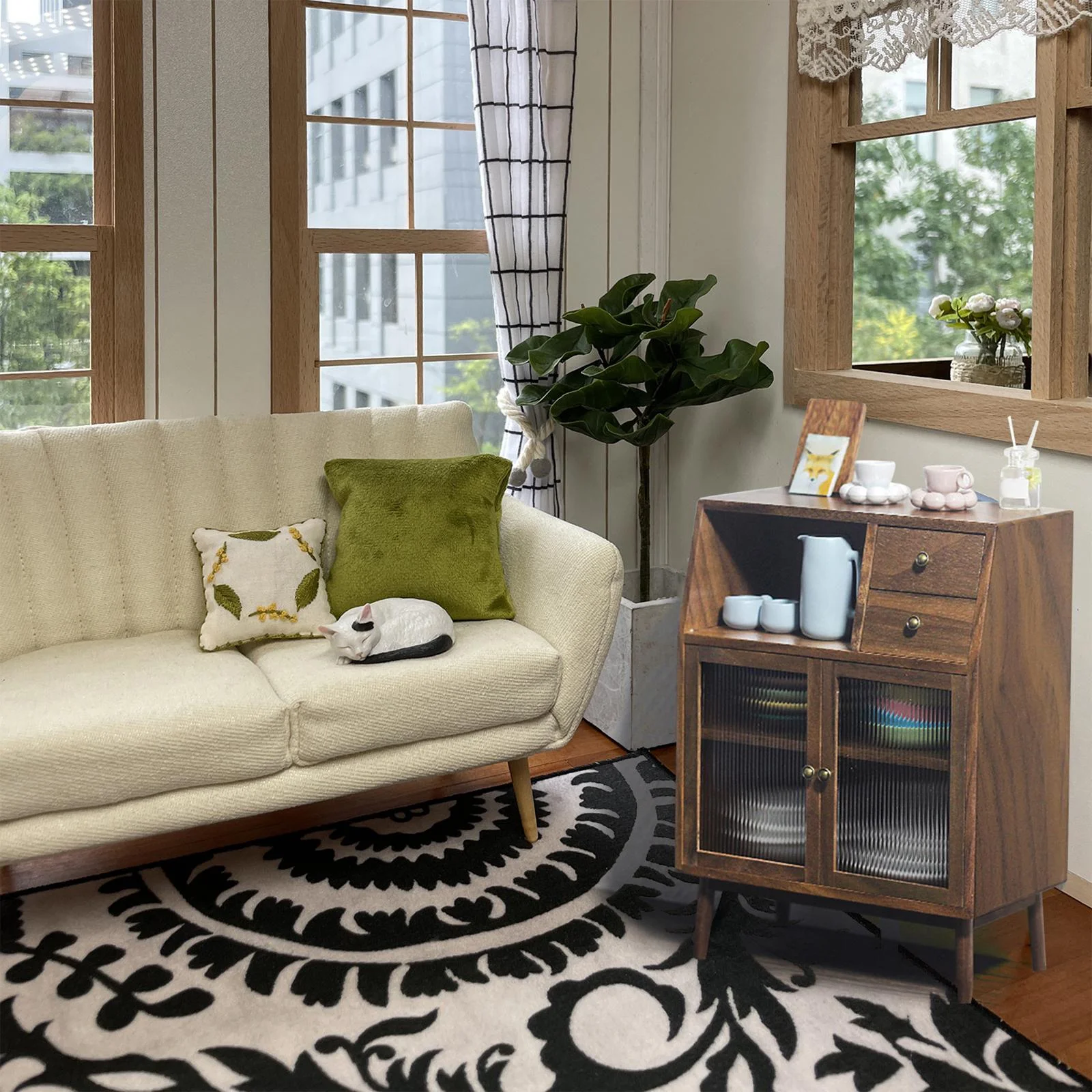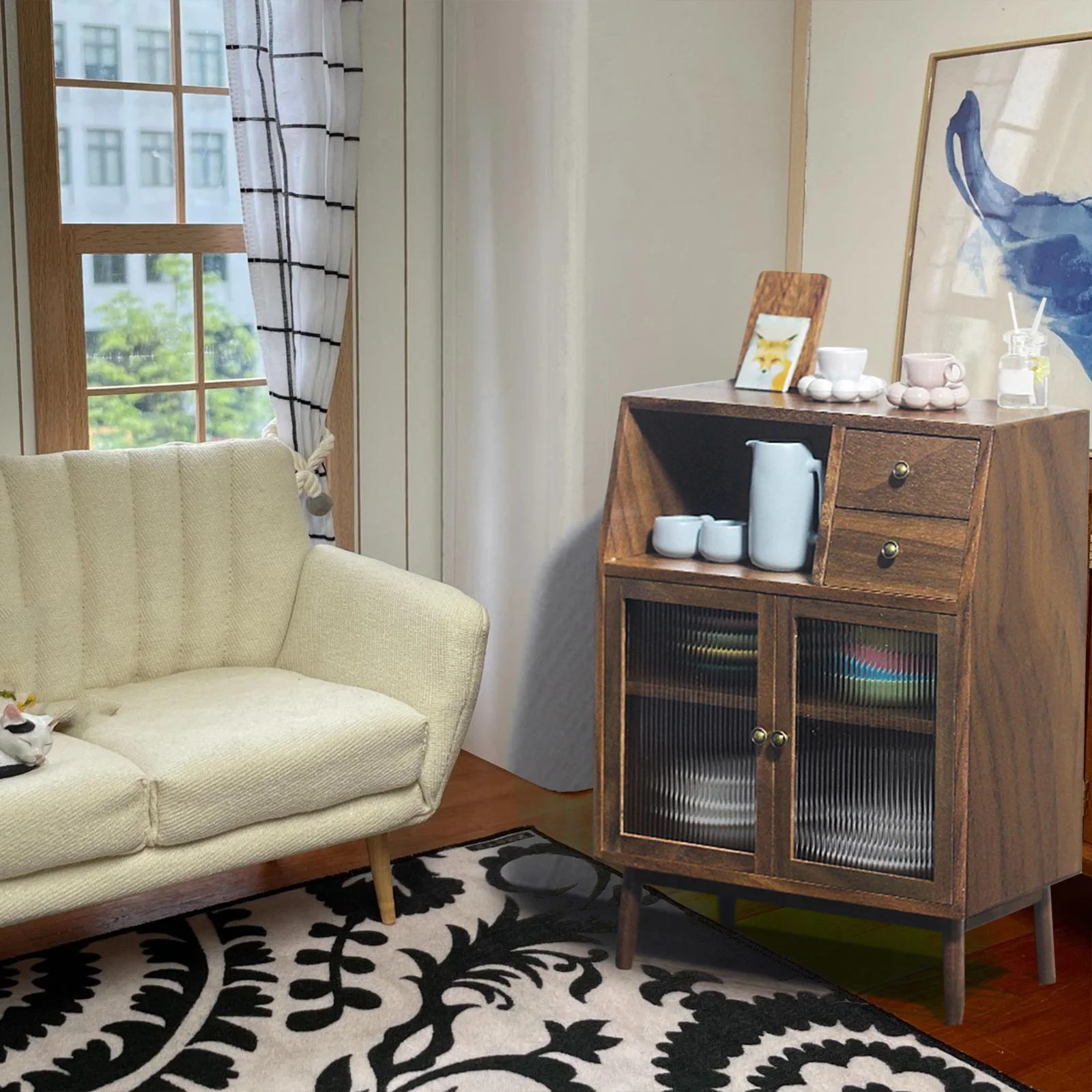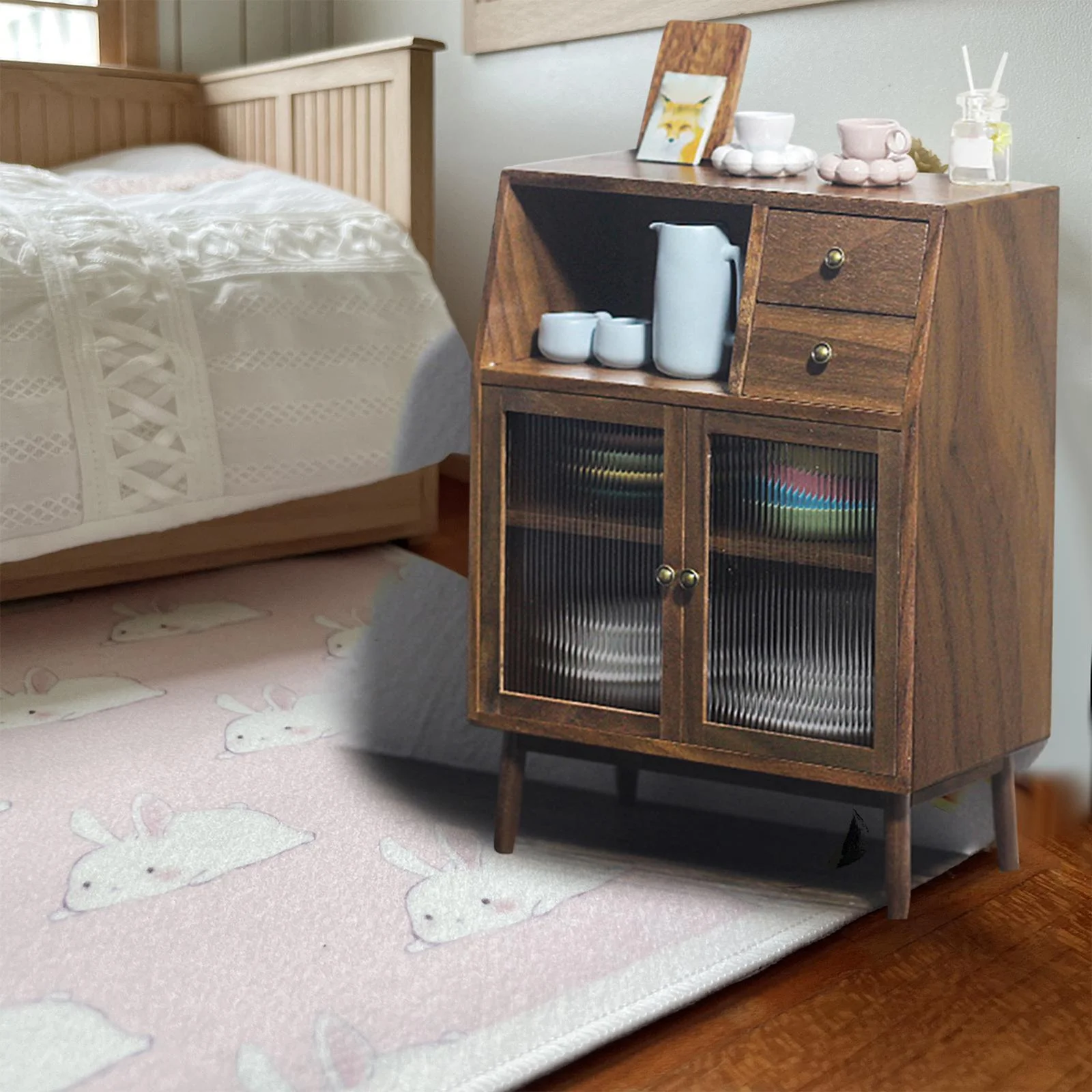 Mini Walnut Wood Cupboard Accessories Toys Life Scene,Kitchen Micro Landscape,Living Room Home Furniture 1/12 Scenery Supplies