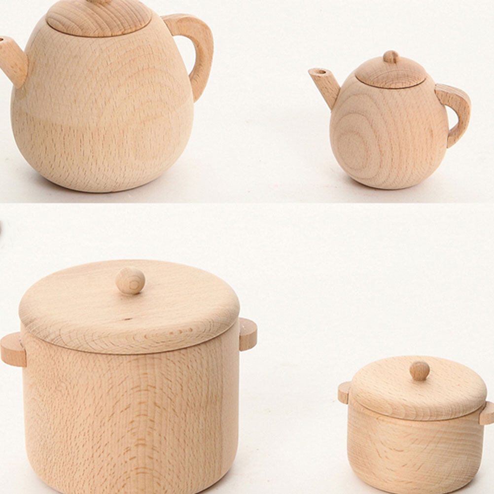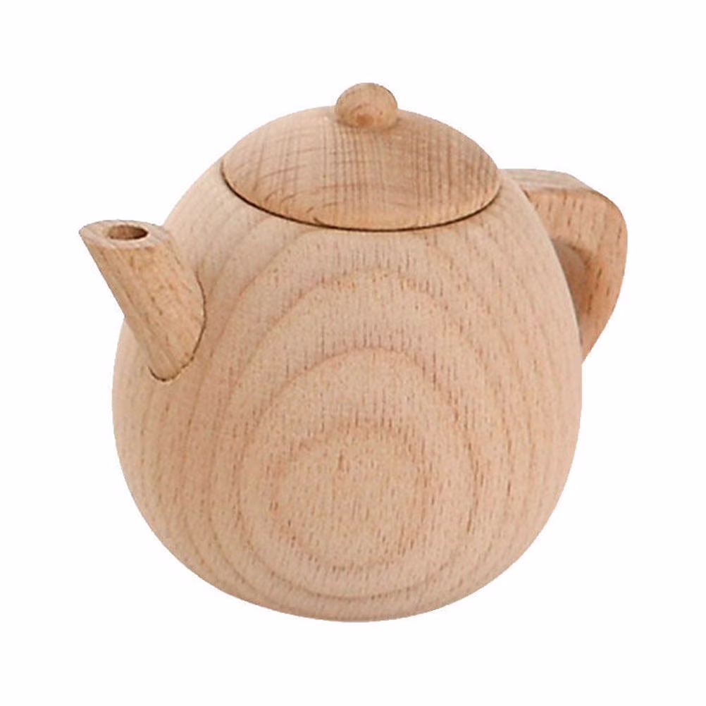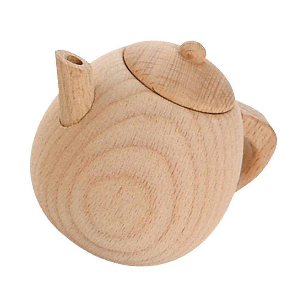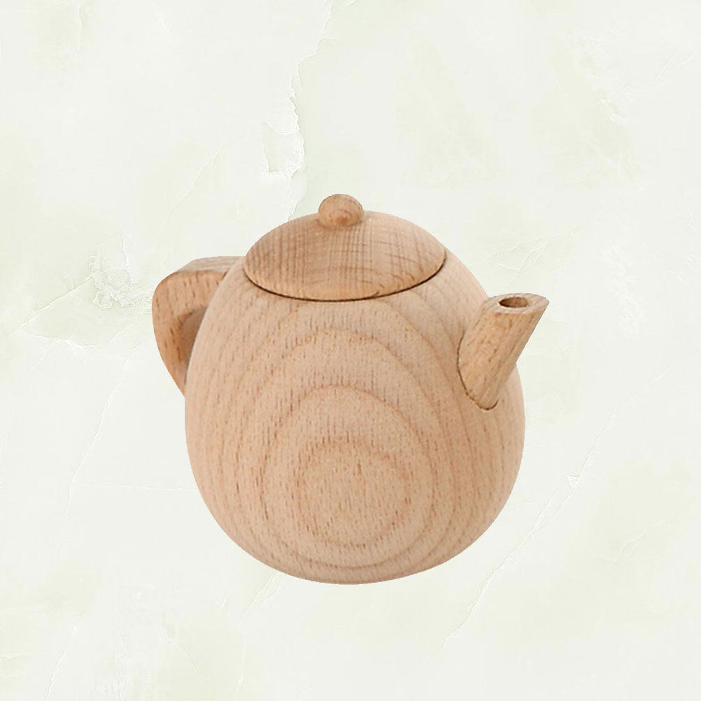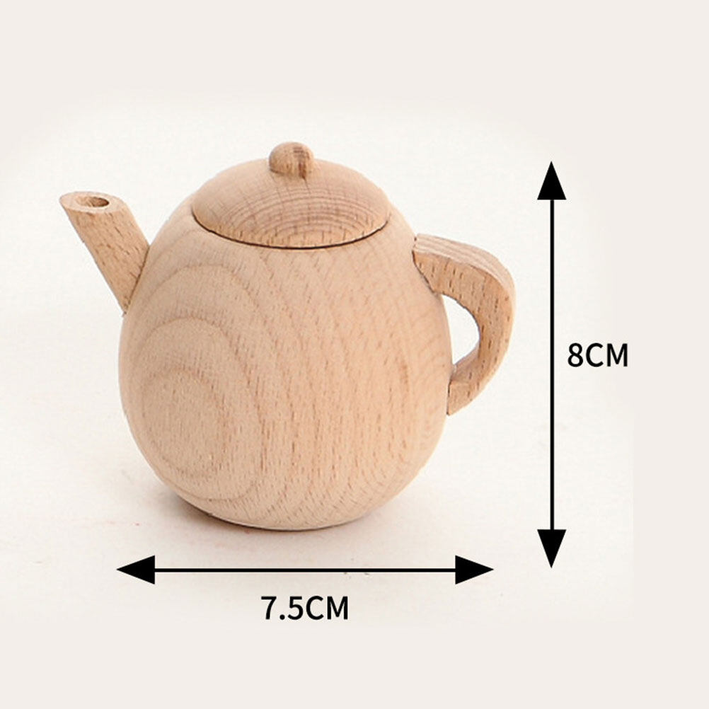 1PC Solid Wood Tableware Toy No Paint Tea Pot Toy Simulated Kitchen Cooking Tea Kettle Toy Mini Tea Pot Toy Funny Play House Cutlery Toy for Home Nursery Size M