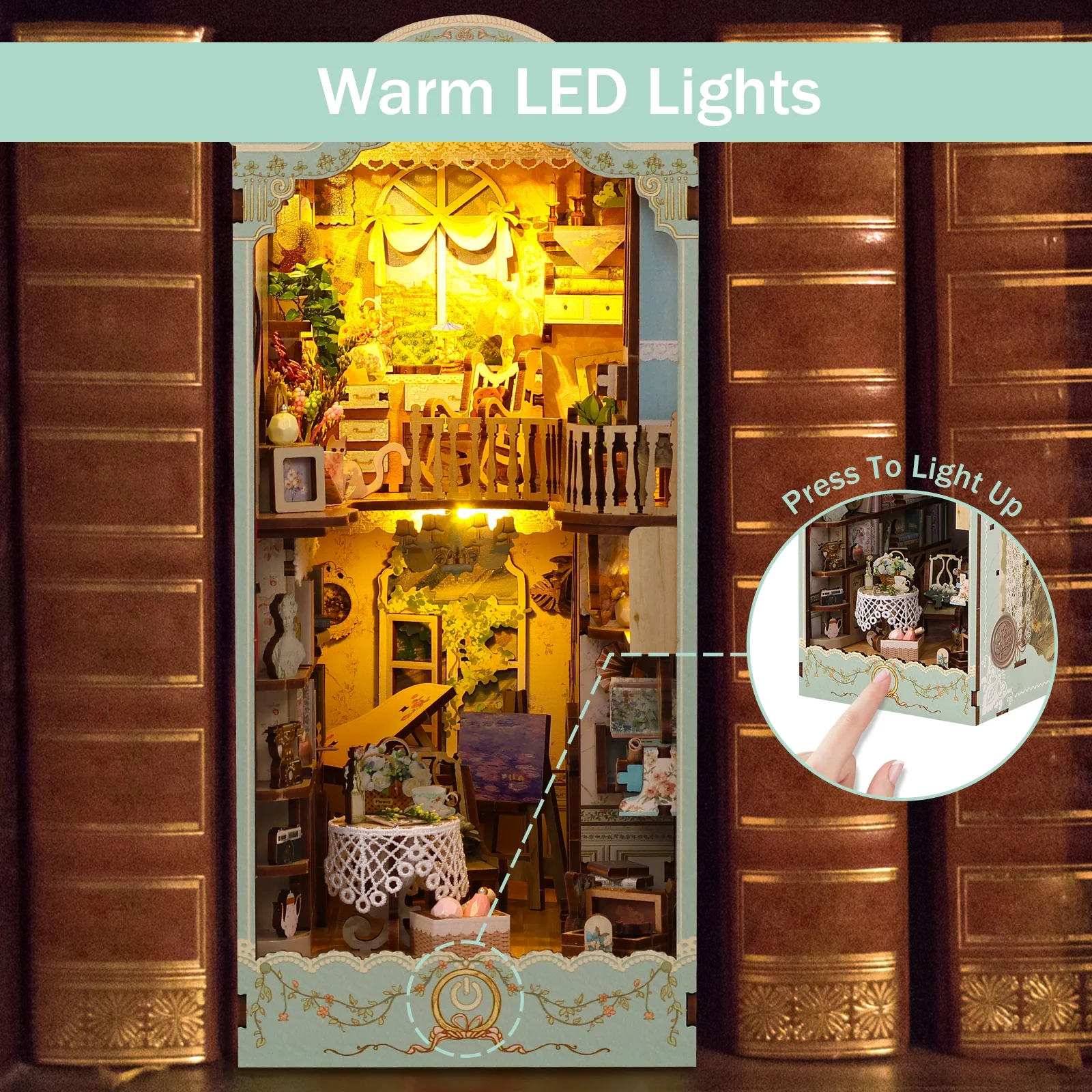 Morima DIY Book Nook Kit,3D Wooden Puzzle Bookshelf Insert Decor with LED Light,DIY Miniature Dollhouse Model Kit for Kids Adults