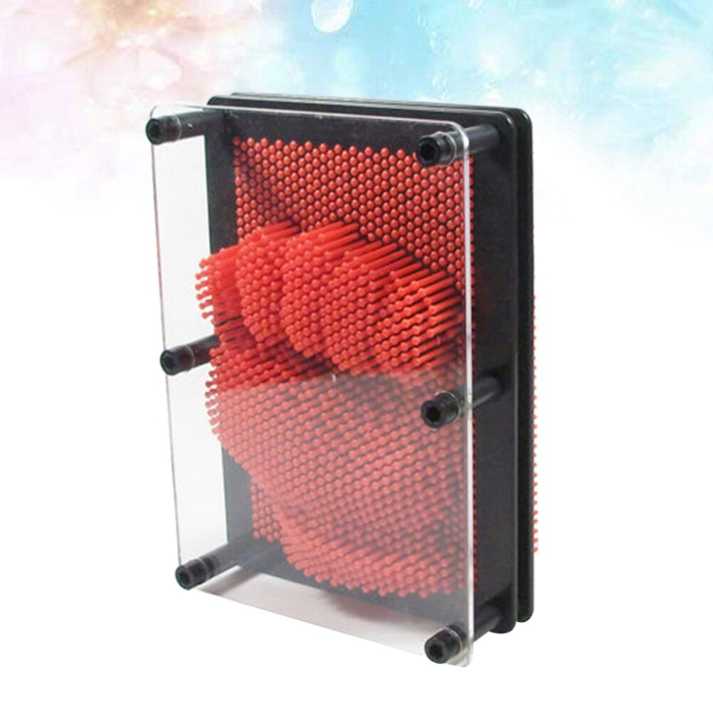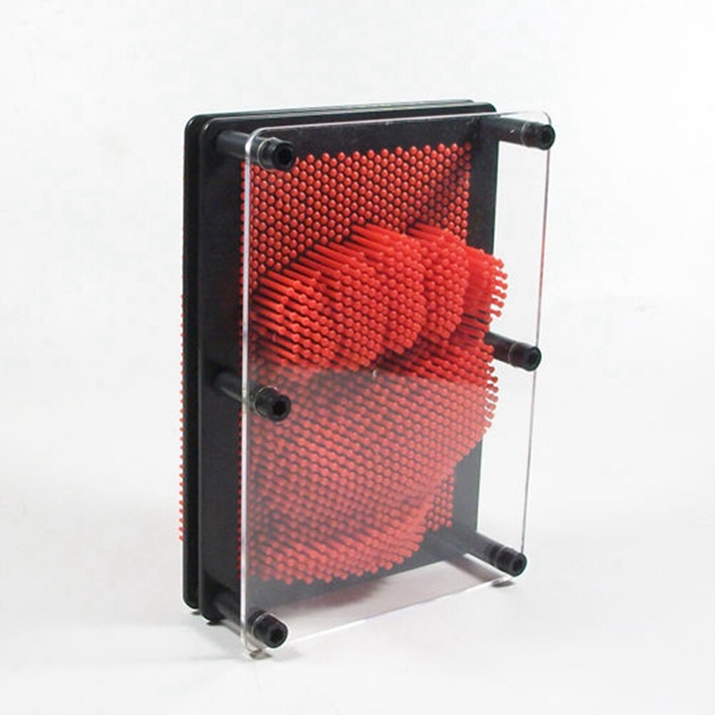 Homemaxs Classic 3-Dimensional Pin Art Board Metal Silver Toy Learning Gift for Sculptures- Large Size (Red)