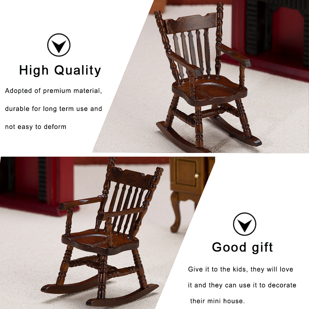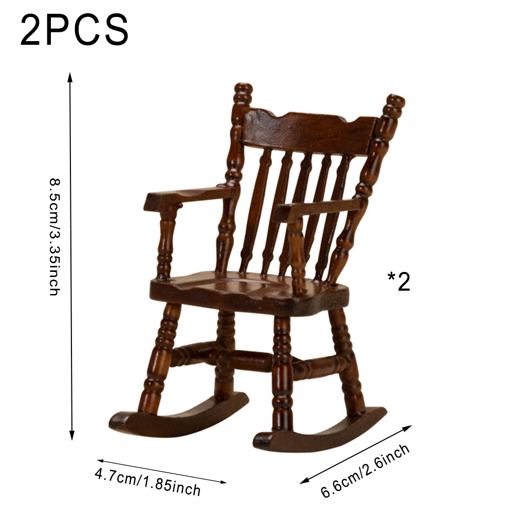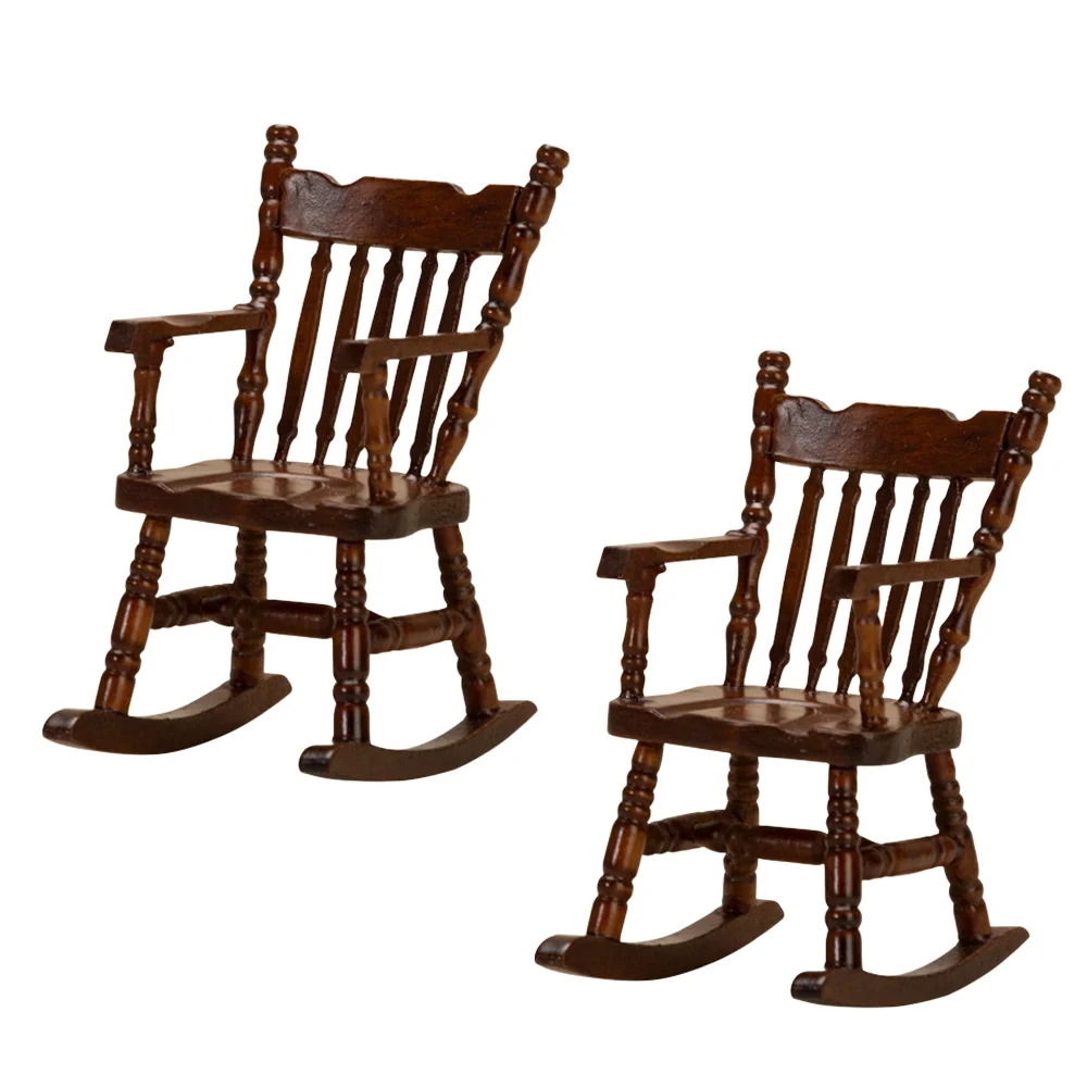 Sarzi 1: 12 Dollhouse Walnut Rocking Chairs , Mini Furniture Decoration Model Scene Decoration, 2 Pieces