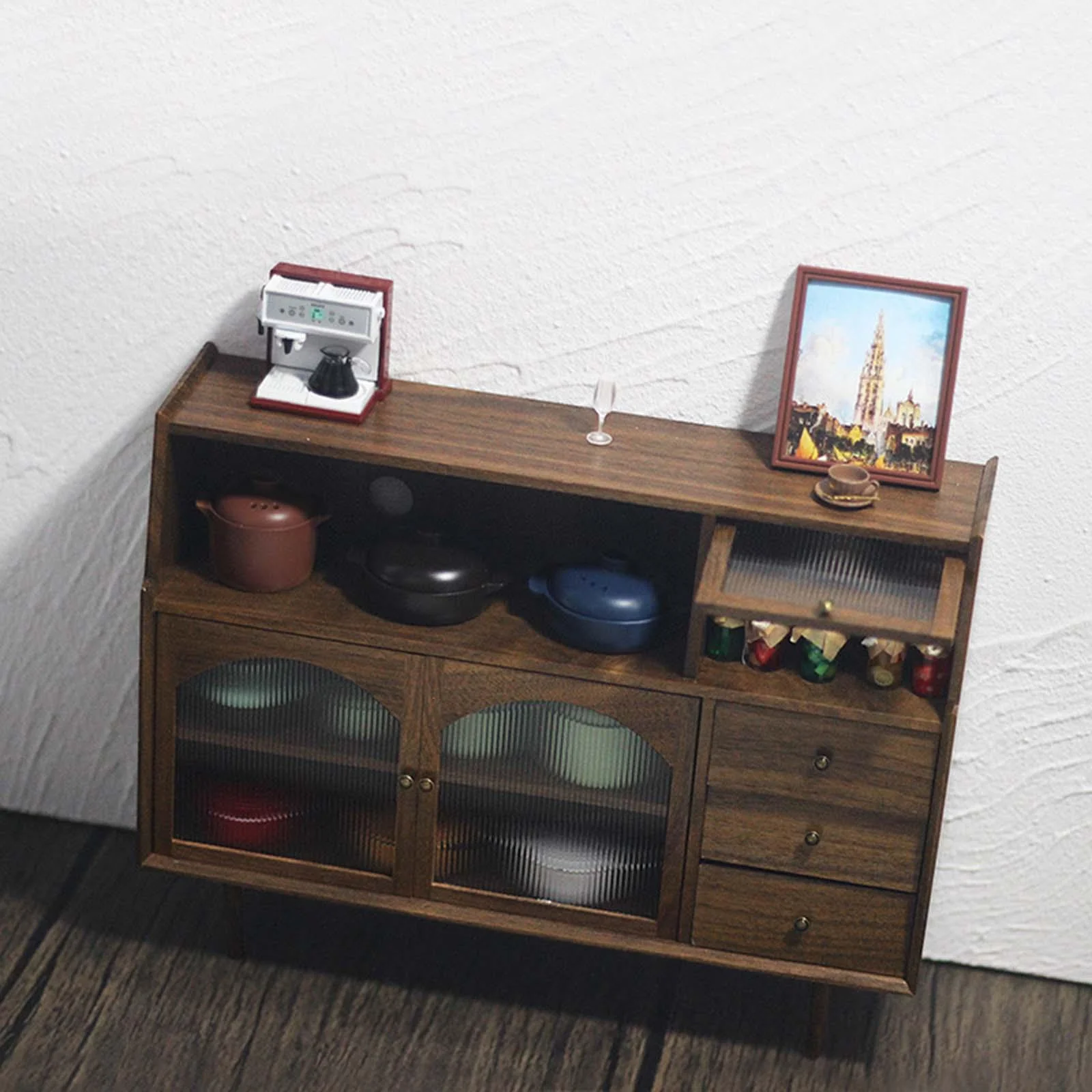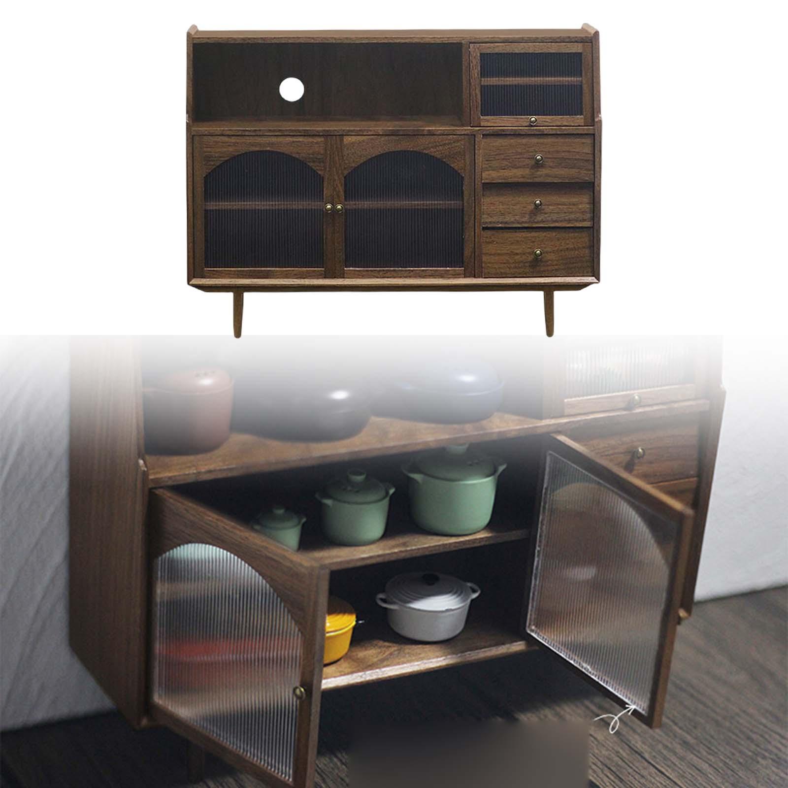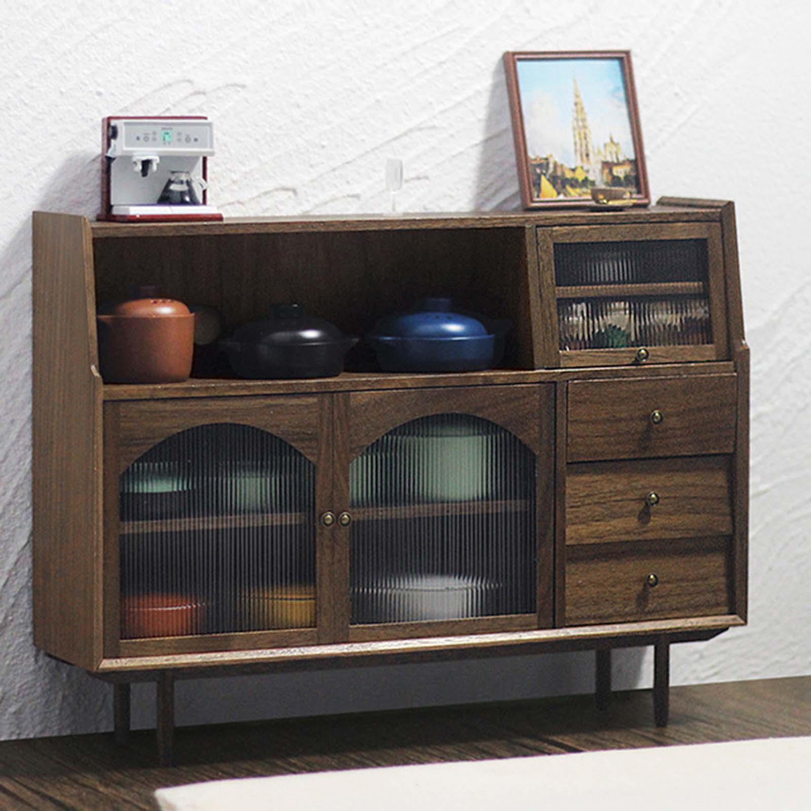 1/6 Dollhouse Miniature Sideboard Cabinet Miniature Dollhouse Decoration Accessories Cupboard for Bedroom Kitchen Decoration Walnut