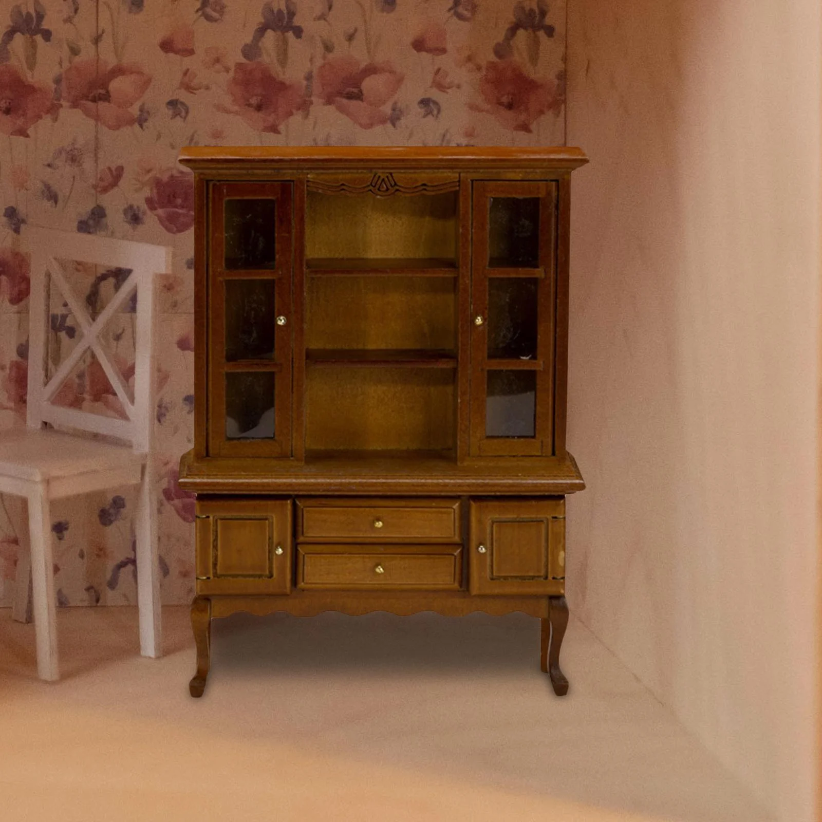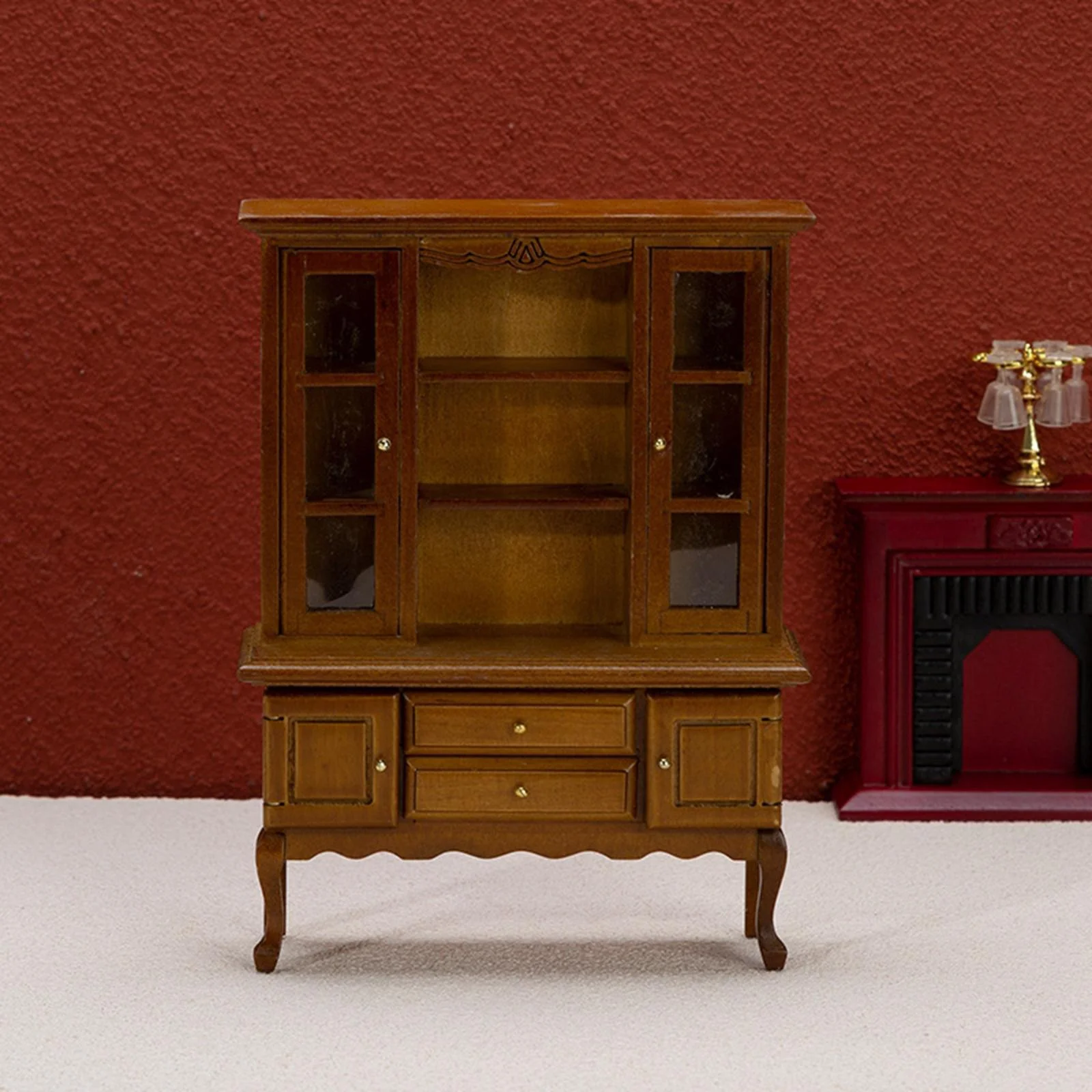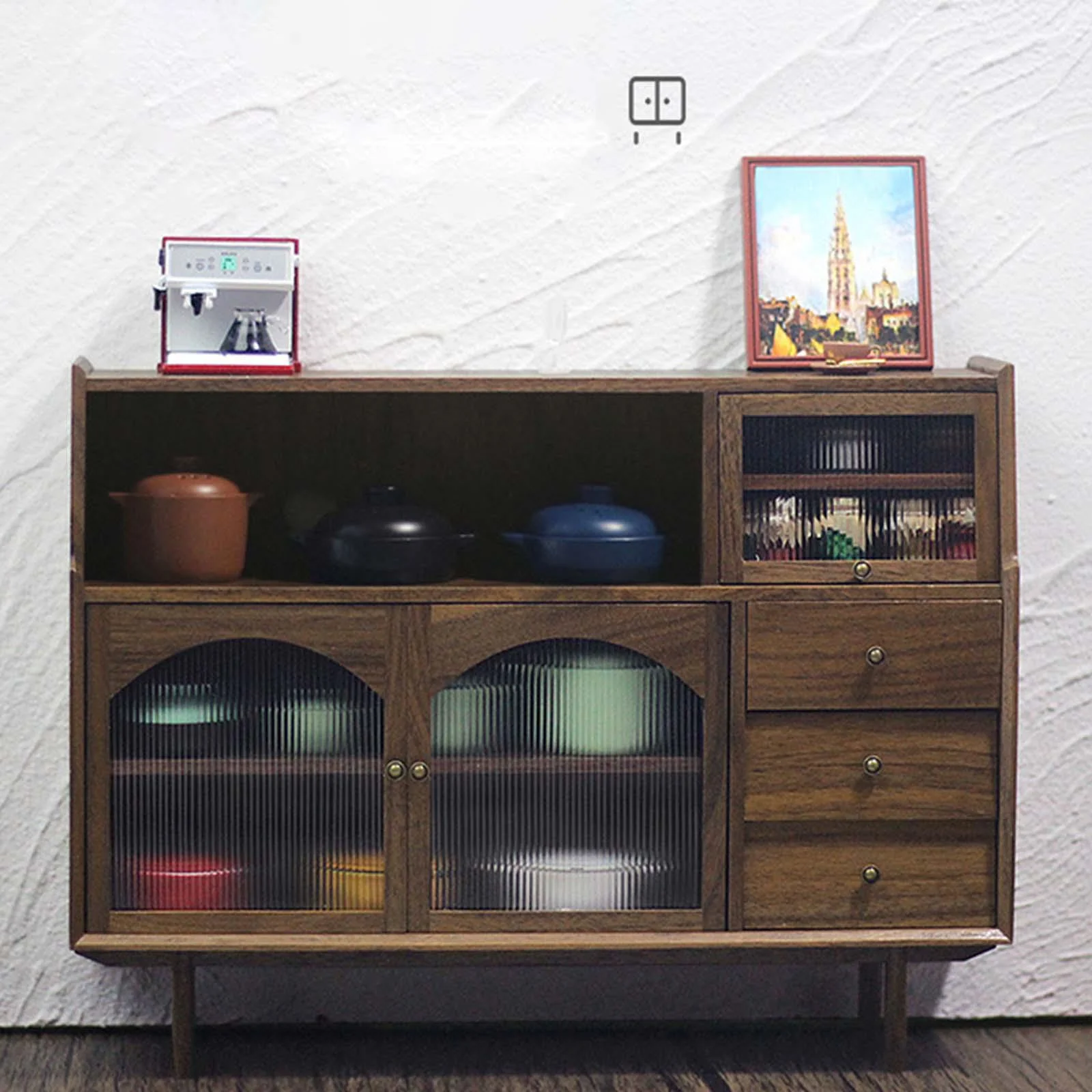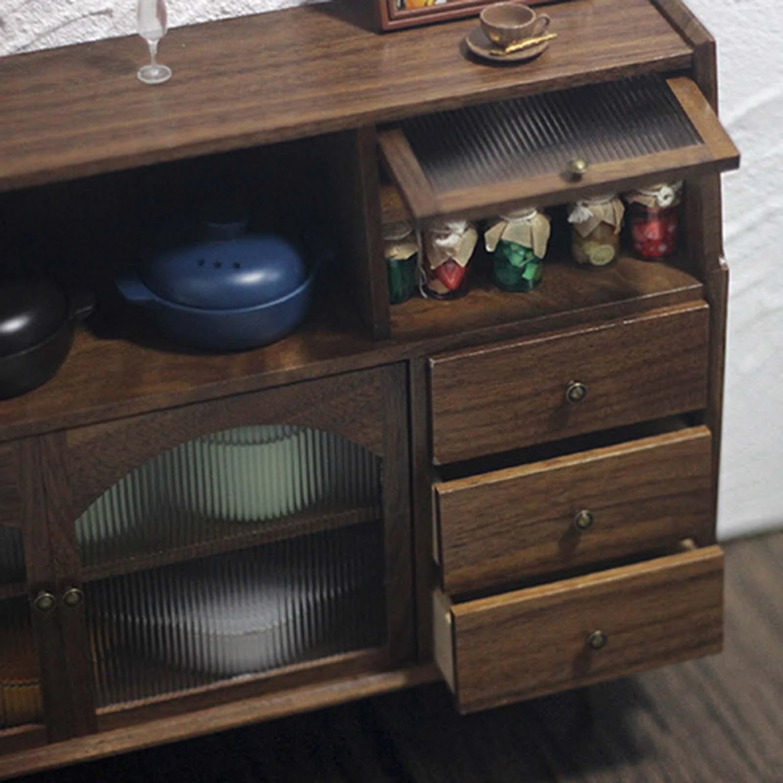 1/6 Dollhouse Miniature Sideboard Cabinet Miniature Dollhouse Decoration Accessories Cupboard for Bedroom Kitchen Decoration Walnut