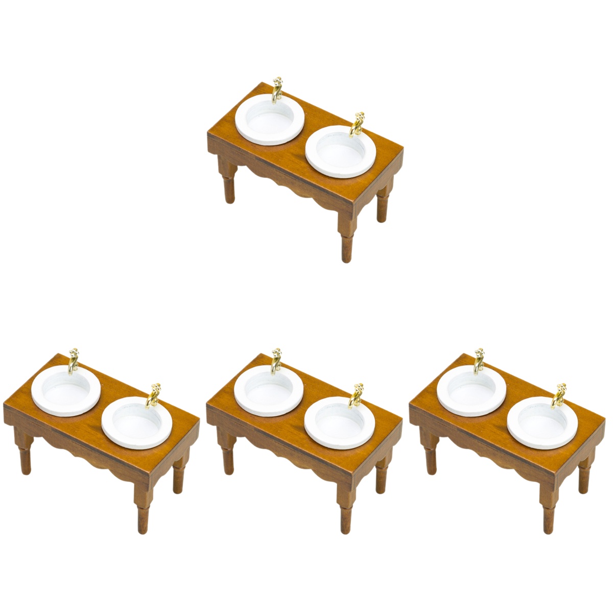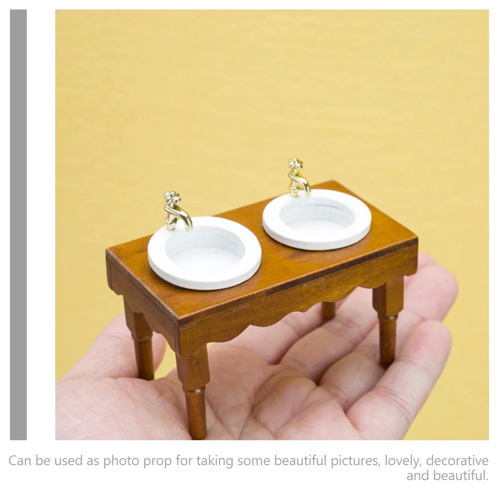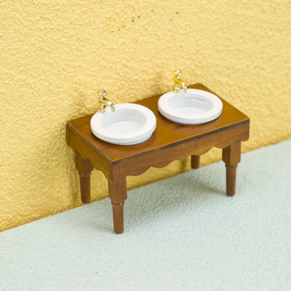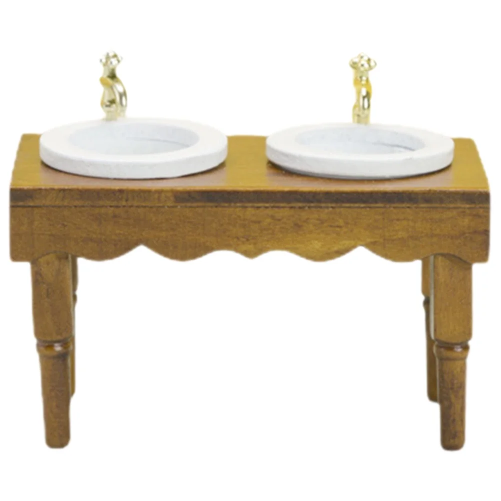 Miniature Sink Cabinet Toy House Accessories 4 Pieces 1:12 Dollhouse Furniture Bathroom Scene Double Basin Wash (walnut Color) Home Decor Ornament