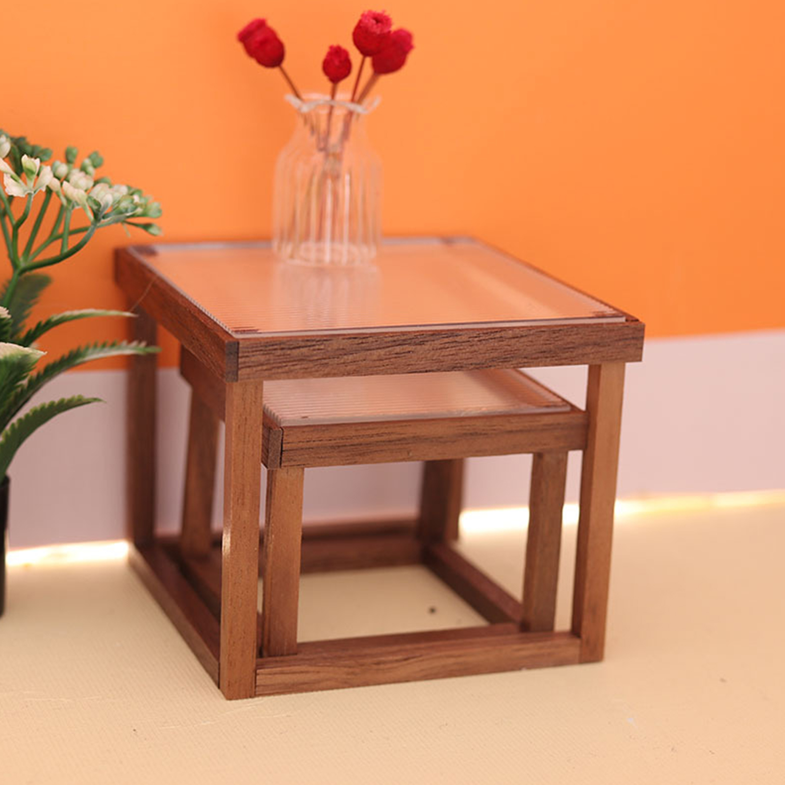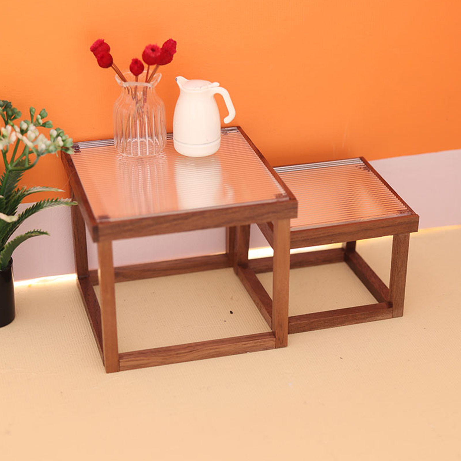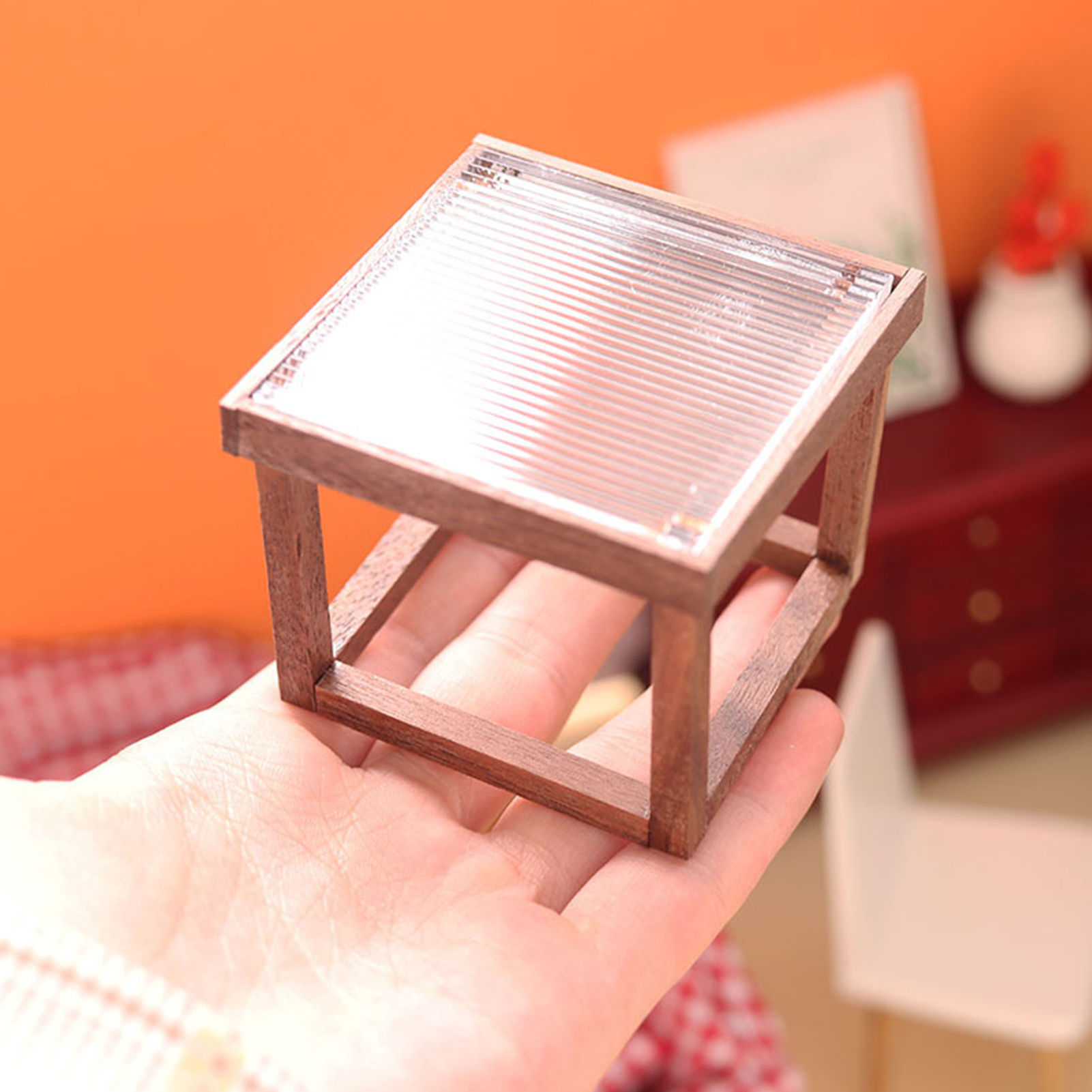 Acrylic Tabletop Dollhouse Furniture Table for Dining Room , Walnut, 25cmx12.6cmx11.7cm