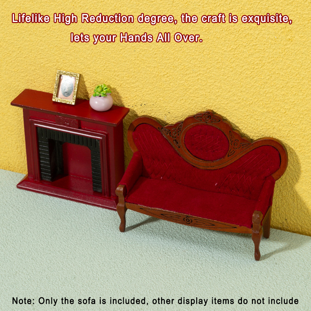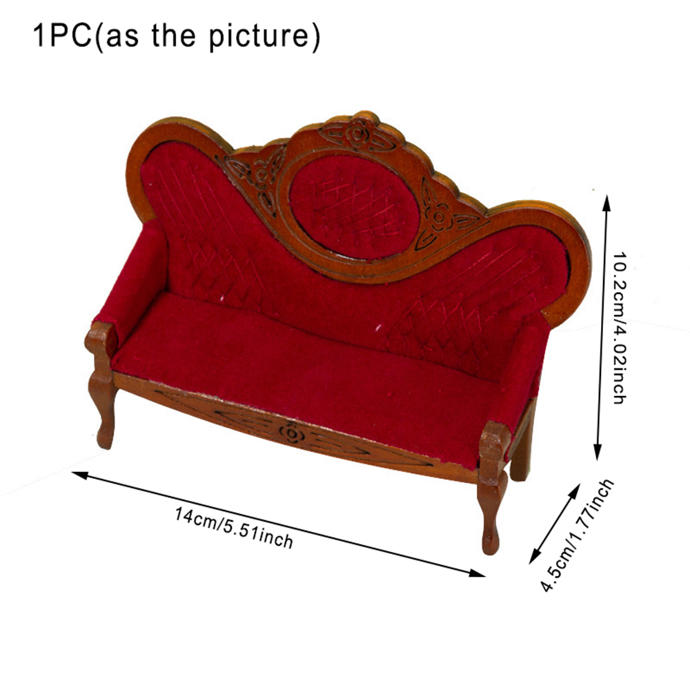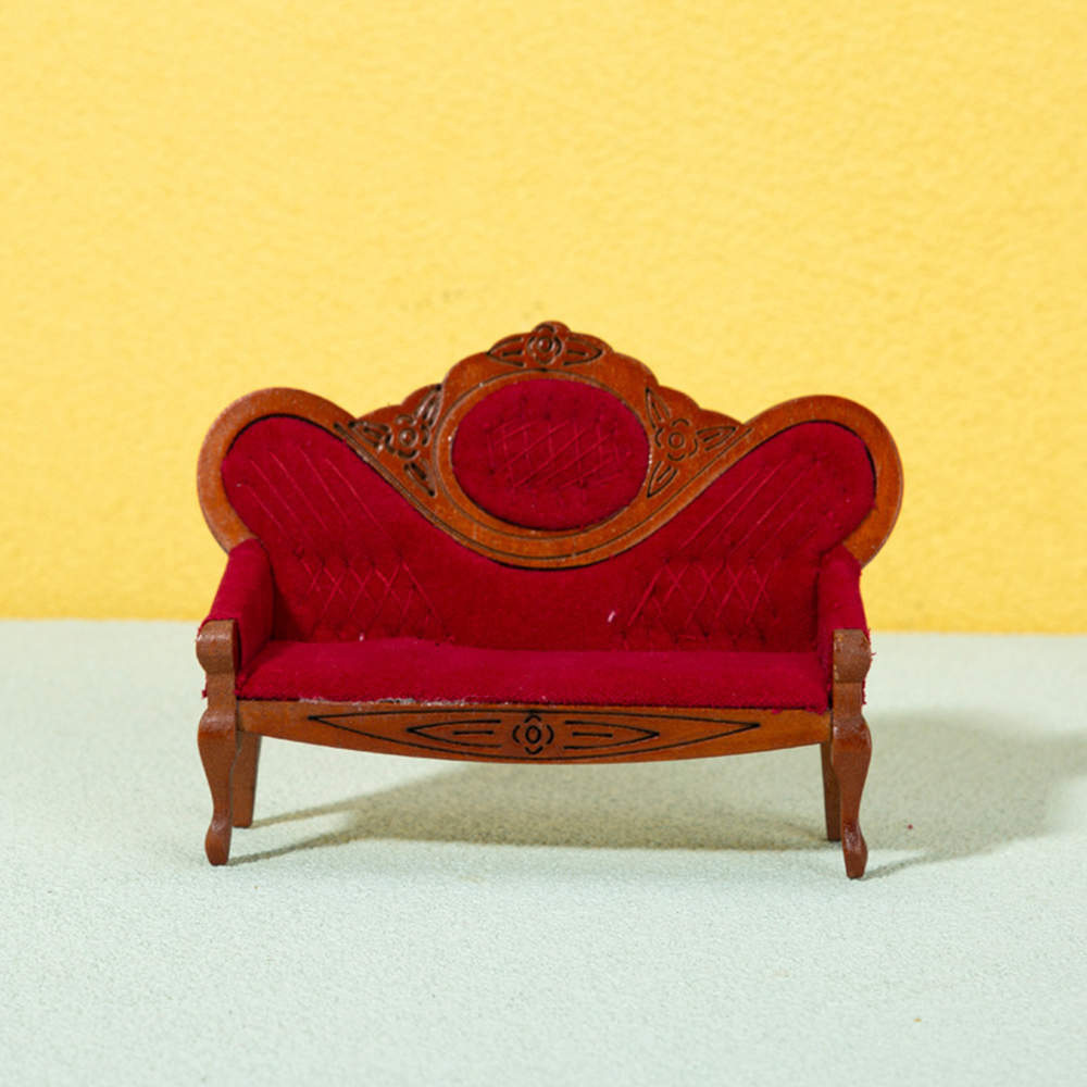 Sarzi 1: 12 Dollhouse Walnut Wood Sofa, Dollhouse Mini Furniture Decoration Model, Dollhouse Living Room, Bedroom, Micro Scene Decoration, Red Brown