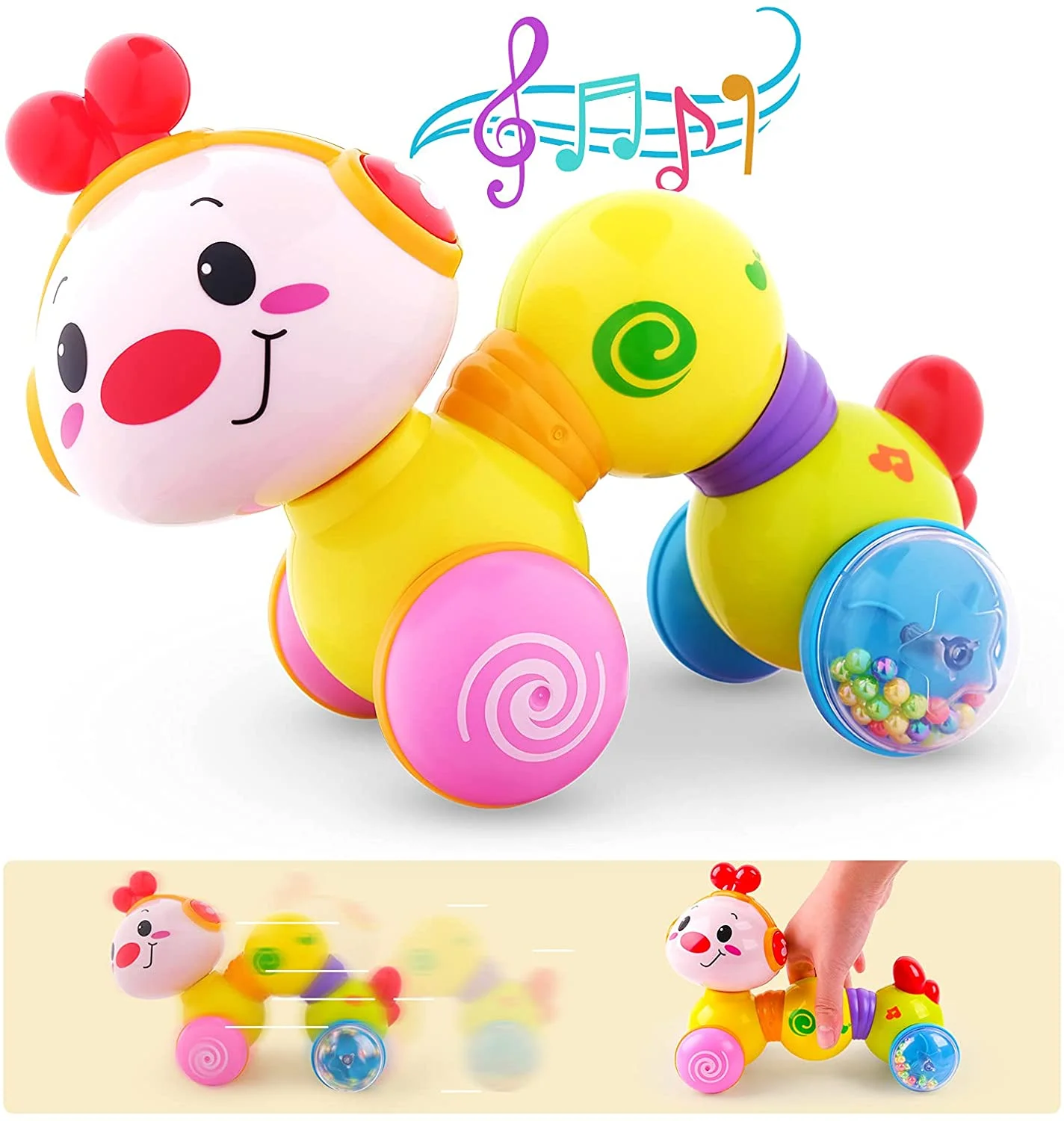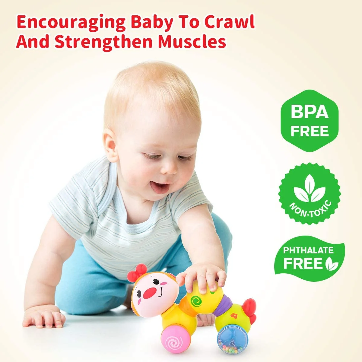 Zendure Baby Toys 6 to 12 Months, Infant Musical Crawling Toy, Press and Go Interactive Inchworm Toy with Light Up, Caterpillar Tummy Time Educational Toddler Toys 6 7 8 9 12 18 Months Boy Girl Gift