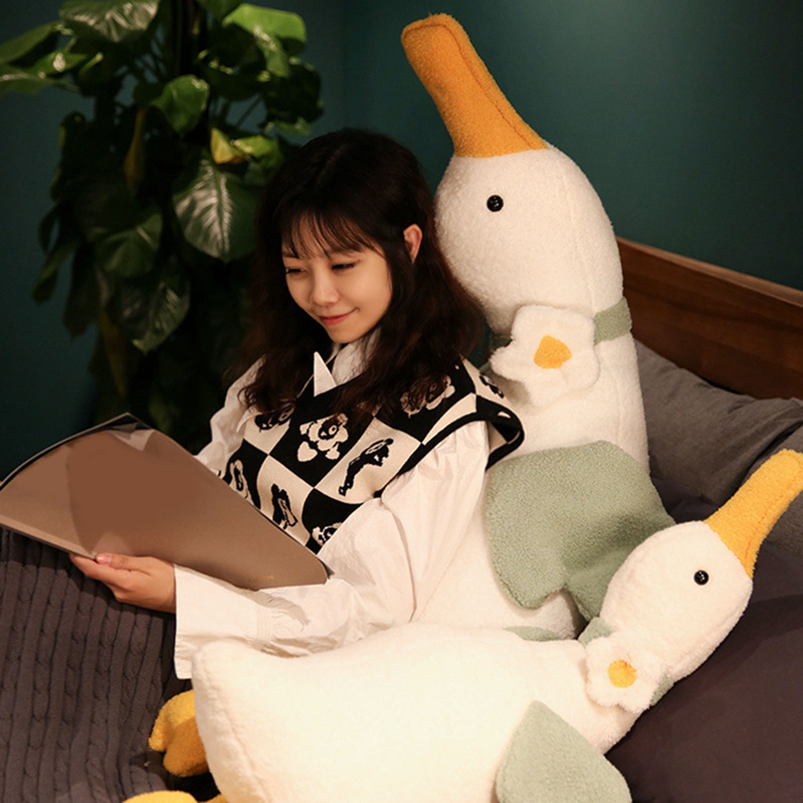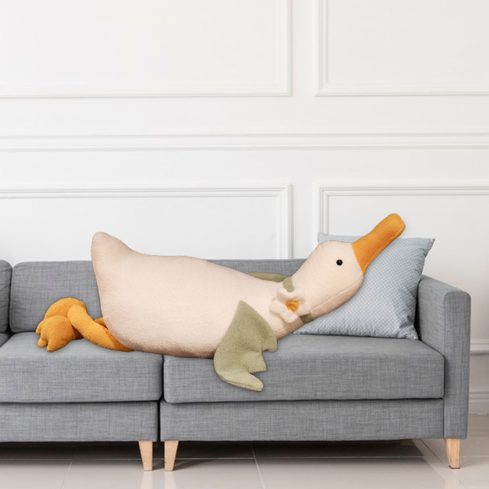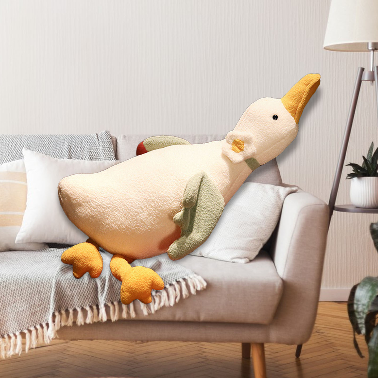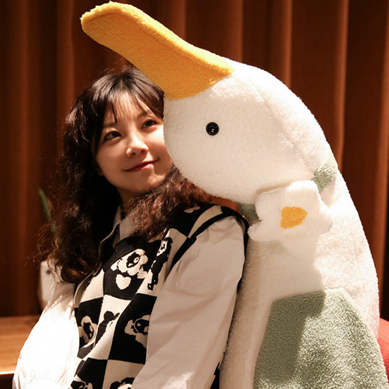 Skindy Soft Stuffed Duck Pillow Cute White Plushie Back Cushion for Sofa, PP Cotton Cartoon Animal Doll Toy, Home Decoration Ornament
