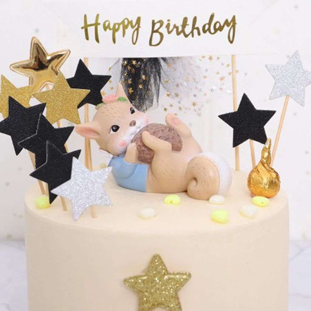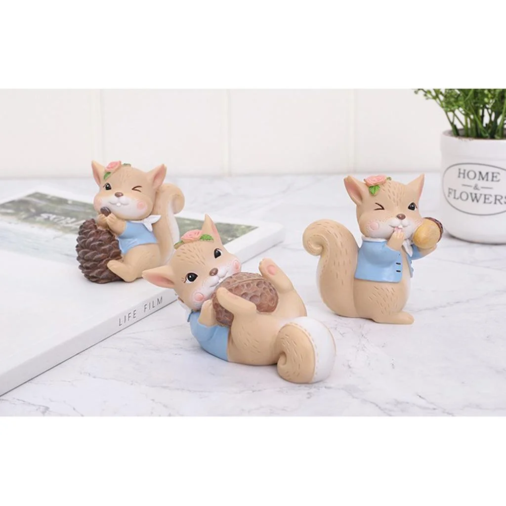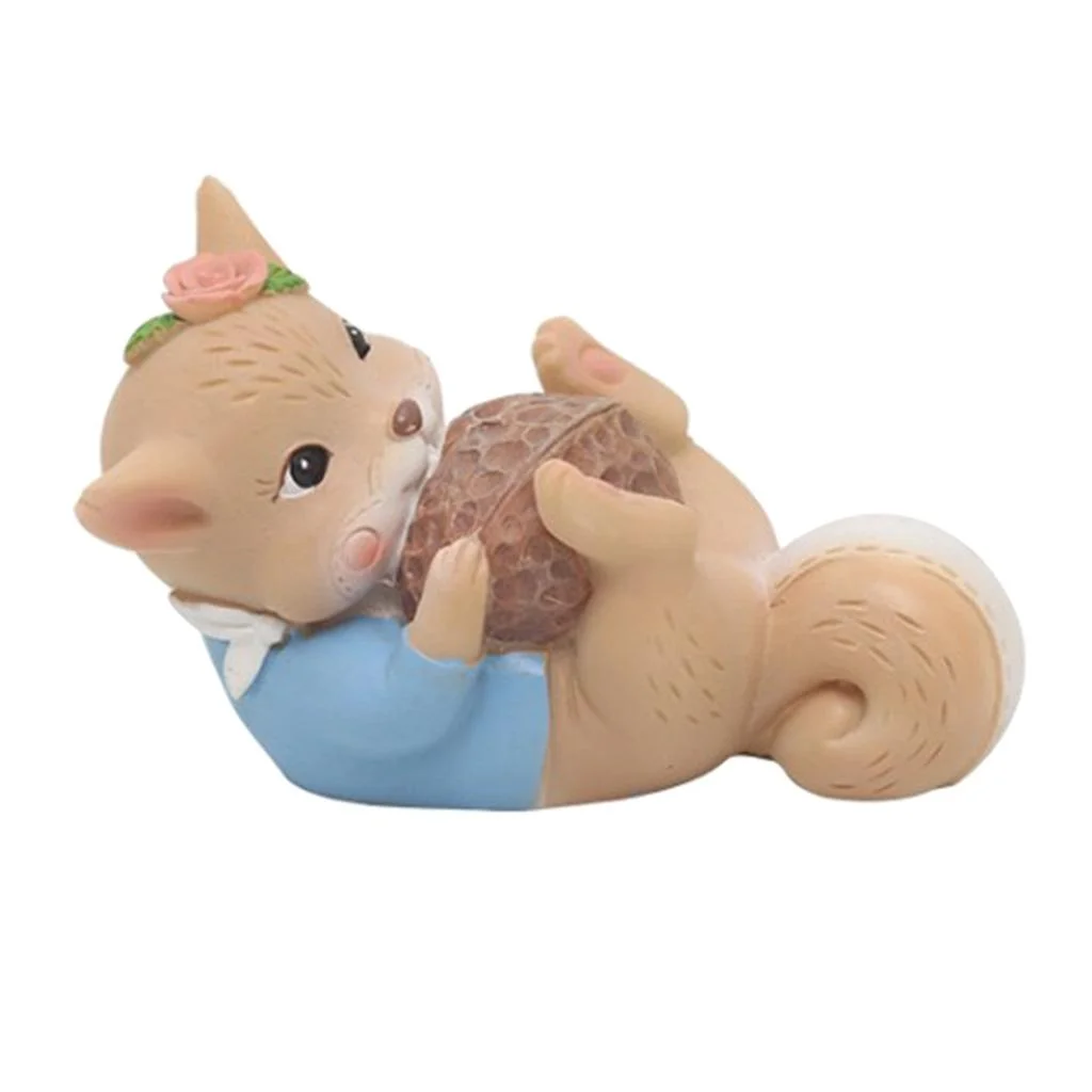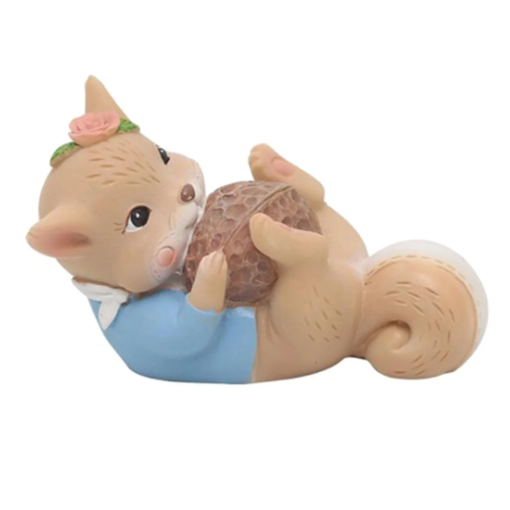Mini Resin Squirrel Figures Hand-painted Ornament for Dollhouse Collection Cake Toppers Walnut