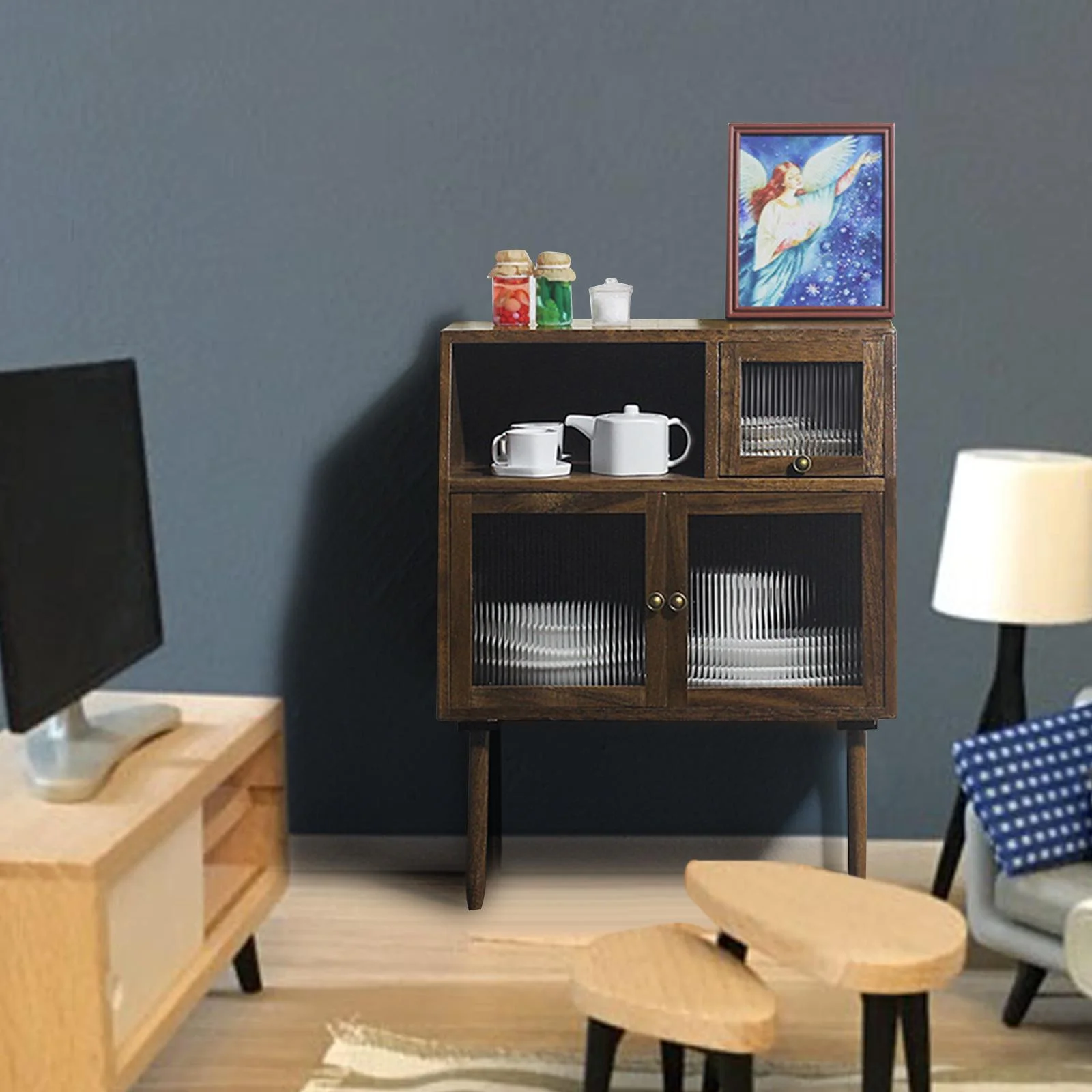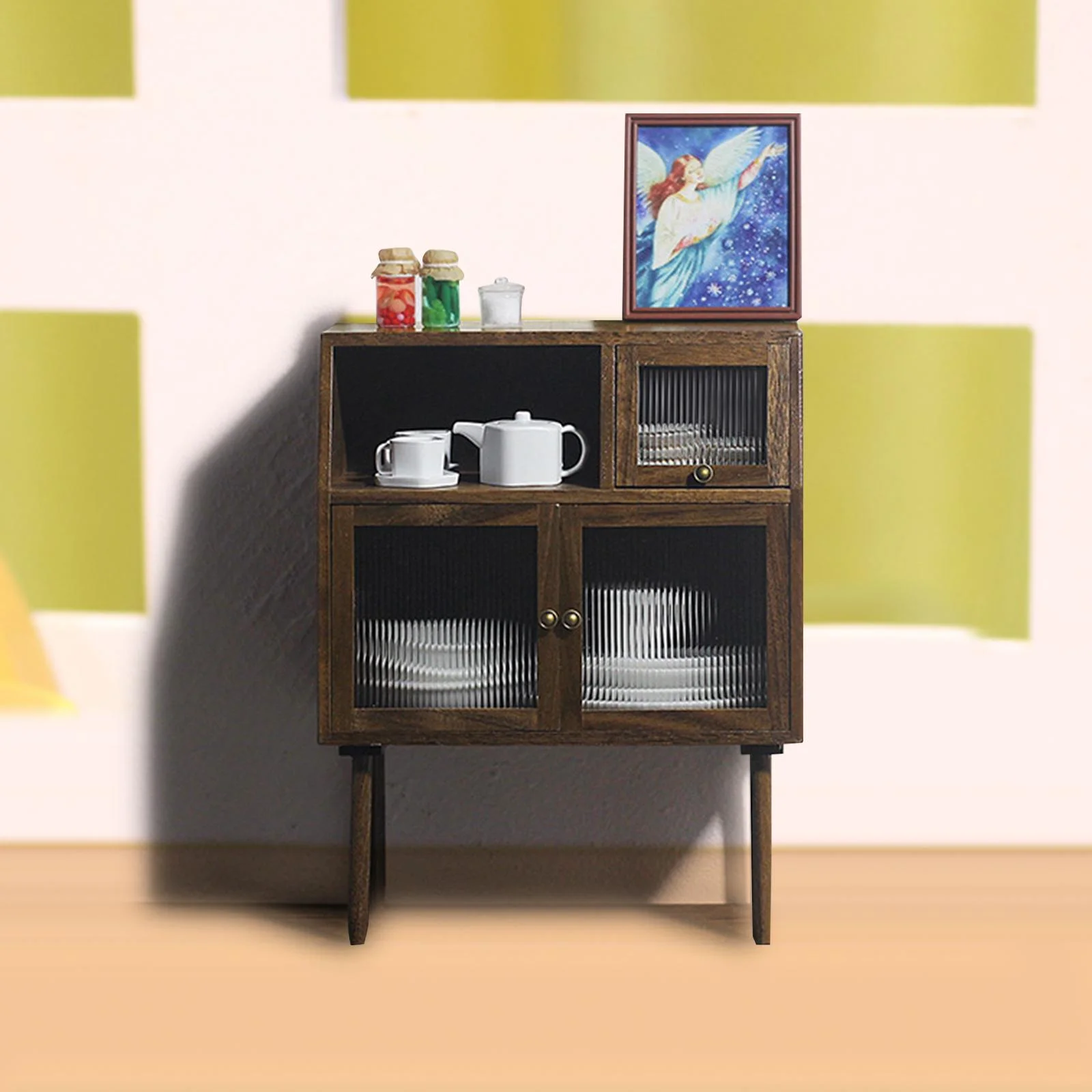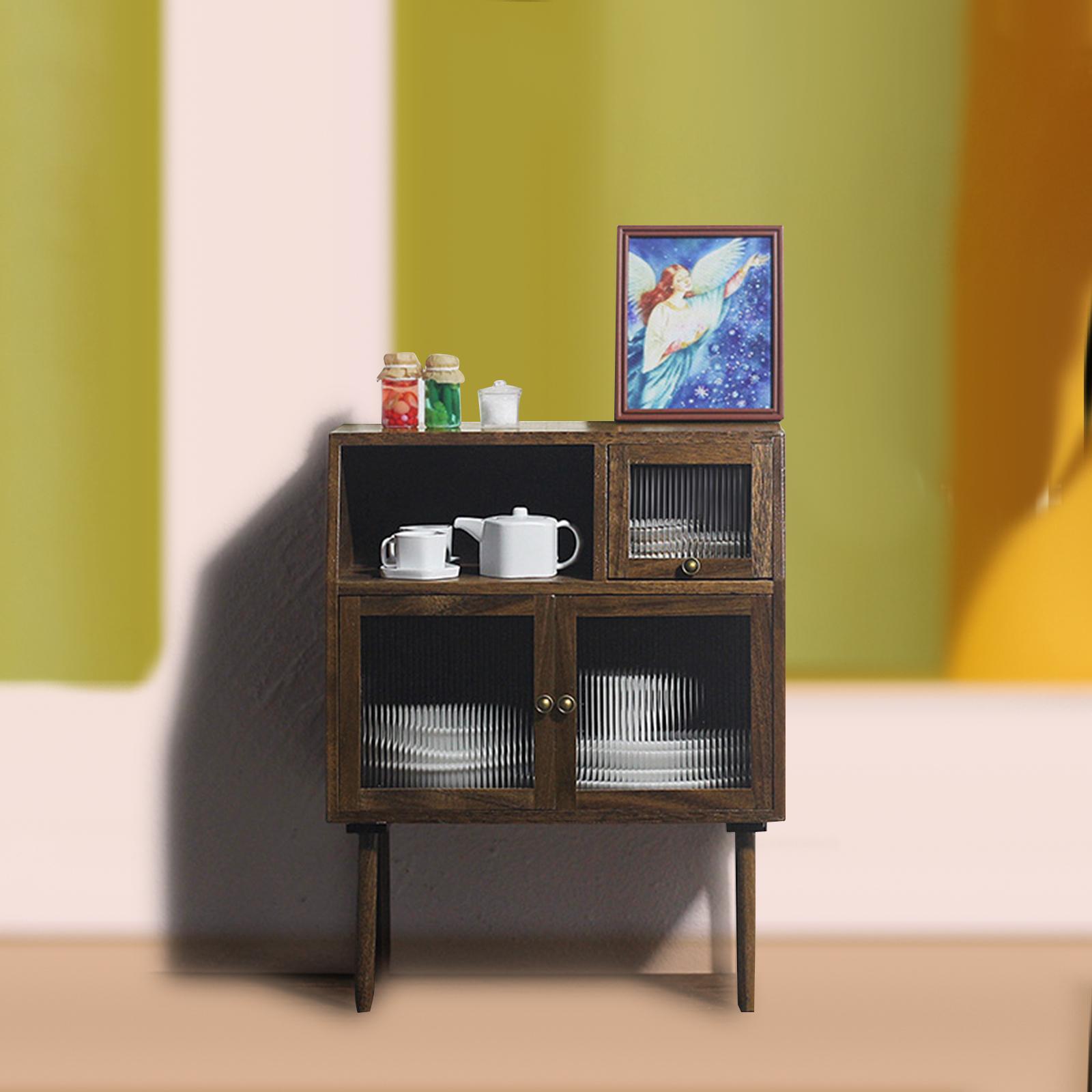 Walnut Cabinets Life Scene Layout Decoration Micro Landscape Props Multipurpose Closet Locker Cupboard for 1/6 1/12 Scale Dollhouse Doll