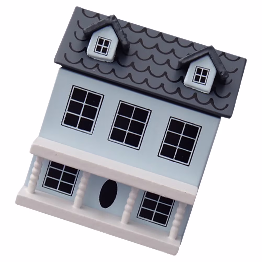 2pcs Small House Model Miniature House Ornament Wood Tiny House Miniature Furniture