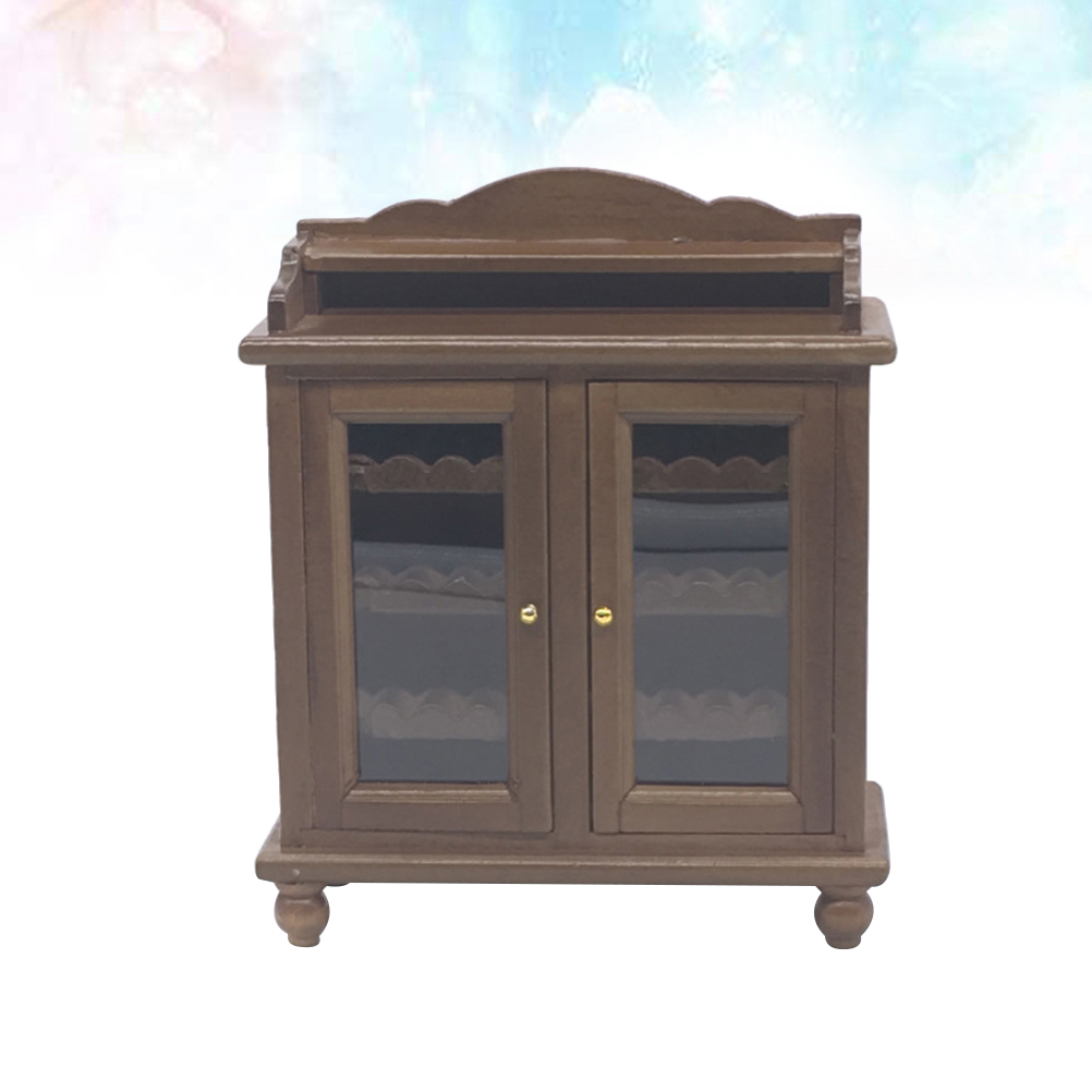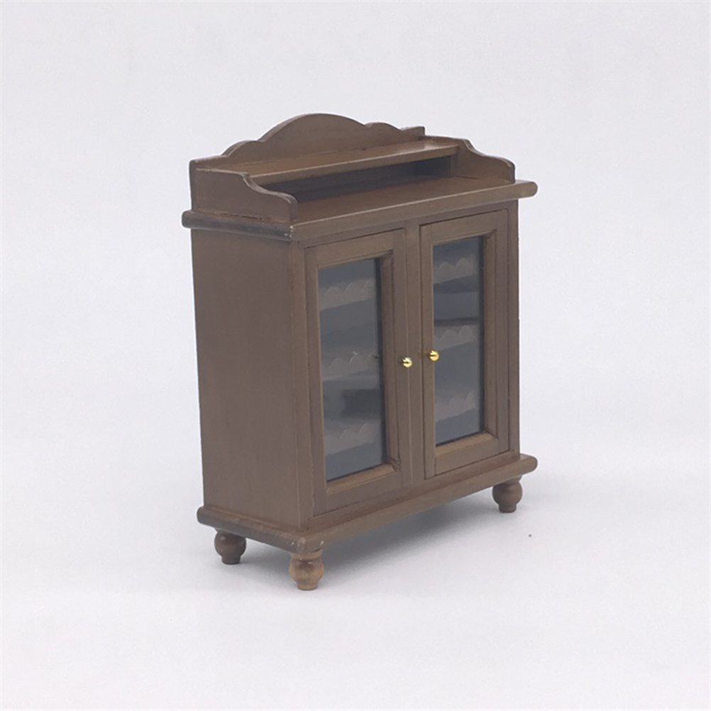 mini furniture Mini House Cabinet Ornament Mini House Furniture Adornment Mini Wooden Wine Cabinet Model (Walnut Color)