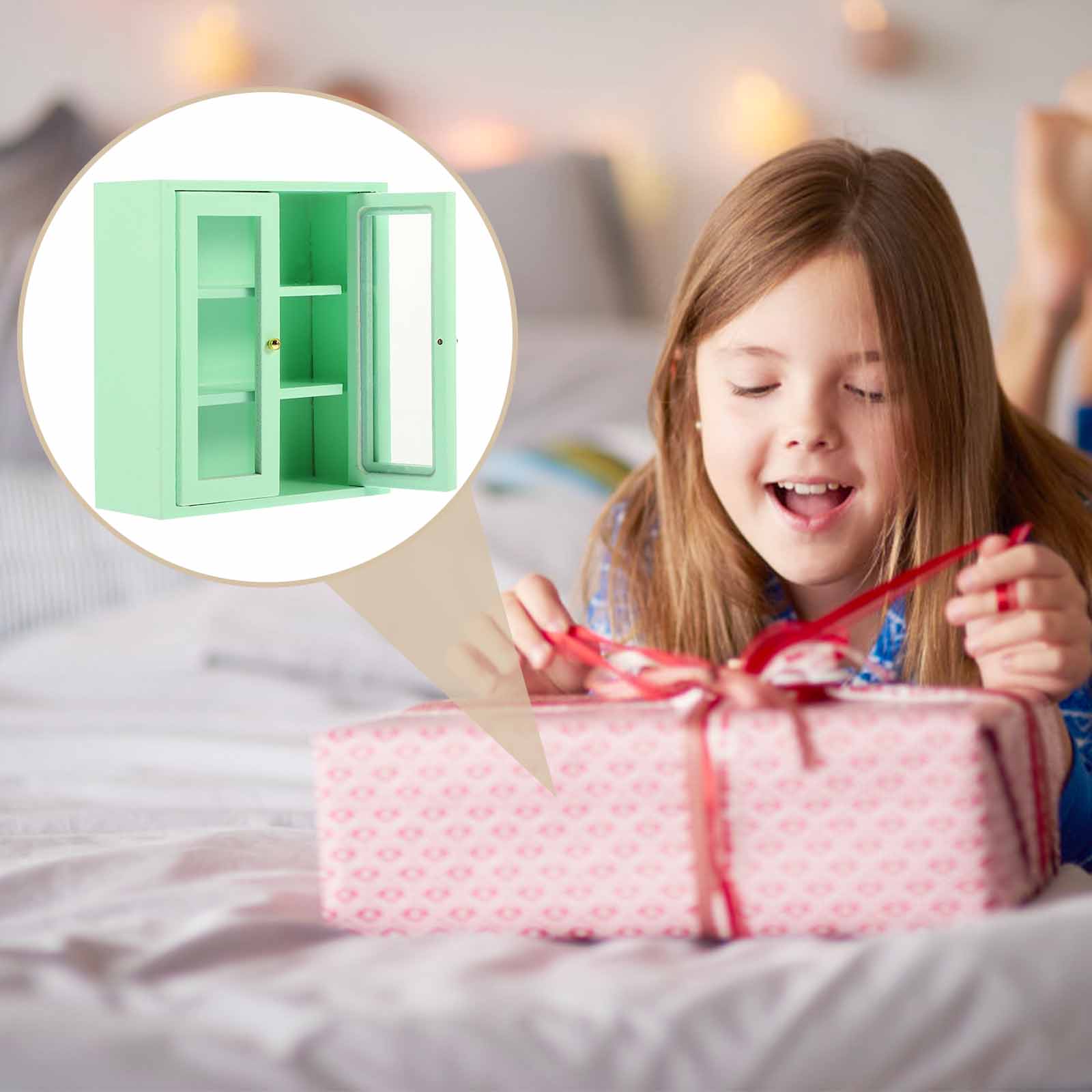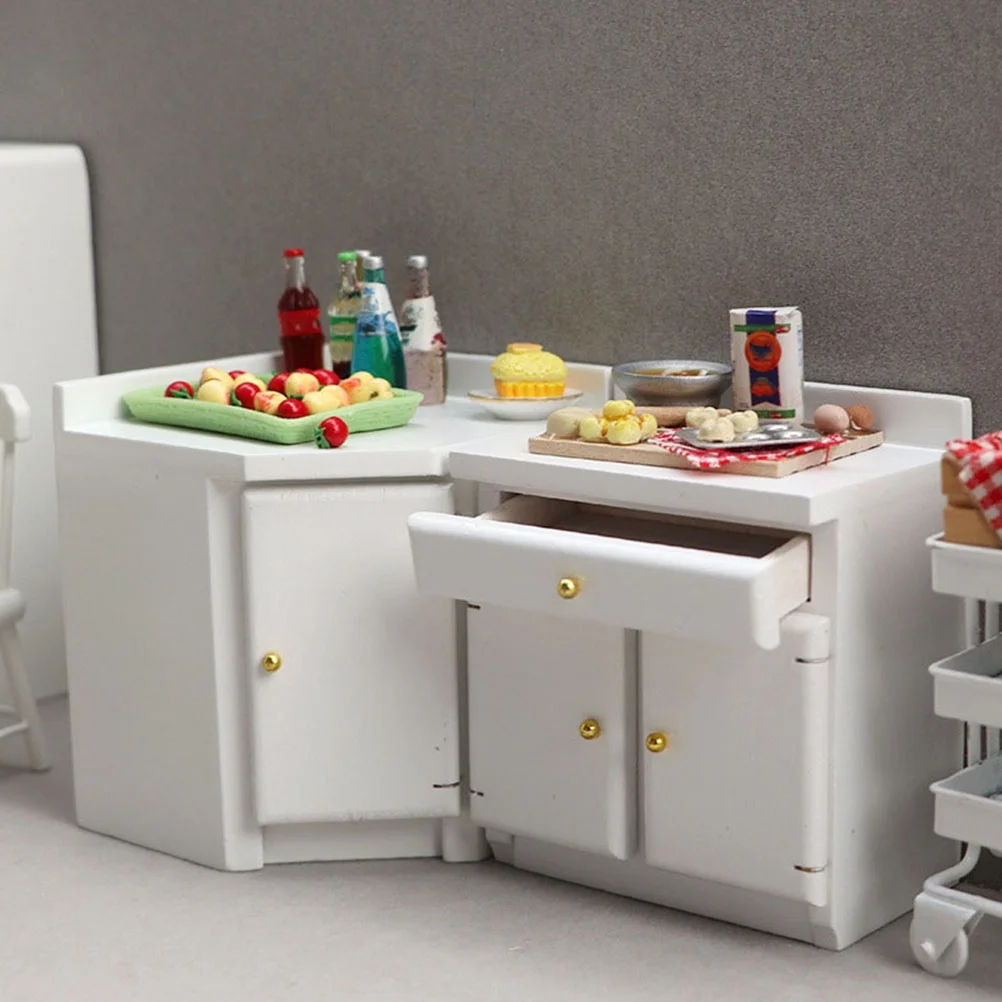 NUOLUX Wooden Miniature Cabinet Model Tiny House Ornament Mini House Decoration