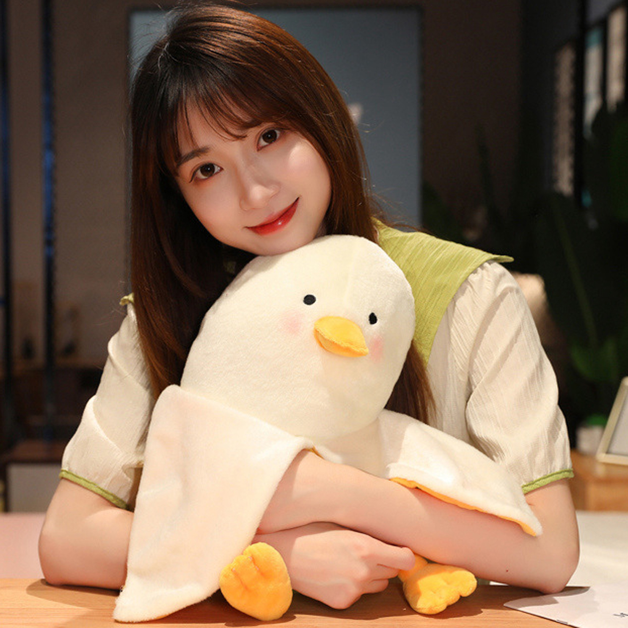 Adorable Plush Duck Doll Sleeping Cuddle Doll Cartoon Hug Toy Soft Stuffed Animal for Theme Party Holiday Bedroom Sofa