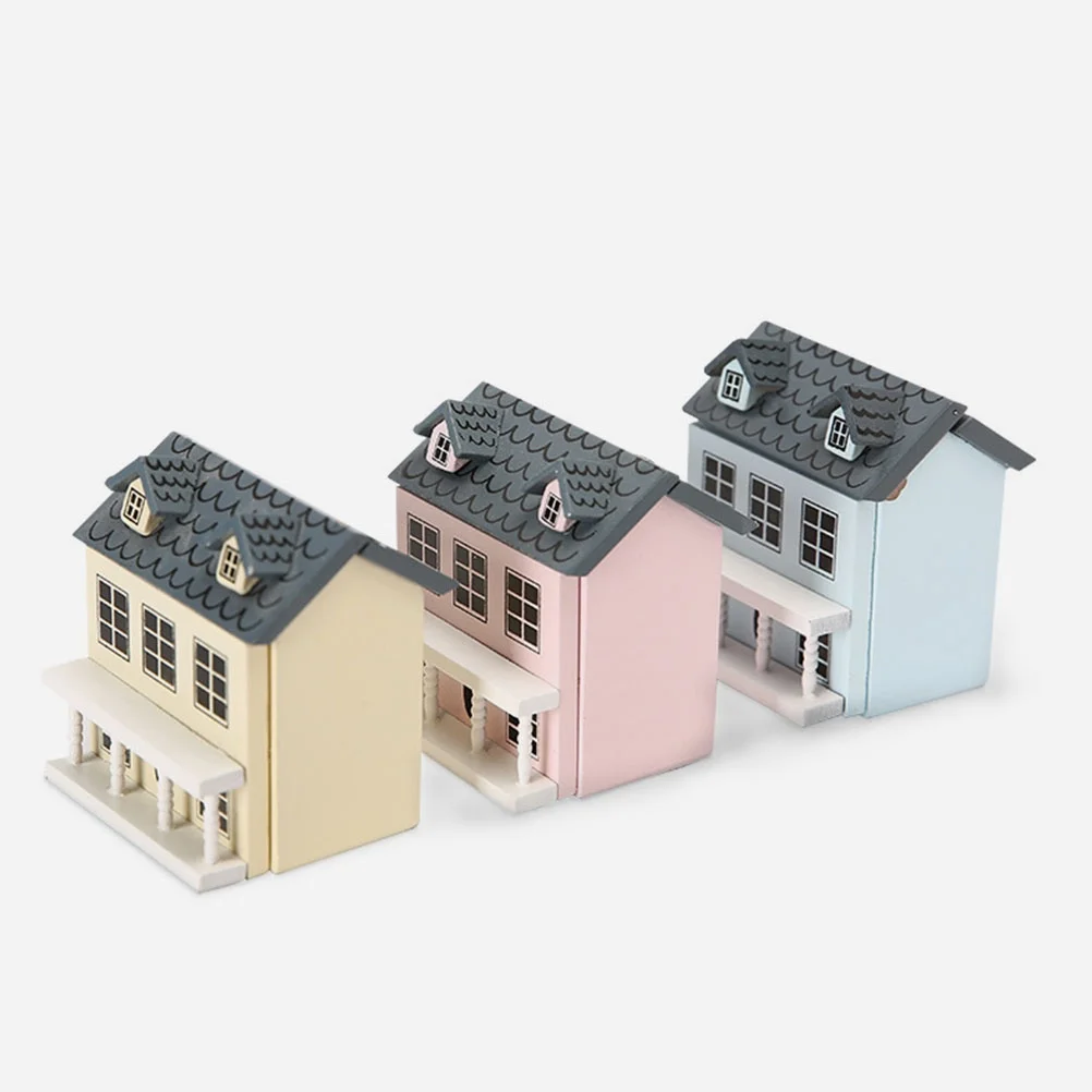 Set of 3 Villa Small House Miniature Furniture Tiny Decor Wood Doll Houses Gingerbread Kits for Kids Child