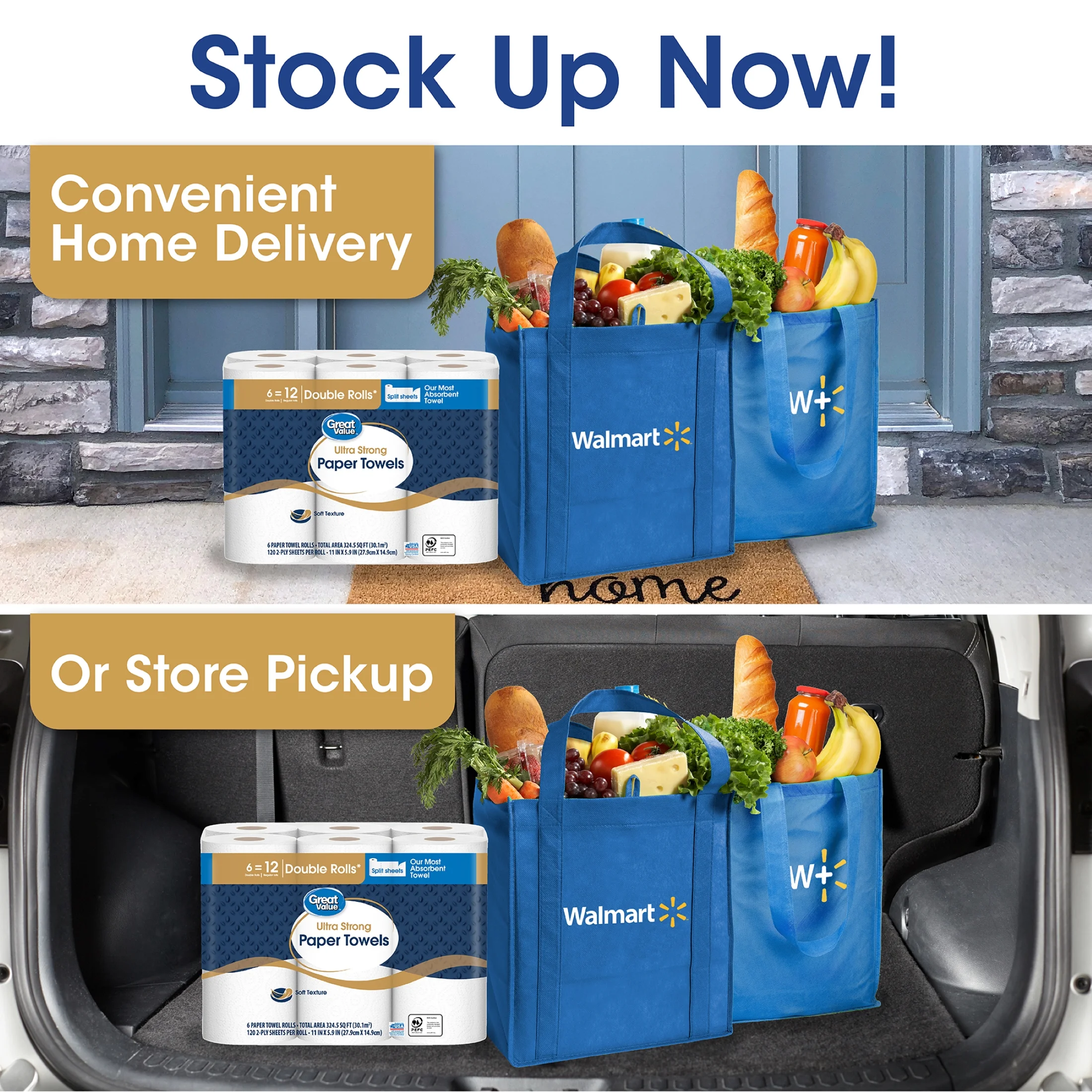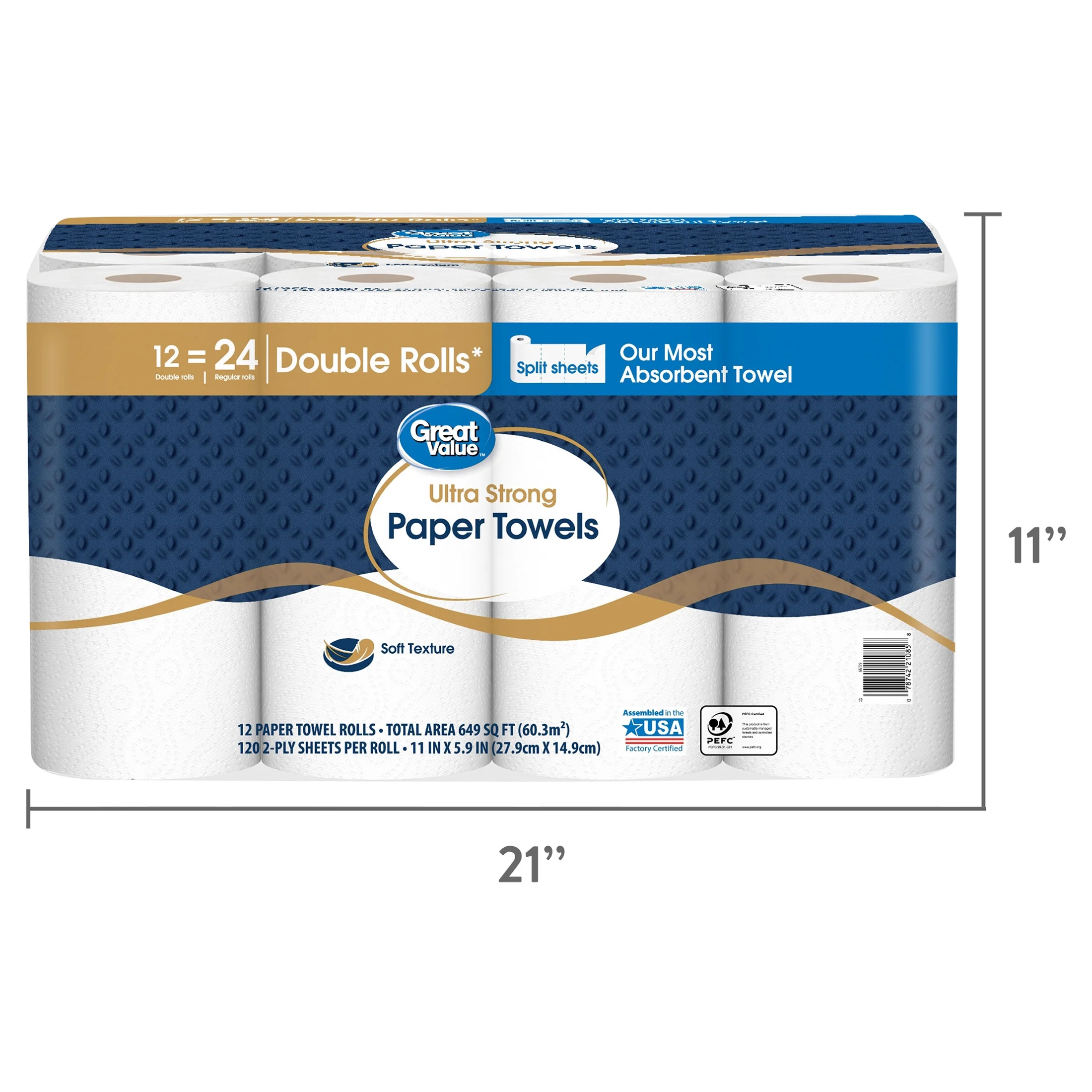 (4 pack) Great Value Ultra Strong Paper Towels, Split Sheets, 12 Double Rolls