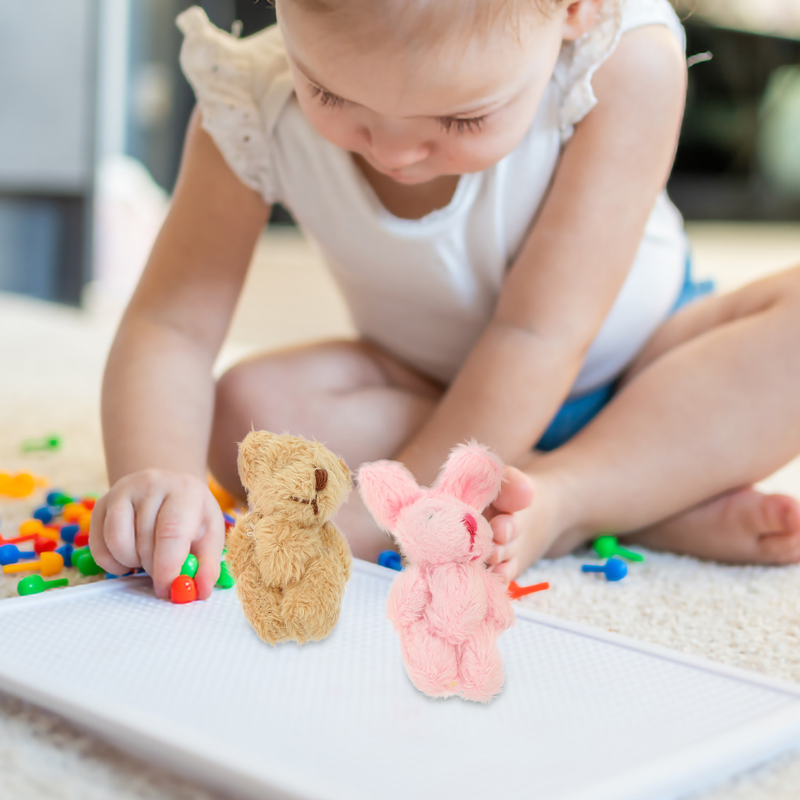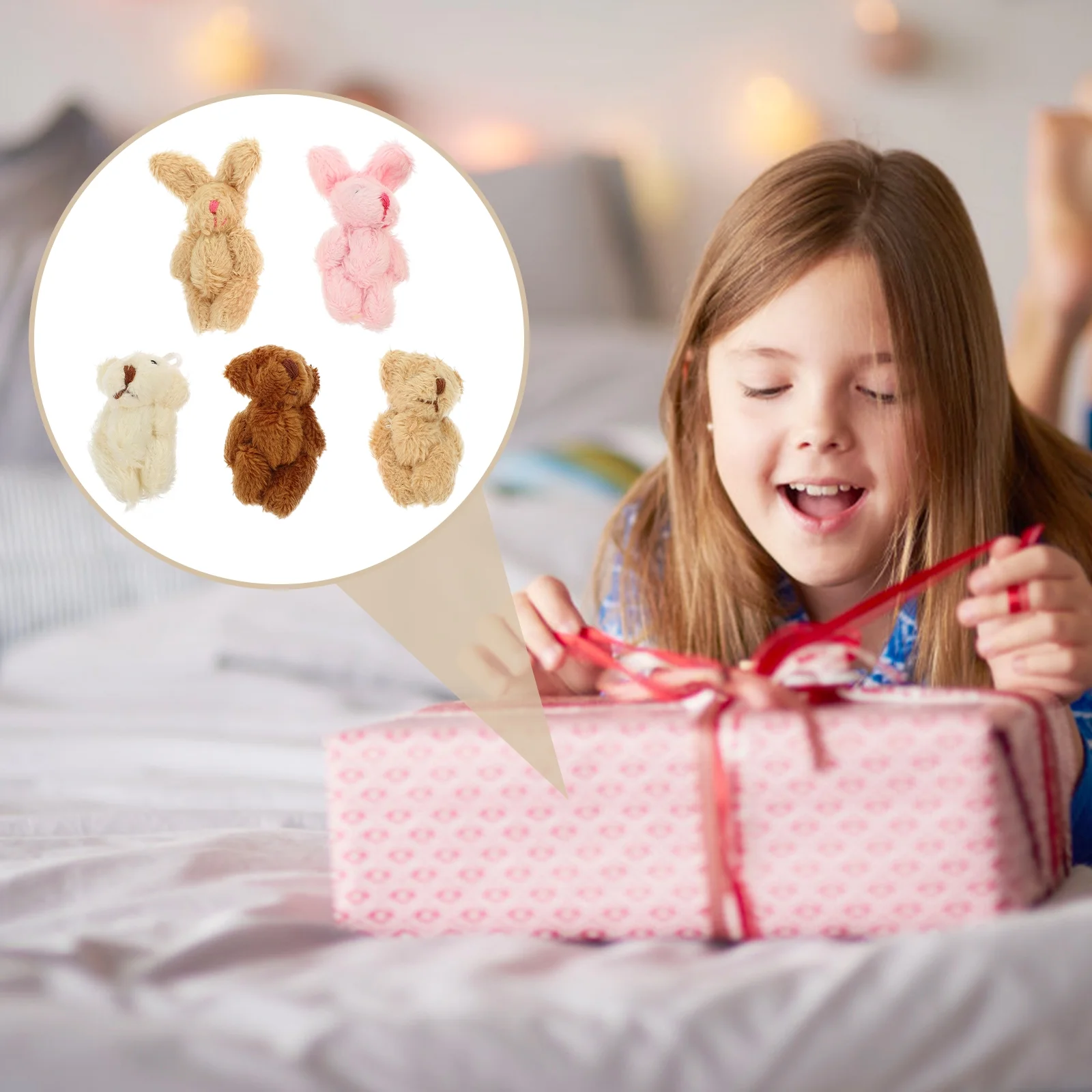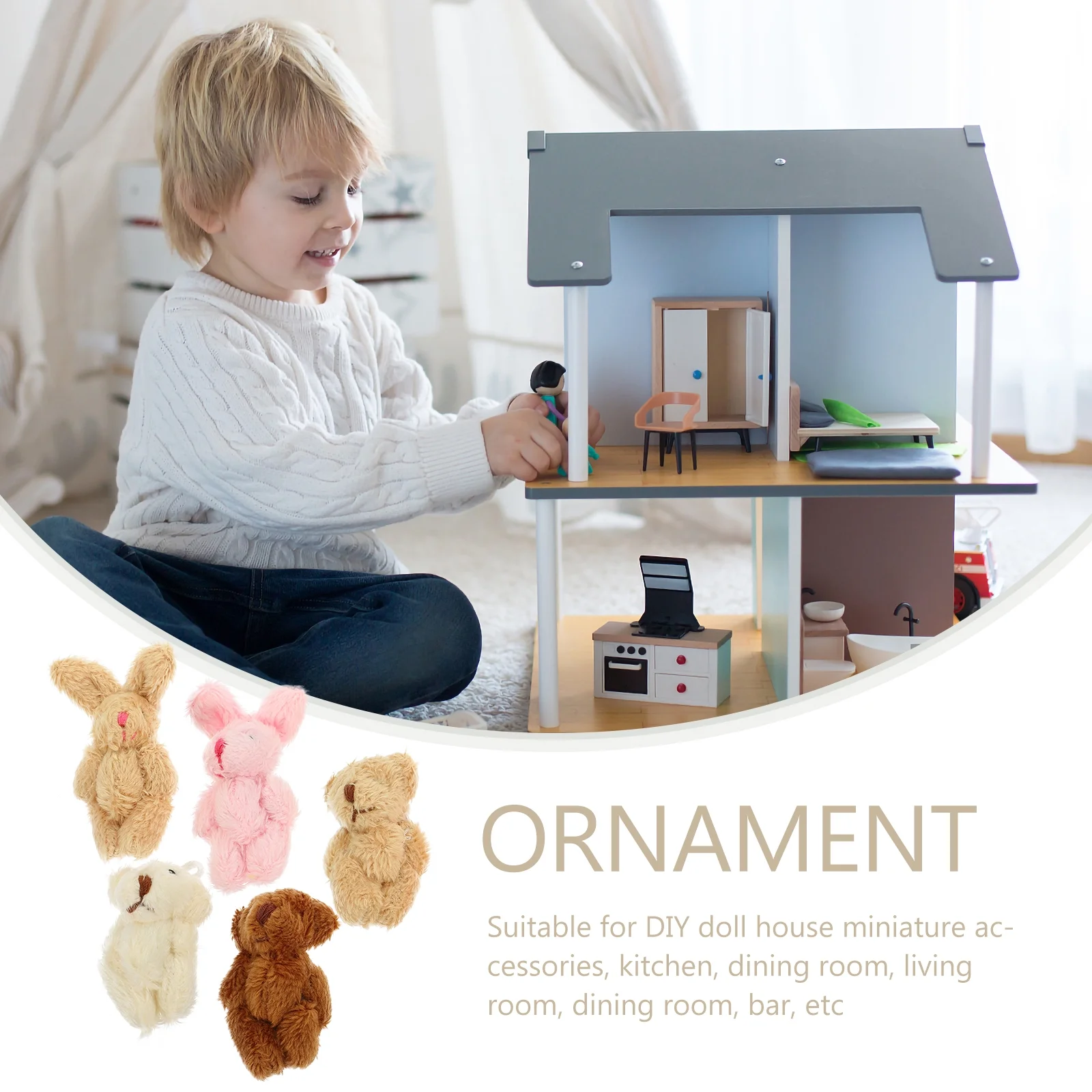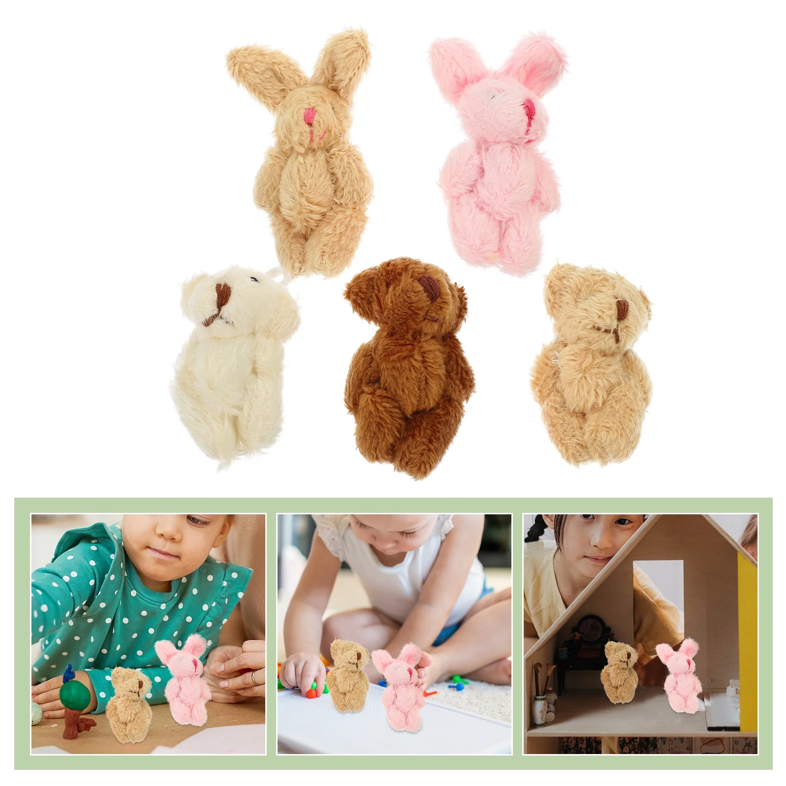 JIMING 5pcs Doll House Plush Doll Miniature Plush Doll Figurines Mini Bear Rabbit Dolls