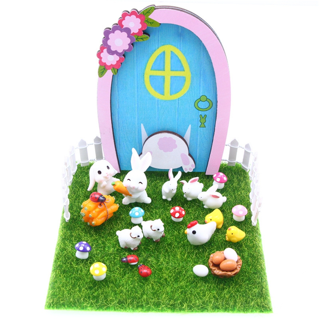 Dollhouse Miniature Accessories Spring Easter Rabbit Garden Chick Door