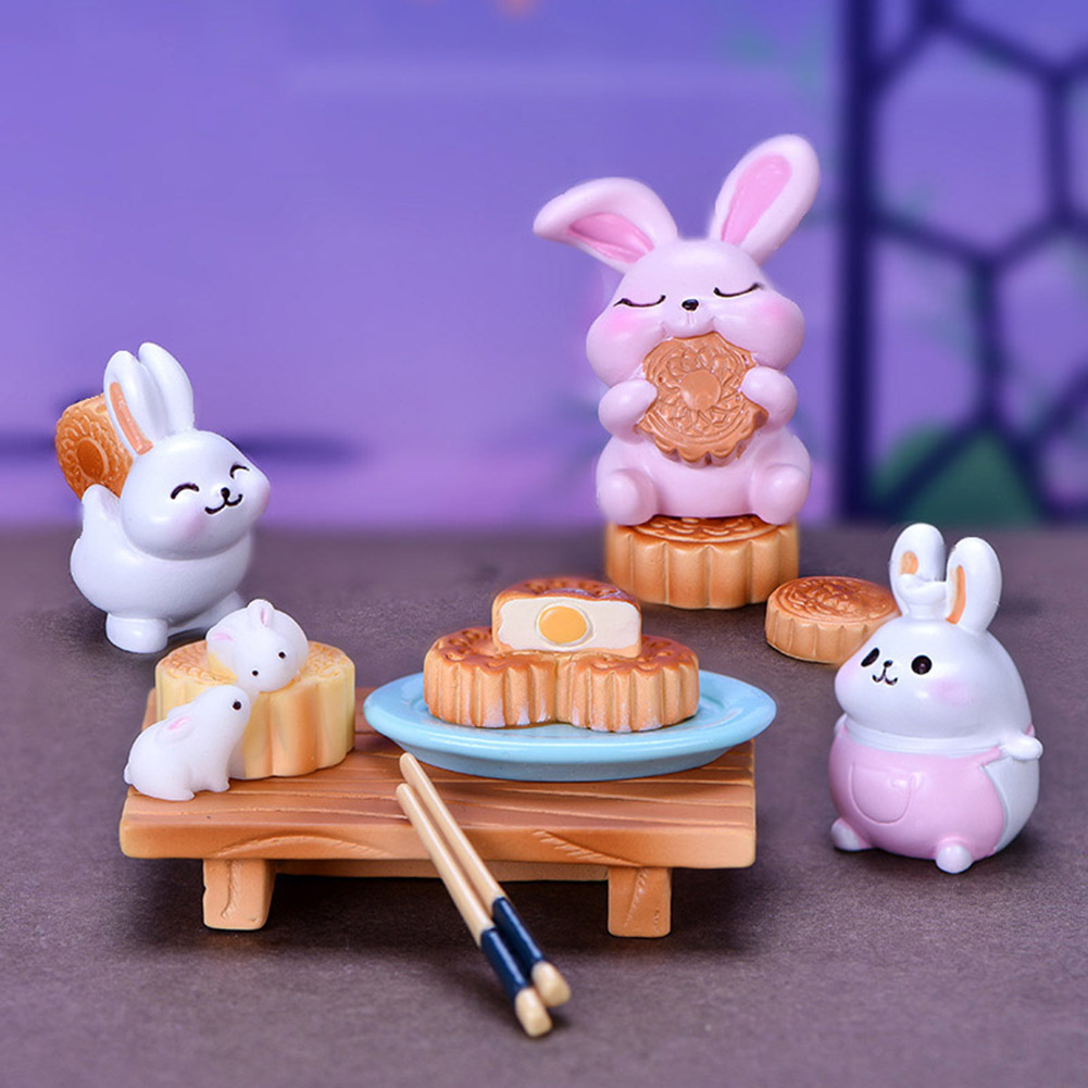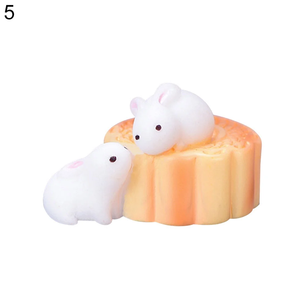 Farfi Resin Dollhouse Miniature Mid-Autumn Festival Cute Moon Cake Rabbit Ornaments (Type 3)