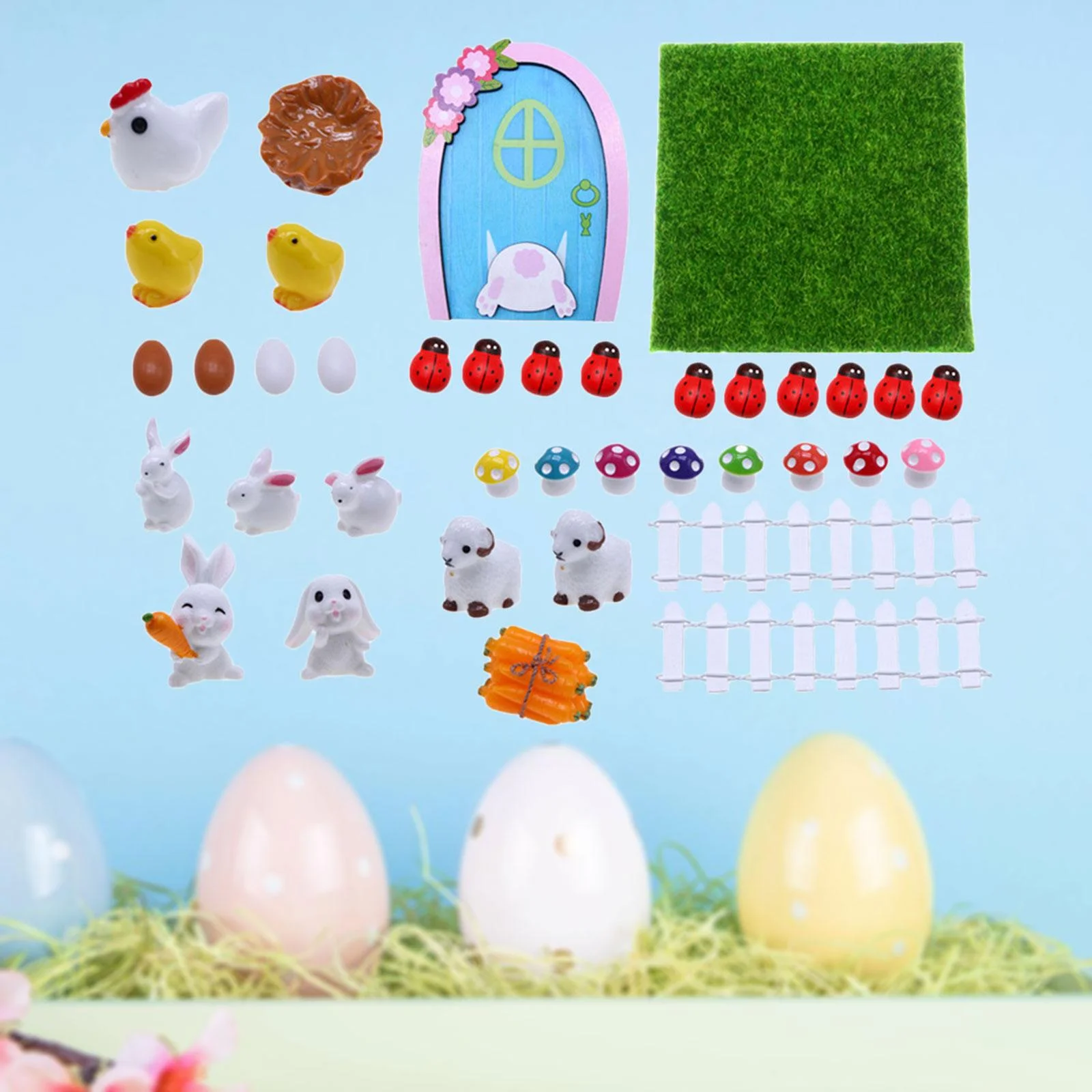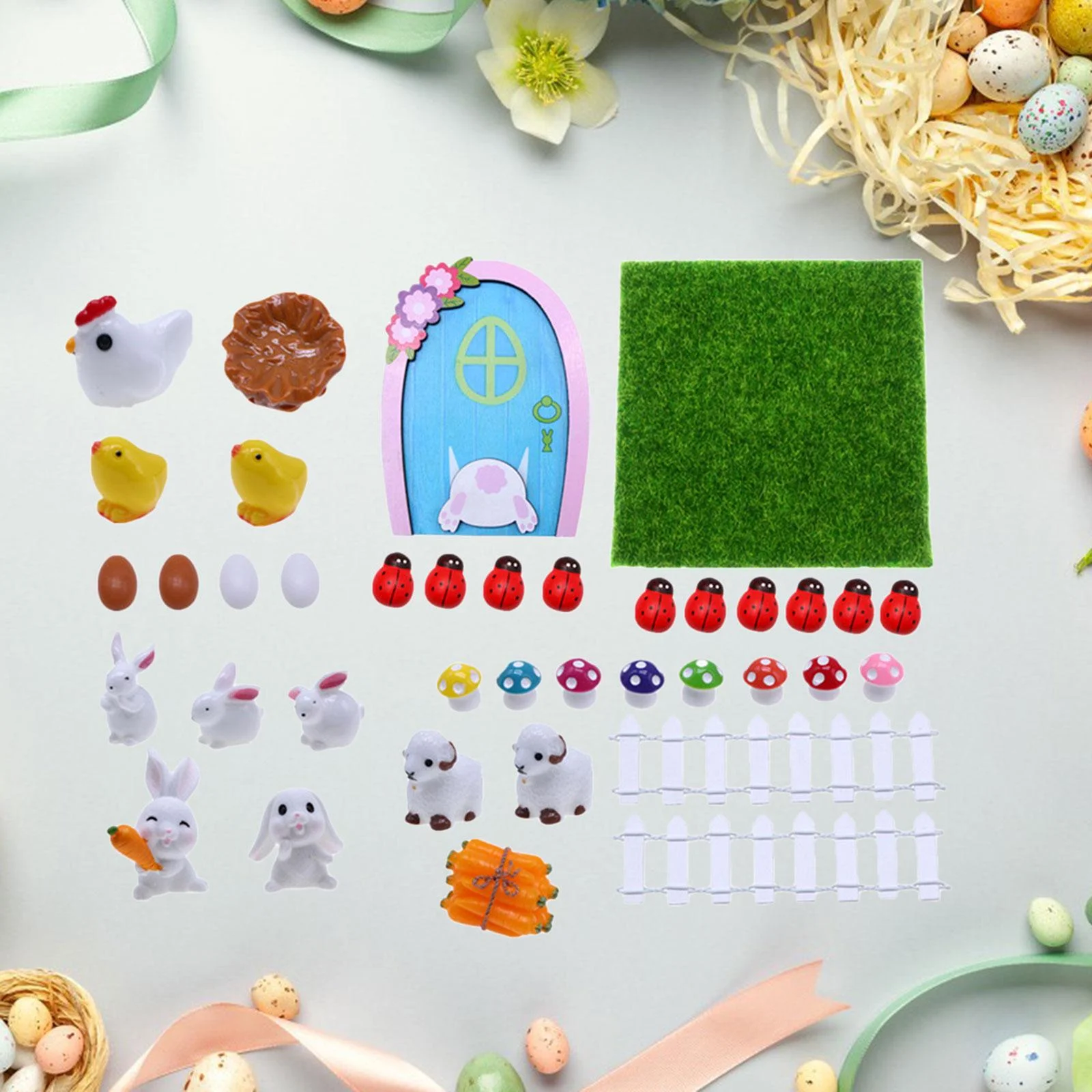 1:12 Scale Dollhouse Easter Decoration Rabbit, Sheep, Chick, Eggs, Fence, Door and Lawn Fairy Figurines Life Scene Pretend DIY Crafts Decor