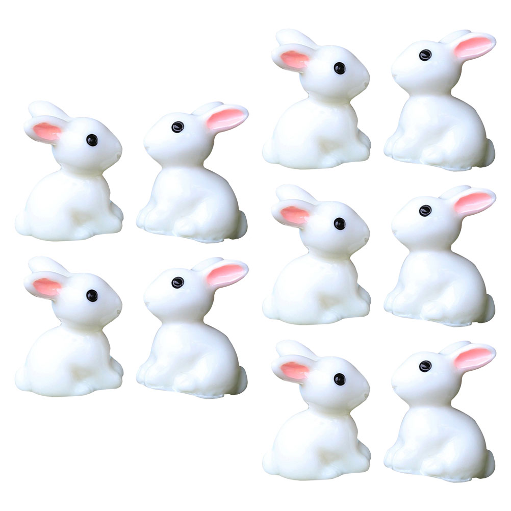 10 Pcs Rabbit Decor Dollhouse Accessories Resin Crafts Toys Statue Moss Miniature for Landscape