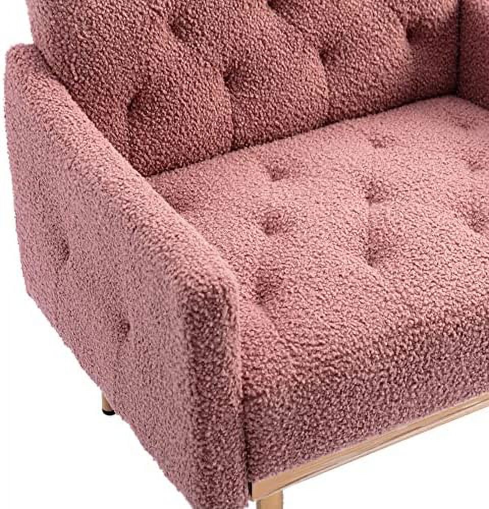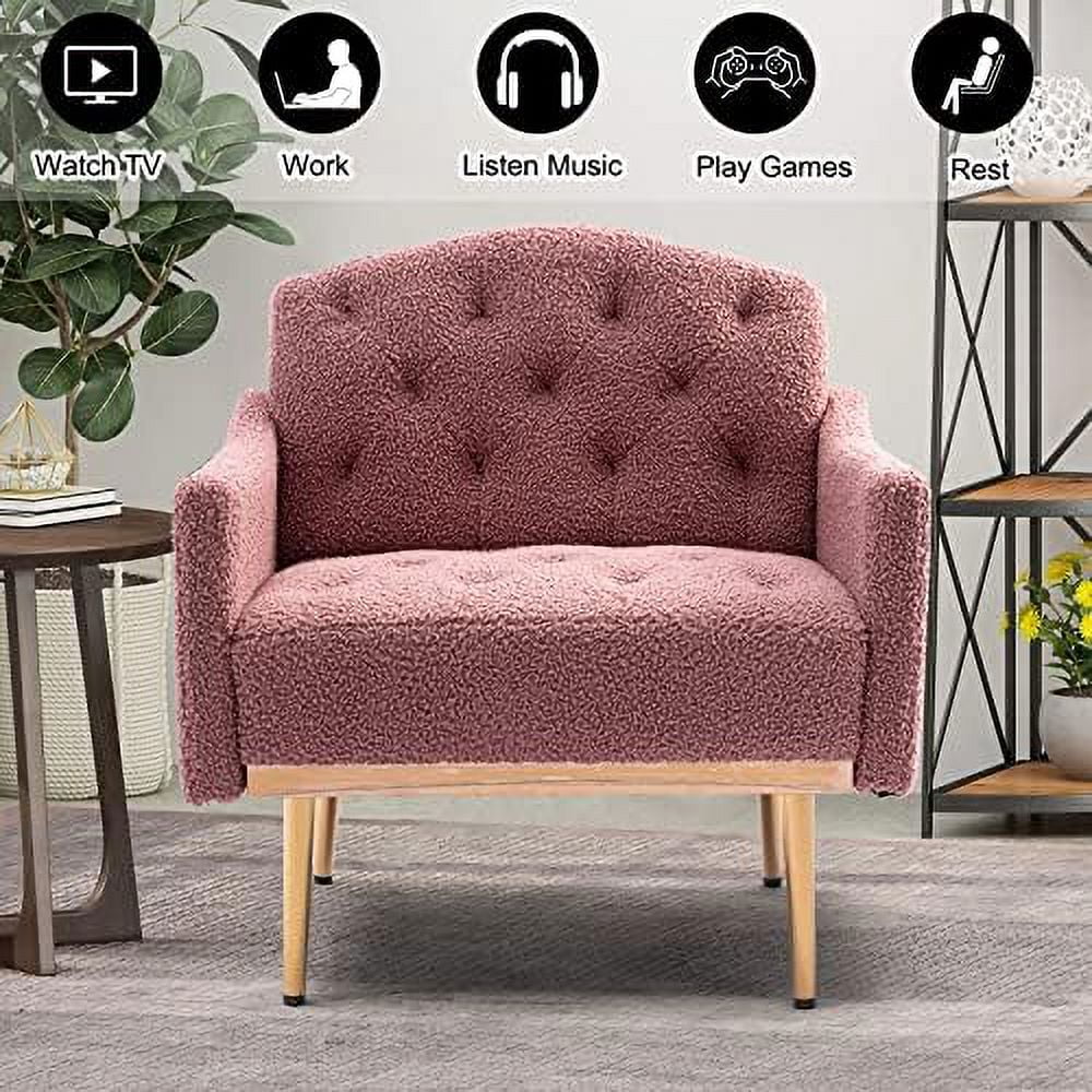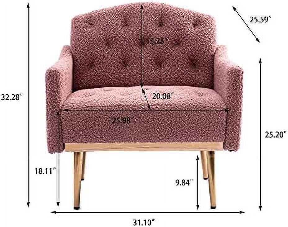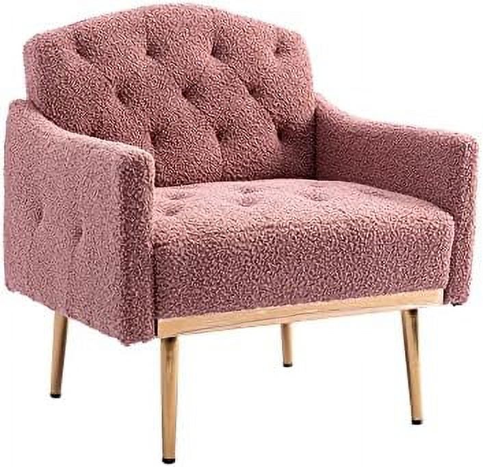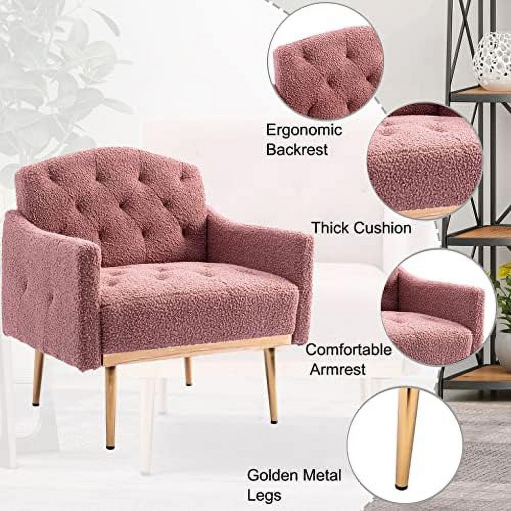 TJUNBOLIFE Upholstered Modern Velvet Accent Chair Button Tufted Single Sofa Chair with Arms and Golden Finished Metal Legs Mid-Century Armchairs for Living Room Bedroom Home Office Guest