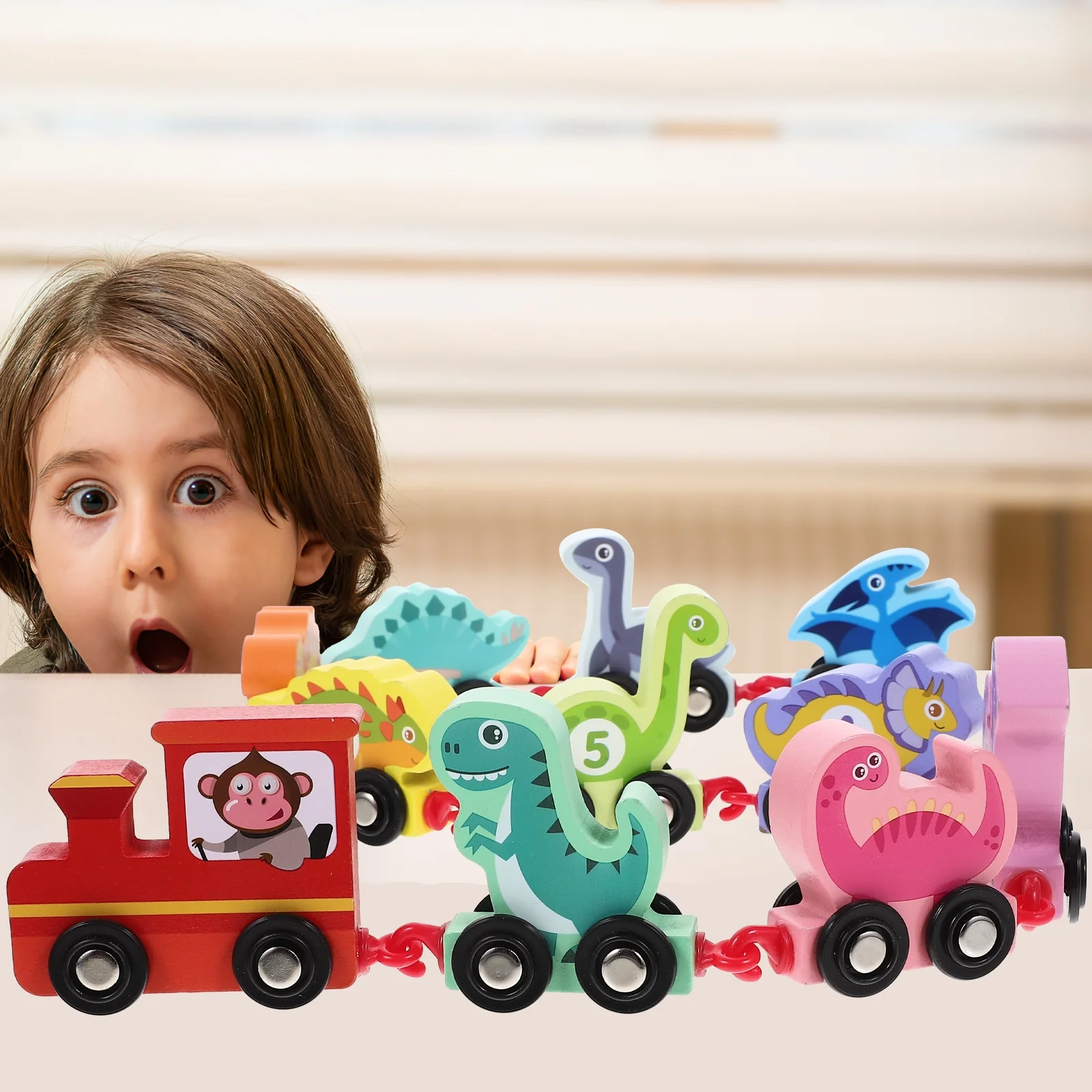 1 Set of Train Set Montessori Cute Educational Toys Dinosaur Number Train Toy for Toddler