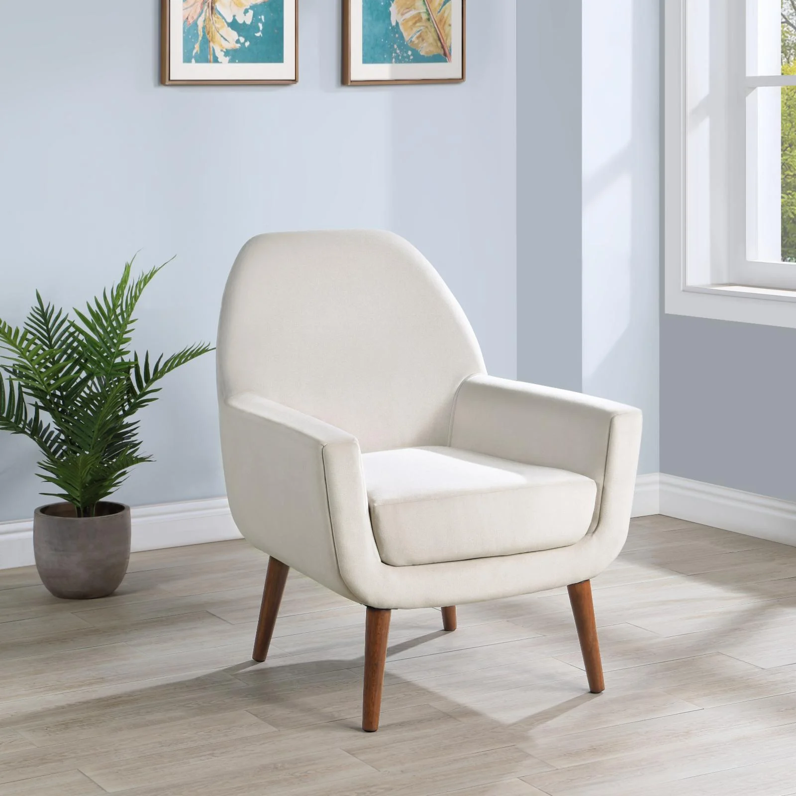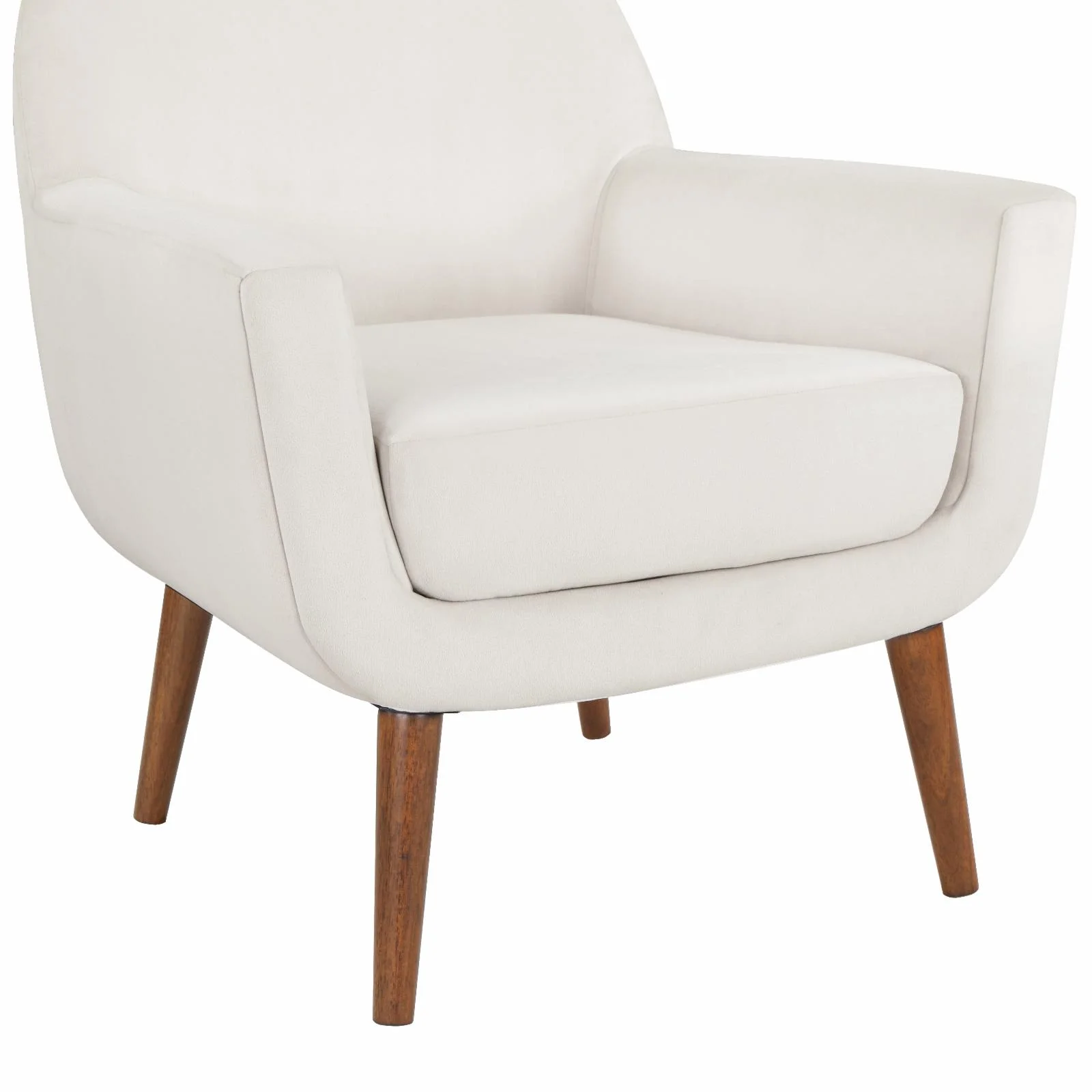 Accera Mid-Century Navy Blue Velvet Arm Chair with Solid Wood Brown Legs