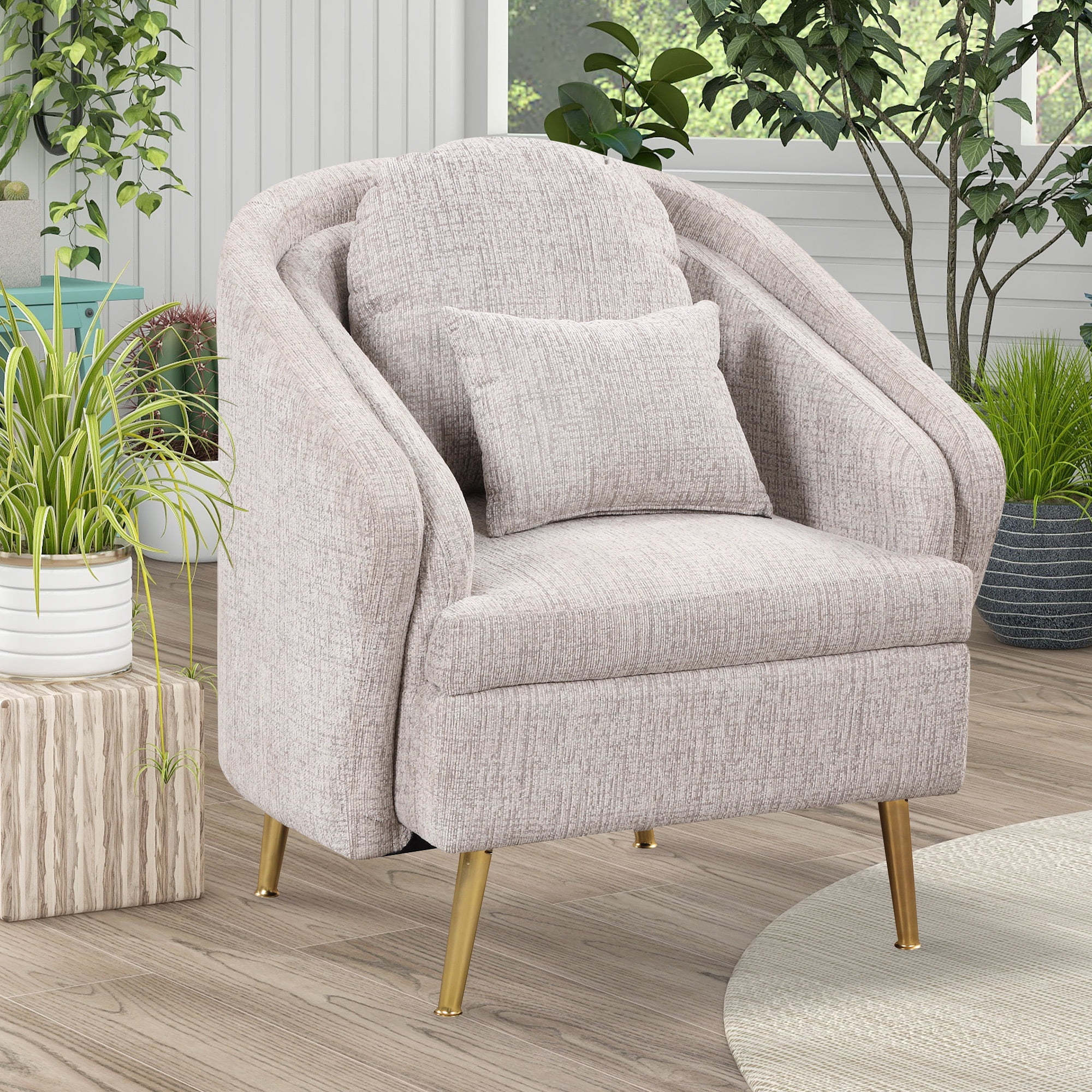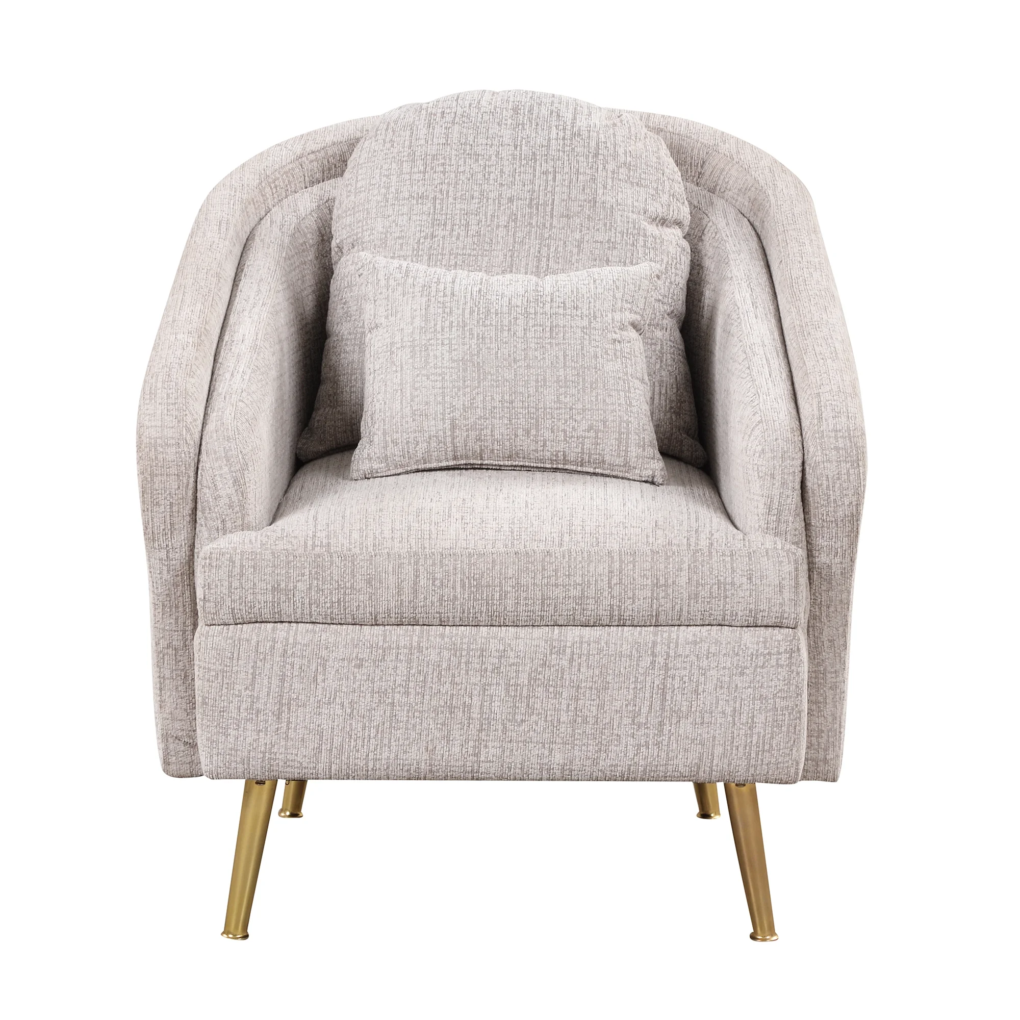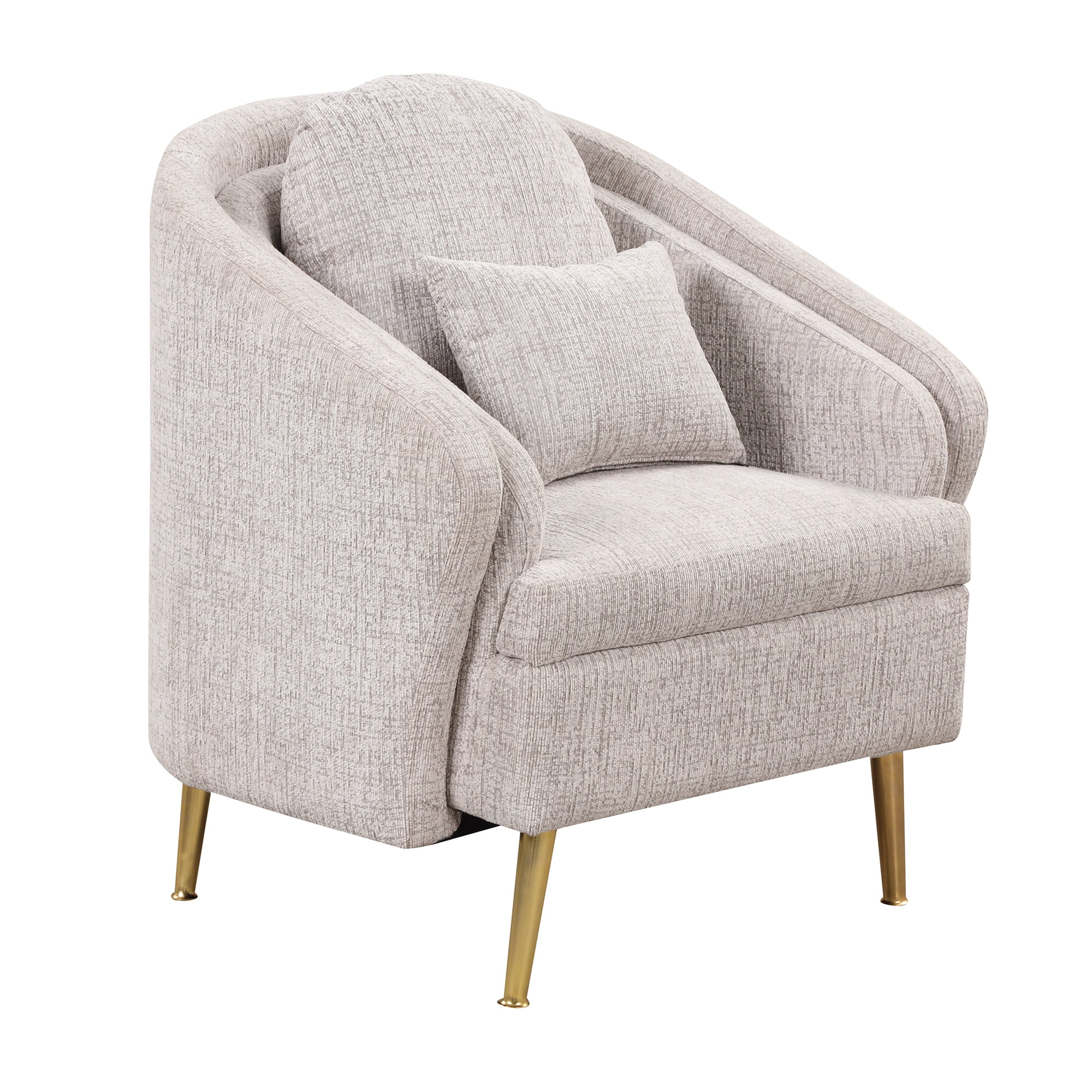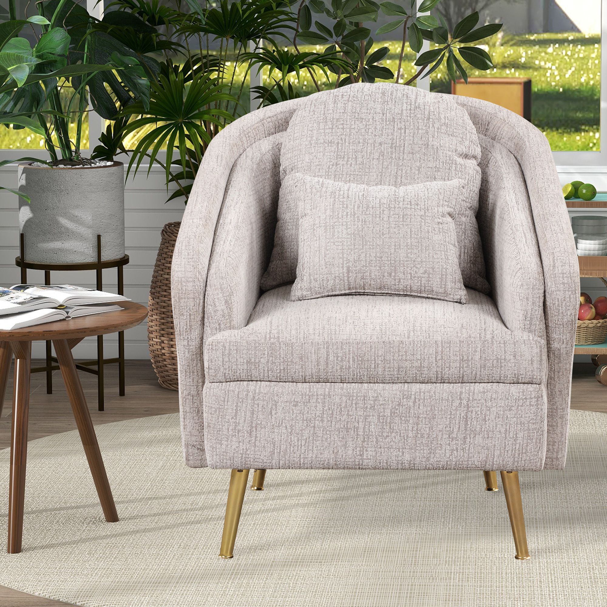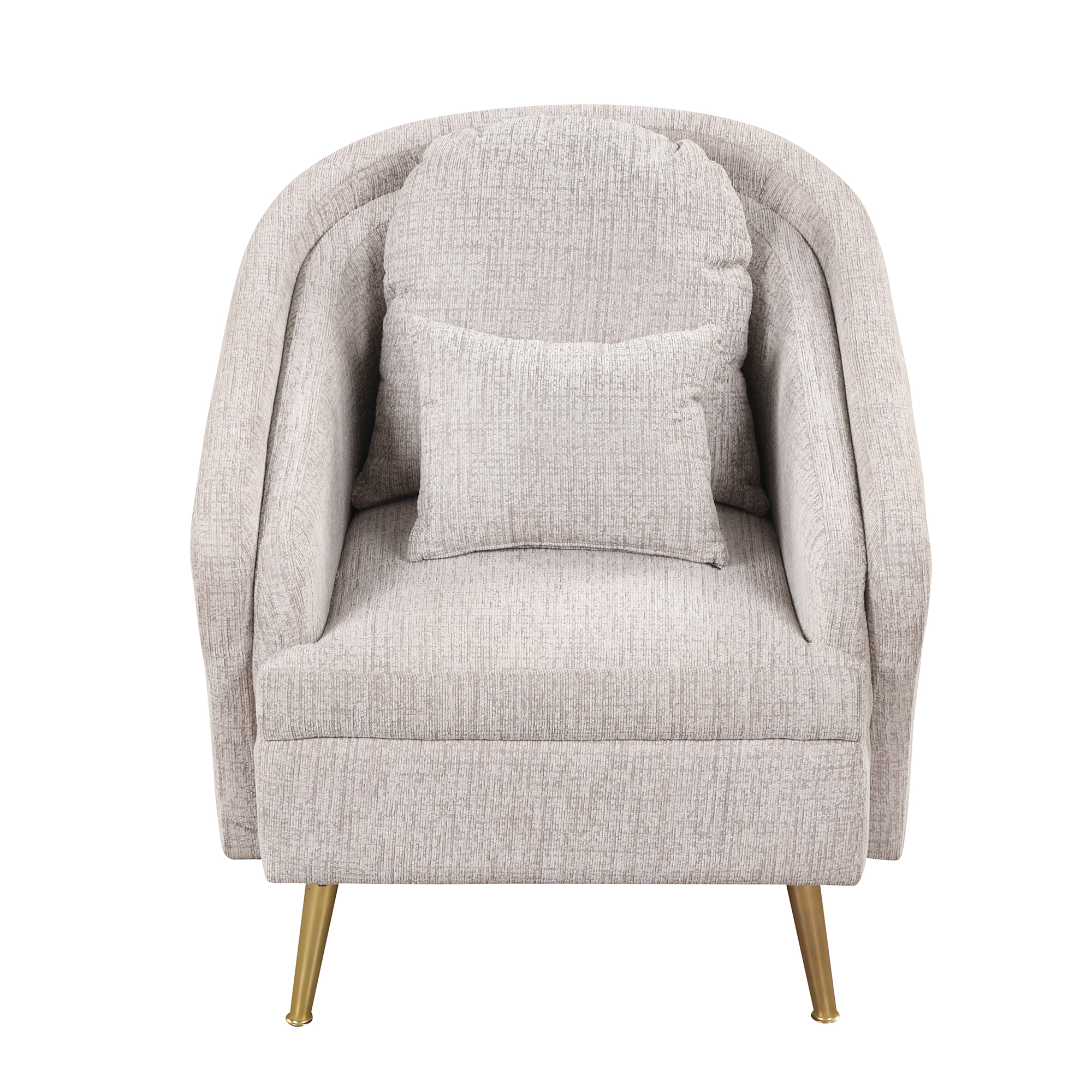 Mid-Century Accent Chair Arm Chair with Lumbar Pillow and Metal legs, Upholstered Accent Chair for Living Room, Bedroom,Light Grey