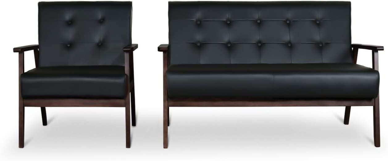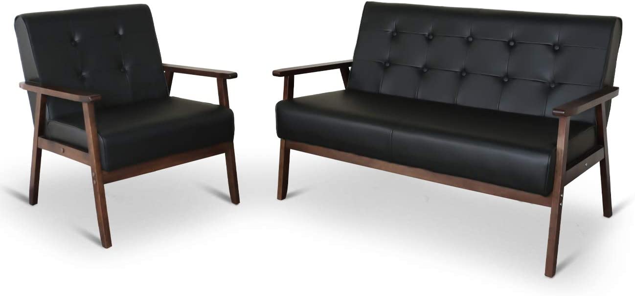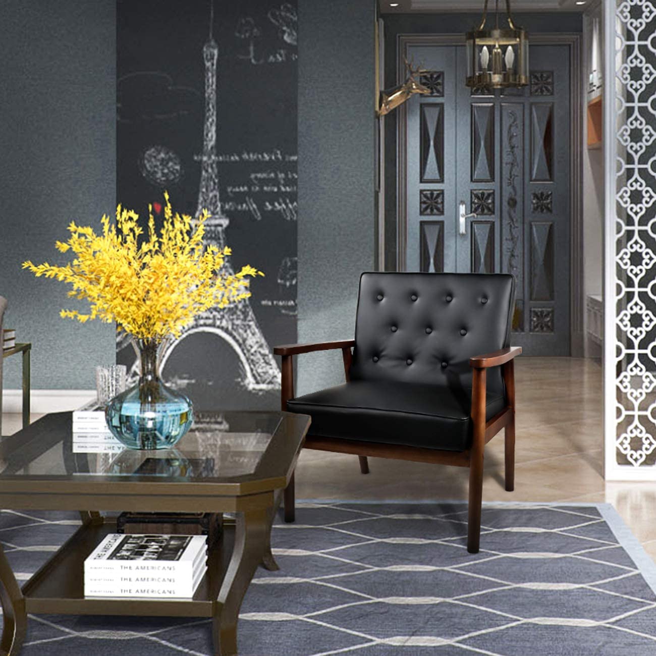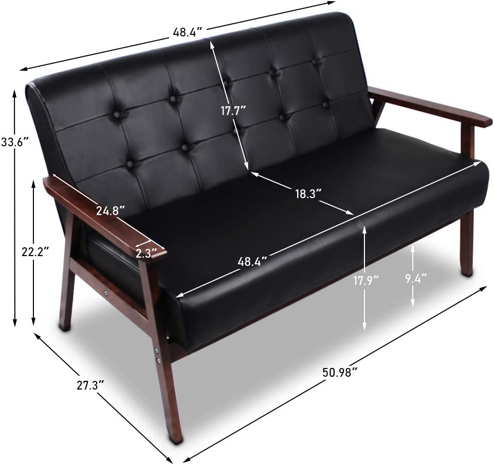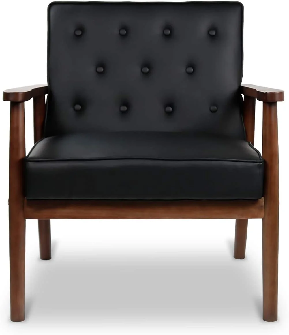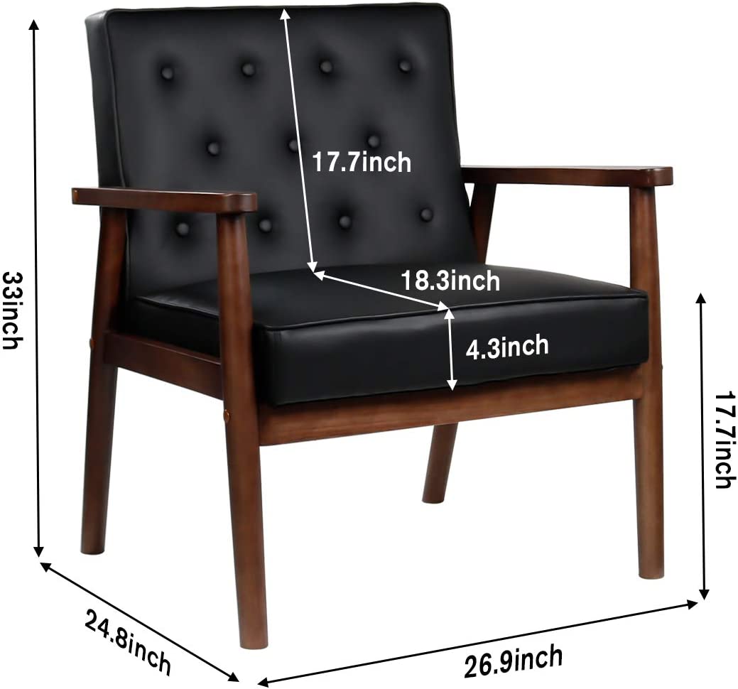 Mid-Century Retro Modern Accent Chair Wooden Arm Upholstered Tufted Back Lounge Chairs Seat Size 24.4" 18.3" (Deep)