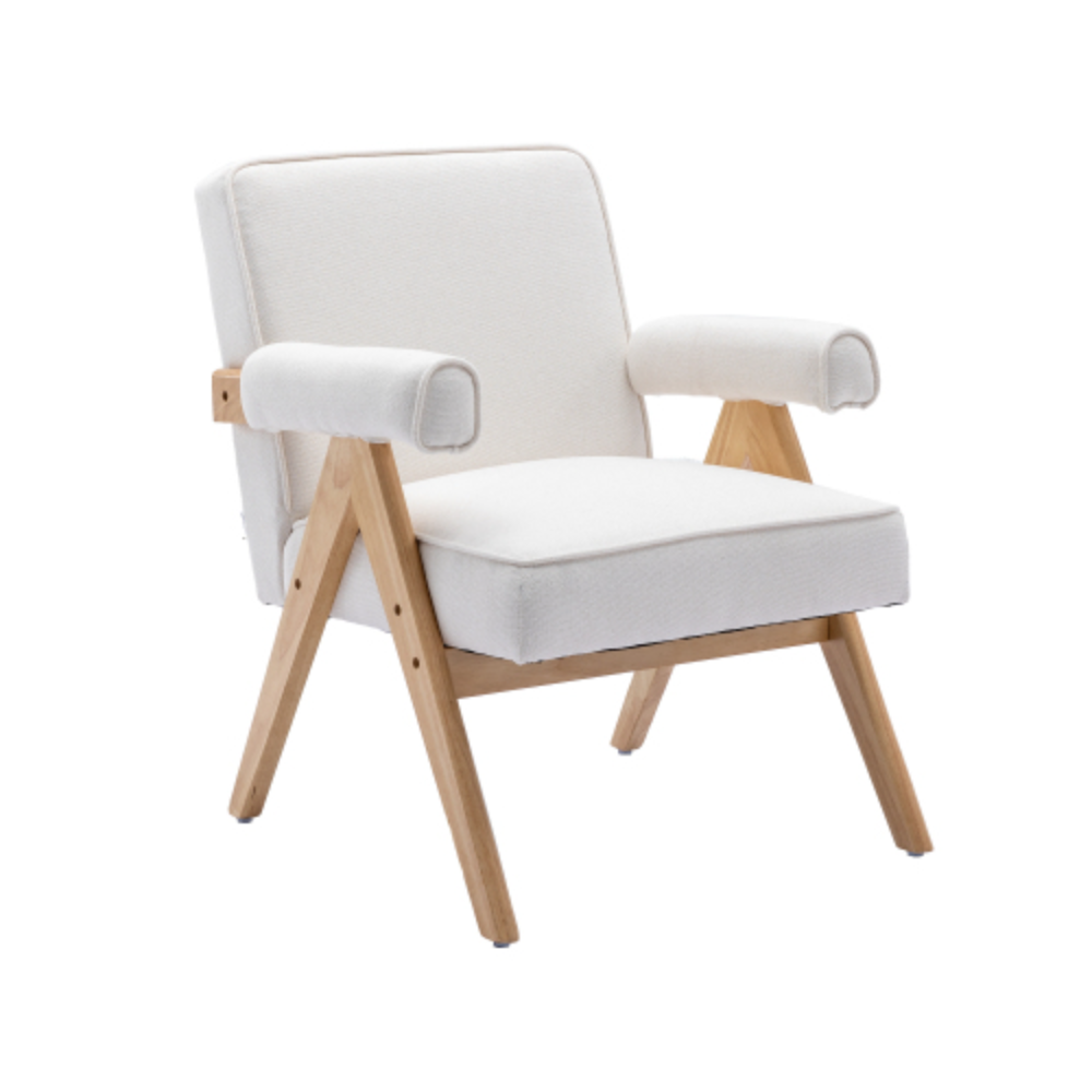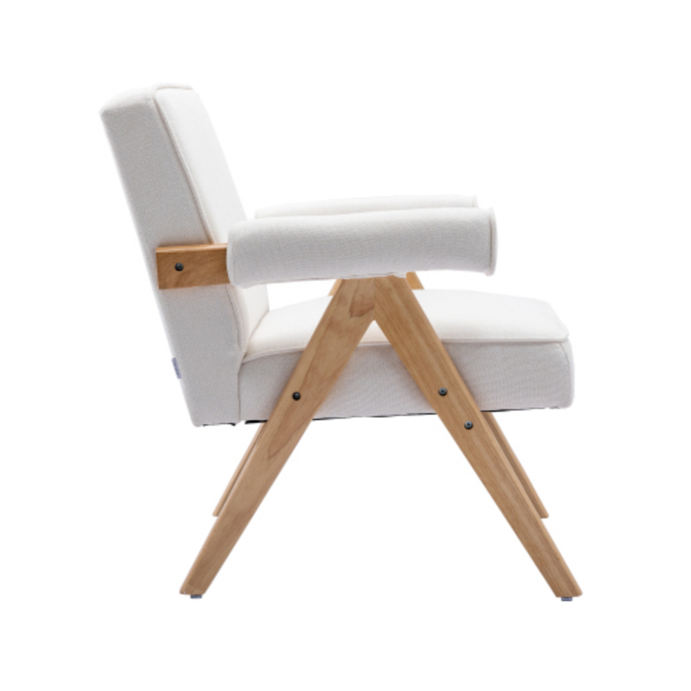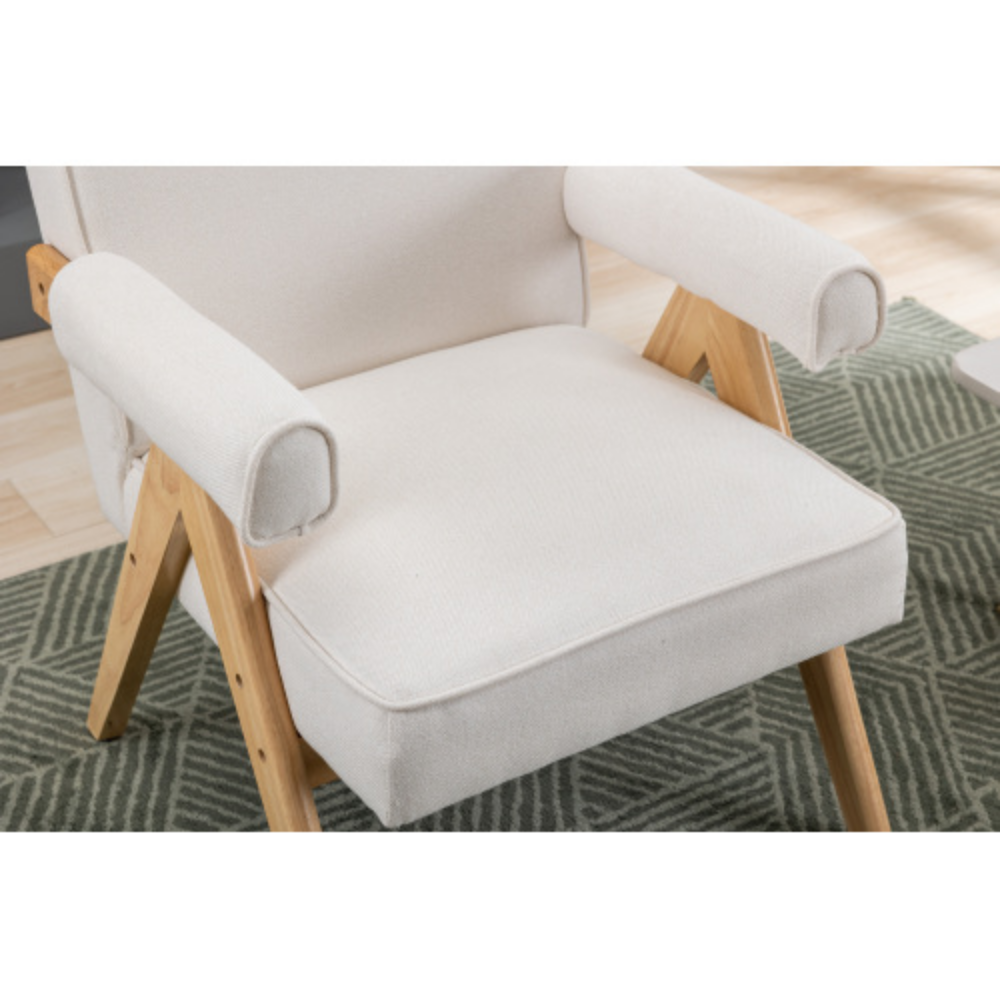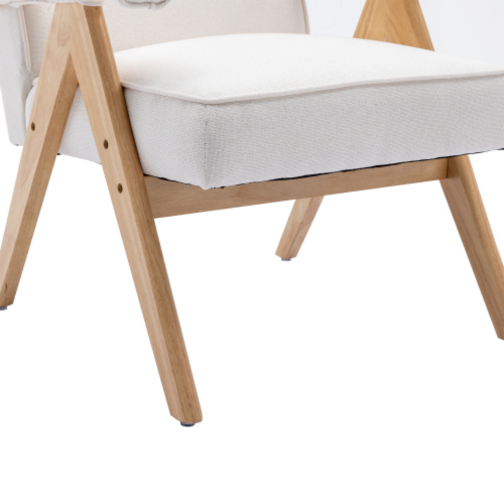 Leisure Chair with Solid Wood Armrest and Feet, Mid-Century Modern Accent chair, for Living Room Bedroom Studio chair Beige + Linen