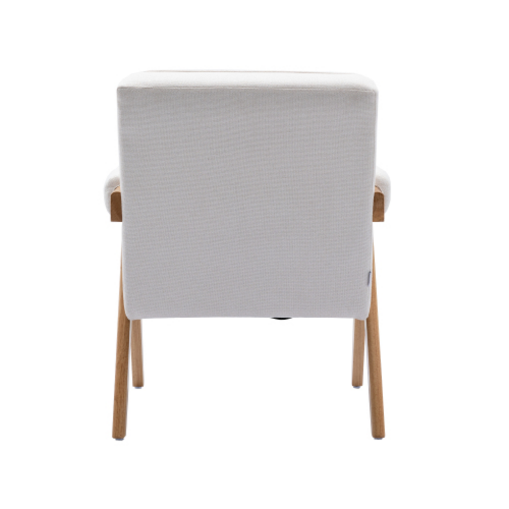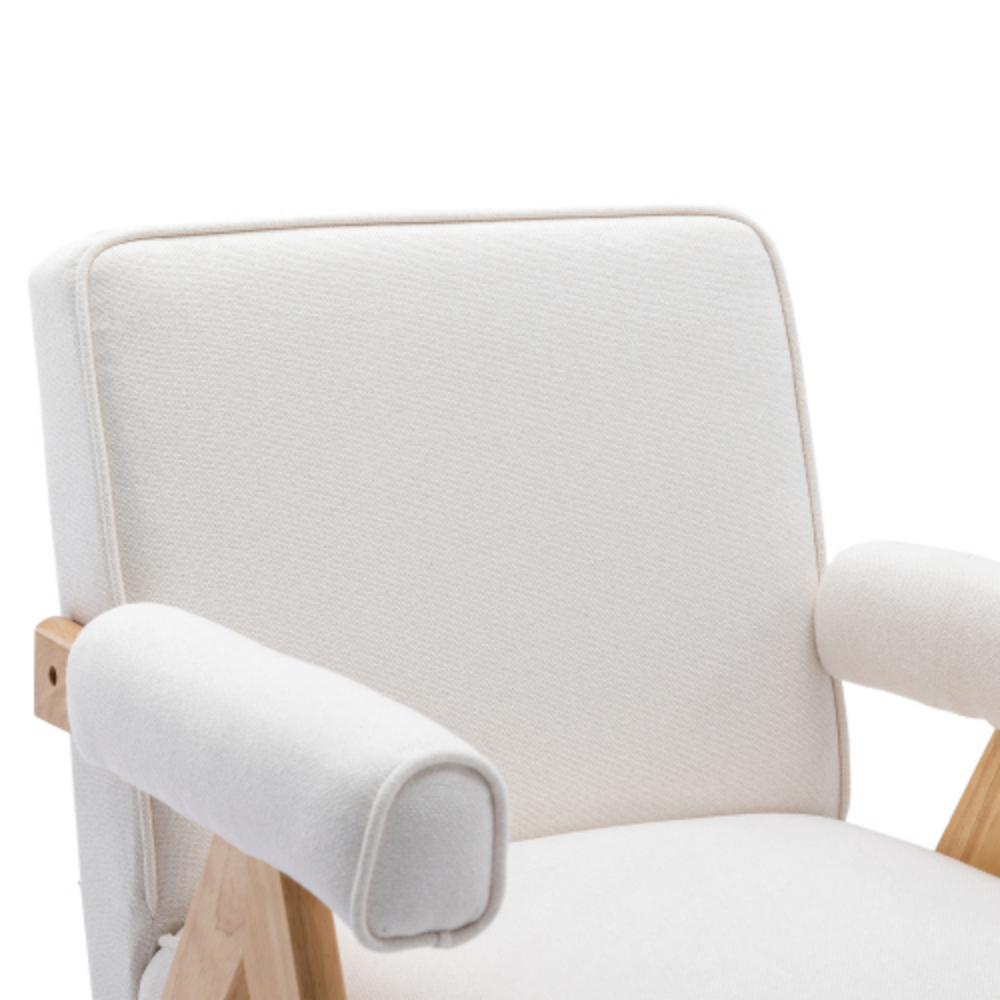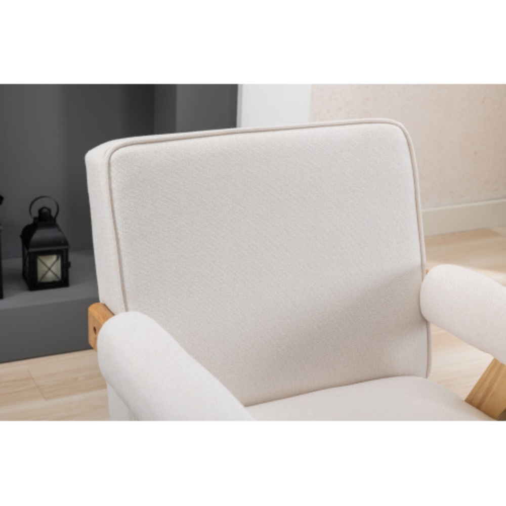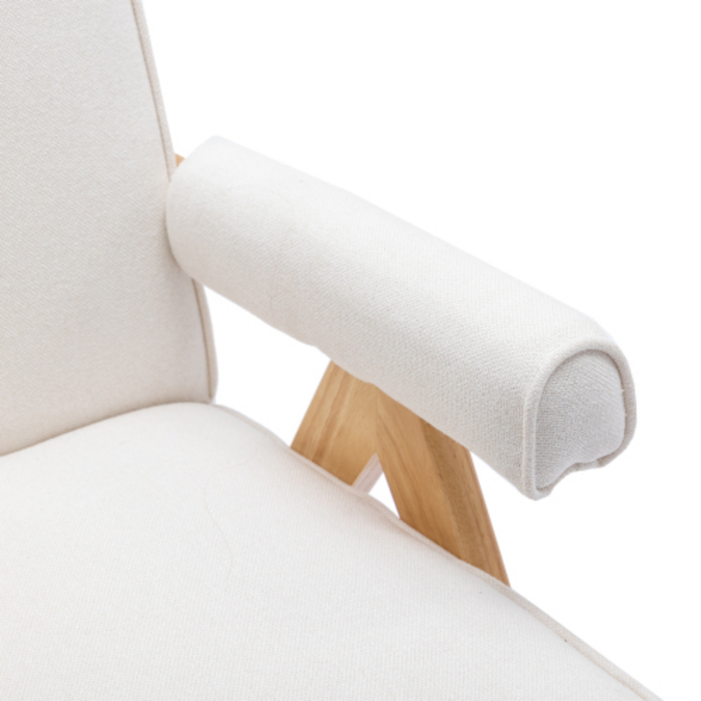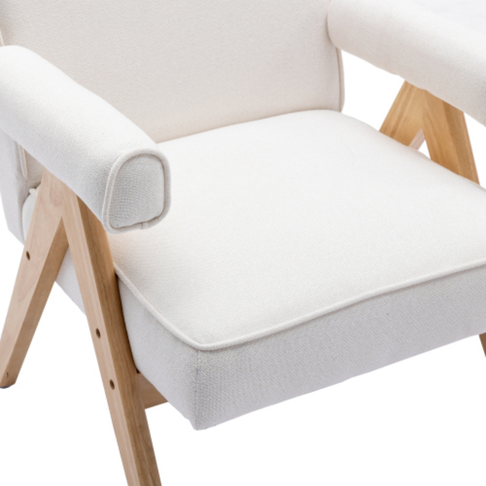 Leisure Chair with Solid Wood Armrest and Feet, Mid-Century Modern Accent chair, for Living Room Bedroom Studio chair Beige + Linen