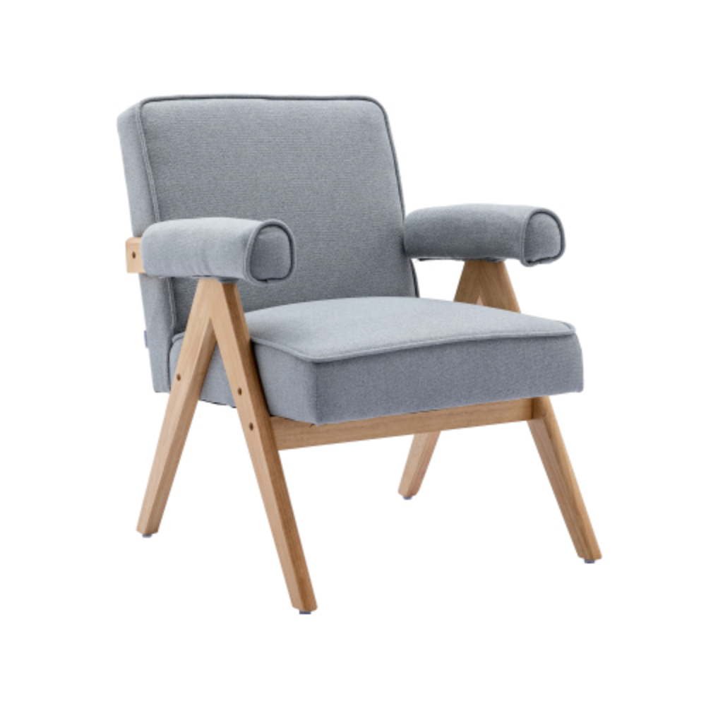 Leisure Chair with Solid Wood Armrest and Feet, Mid-Century Modern Accent chair, for Living Room Bedroom Studio chair Light Gray + Linen