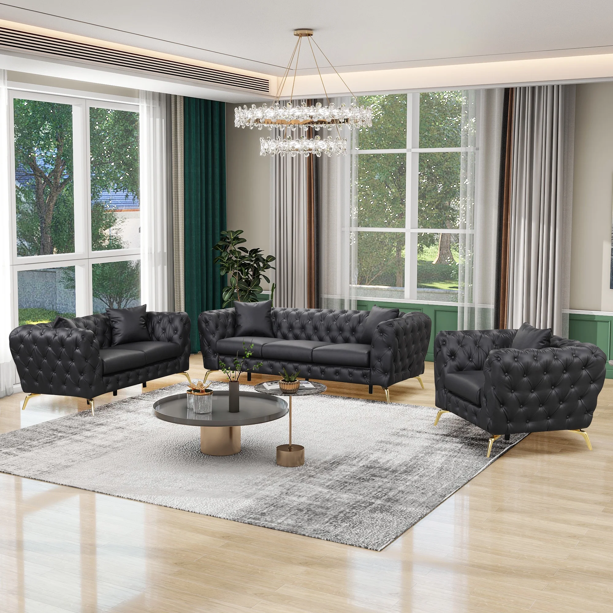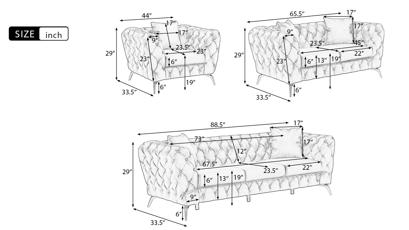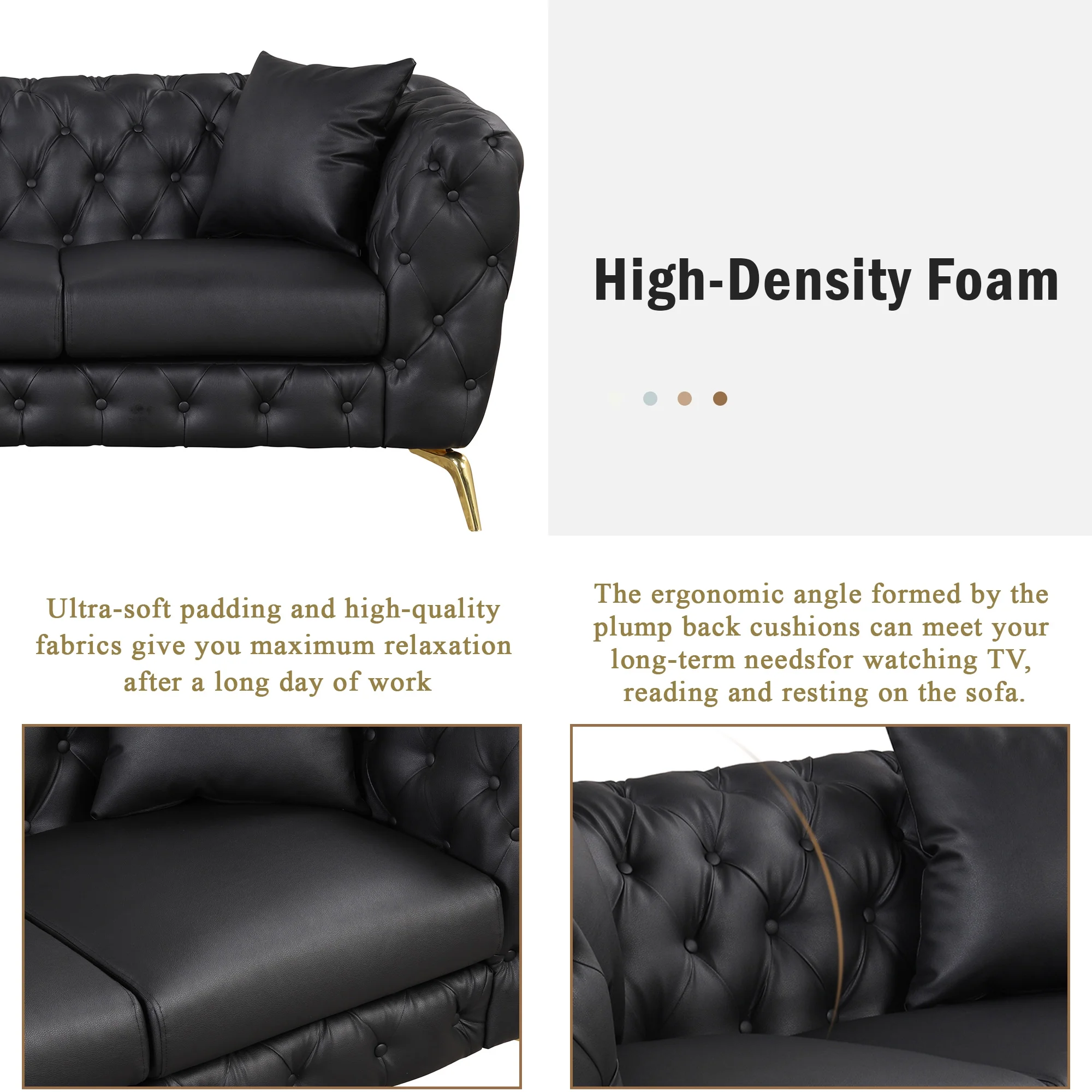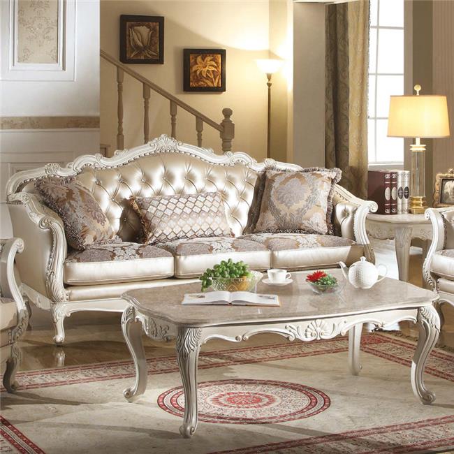 Chantelle Sofa with 3 Pillows, Rose Gold PU-Fabric & Pearl White - 45 x 84 x 37 in.