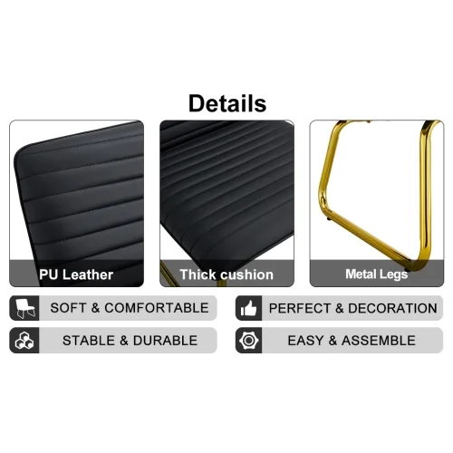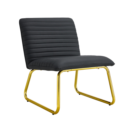 Black minimalist armless sofa chair with PU backrest and golden metal legs, suitable for offices