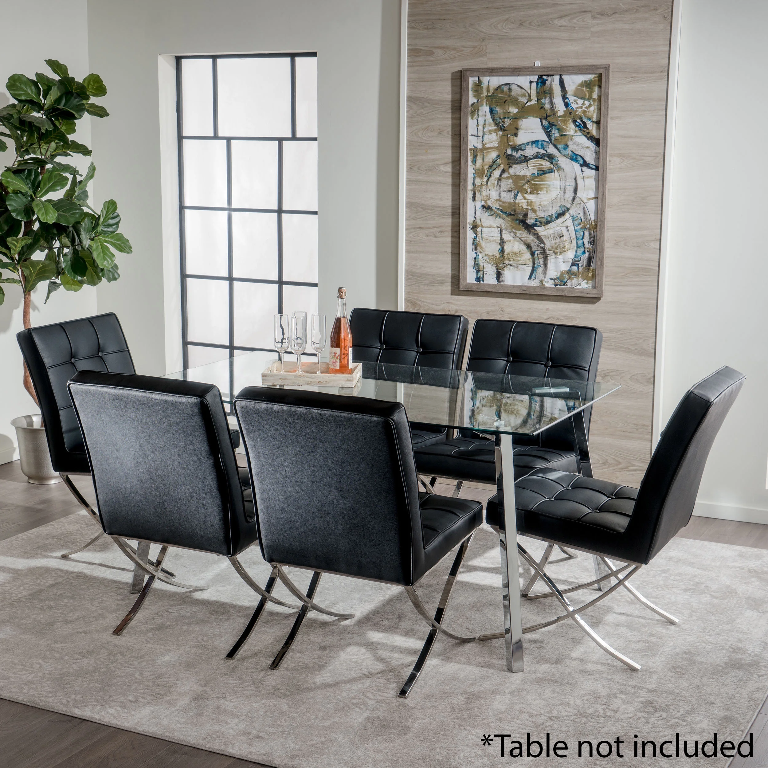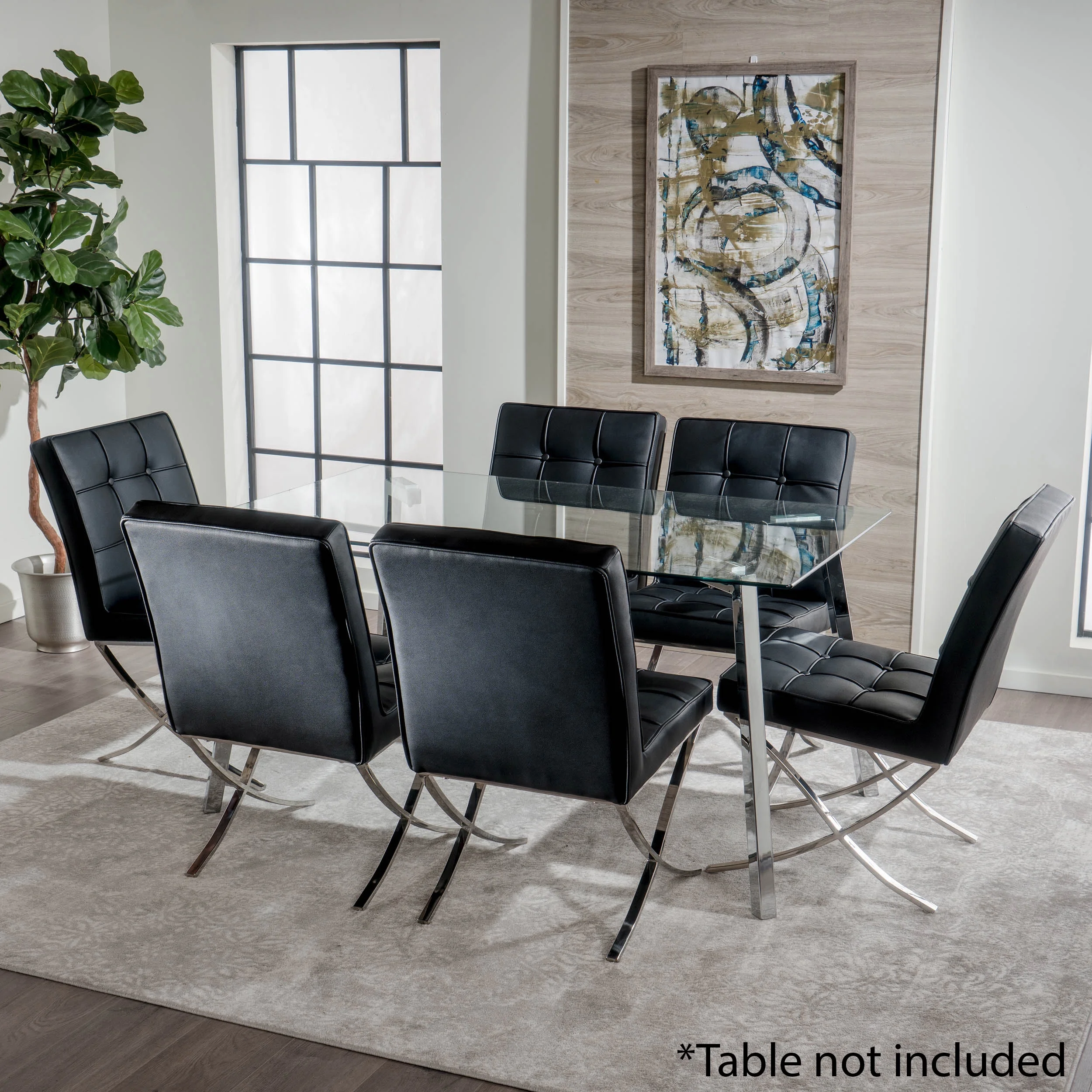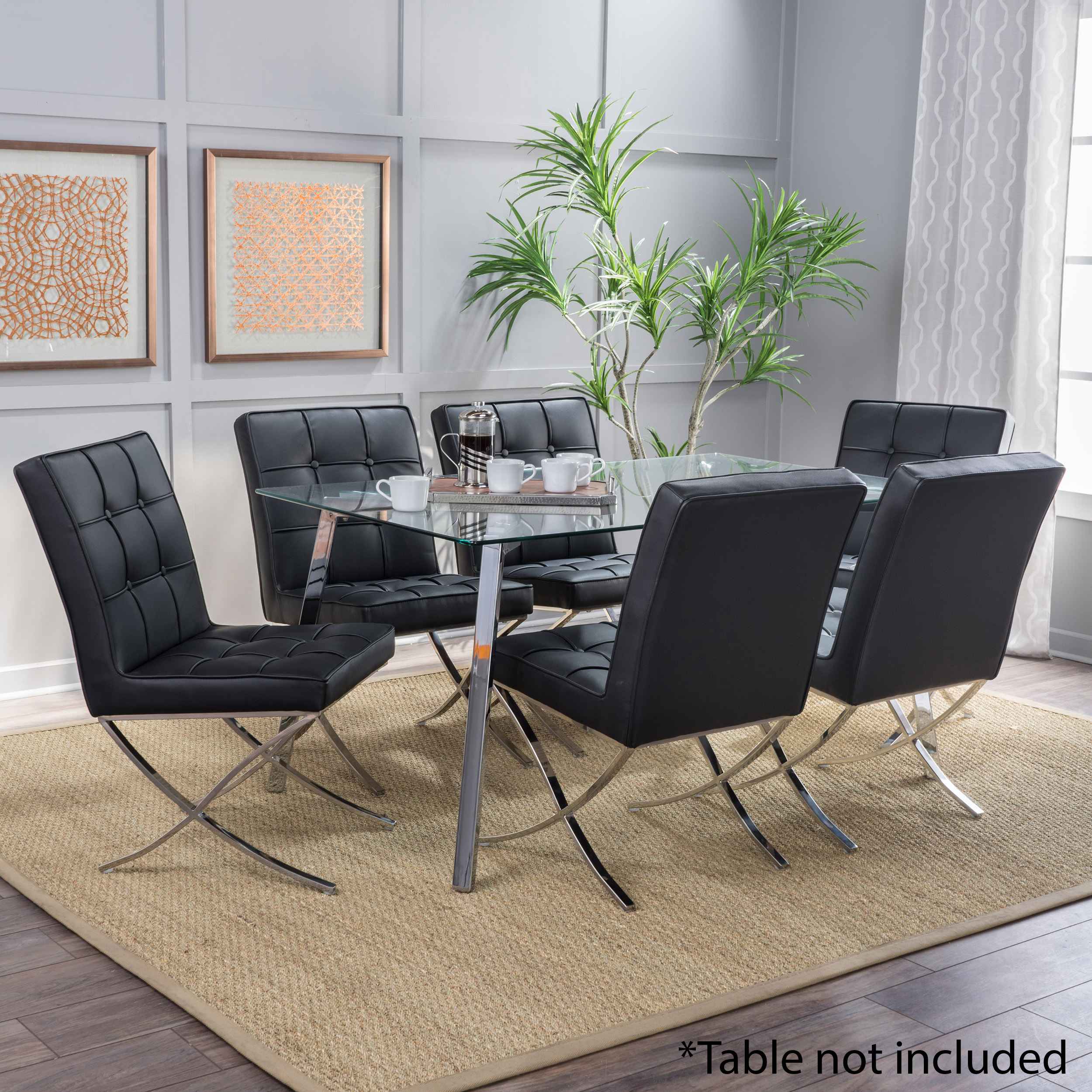 Noble House Harper Indoor Modern Bonded Leather Dining Chairs, Set of 2, Black