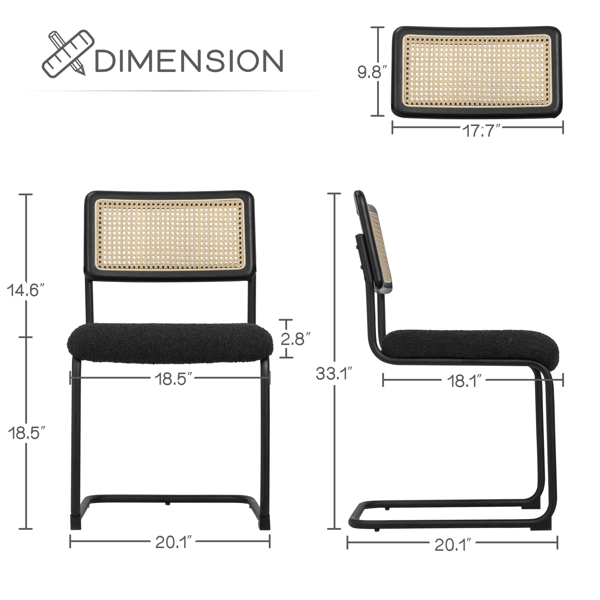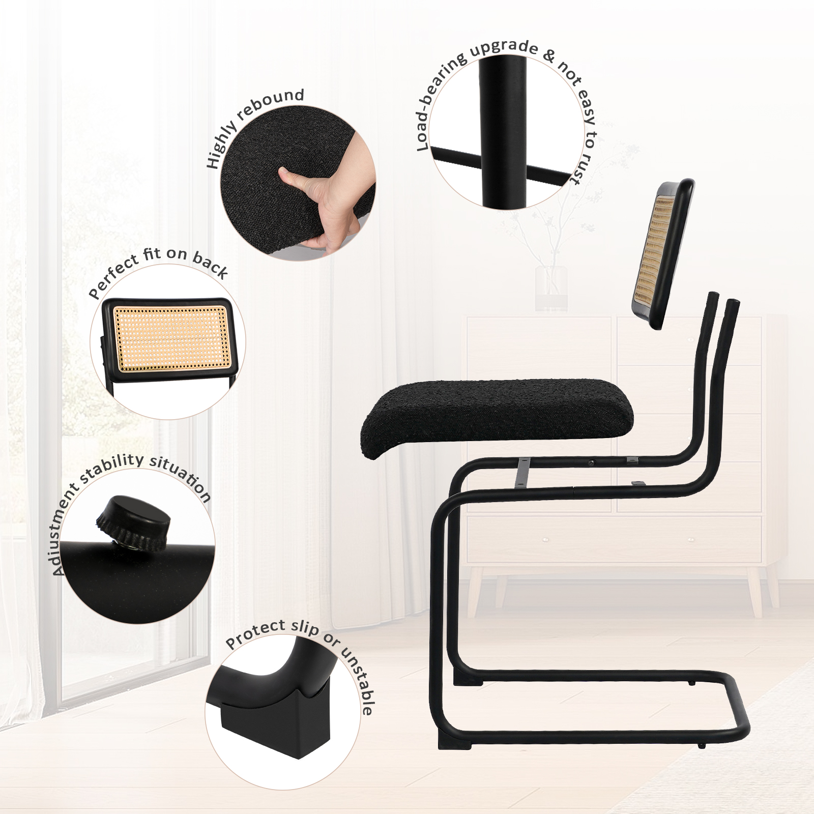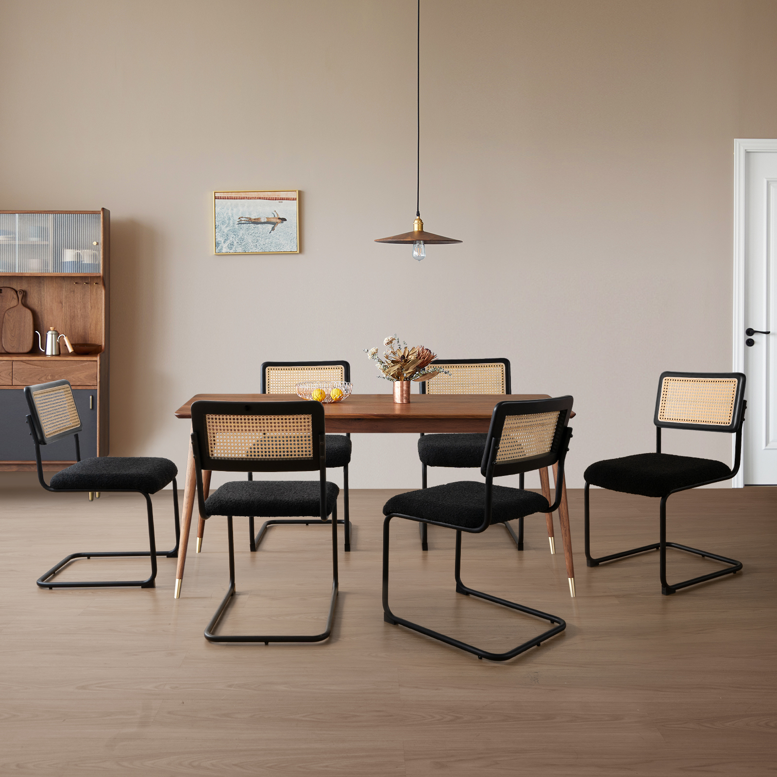 Kithkasa Rattan Boucle Dining Chairs for Dining Room,Metal Legs,Set of 2,Black