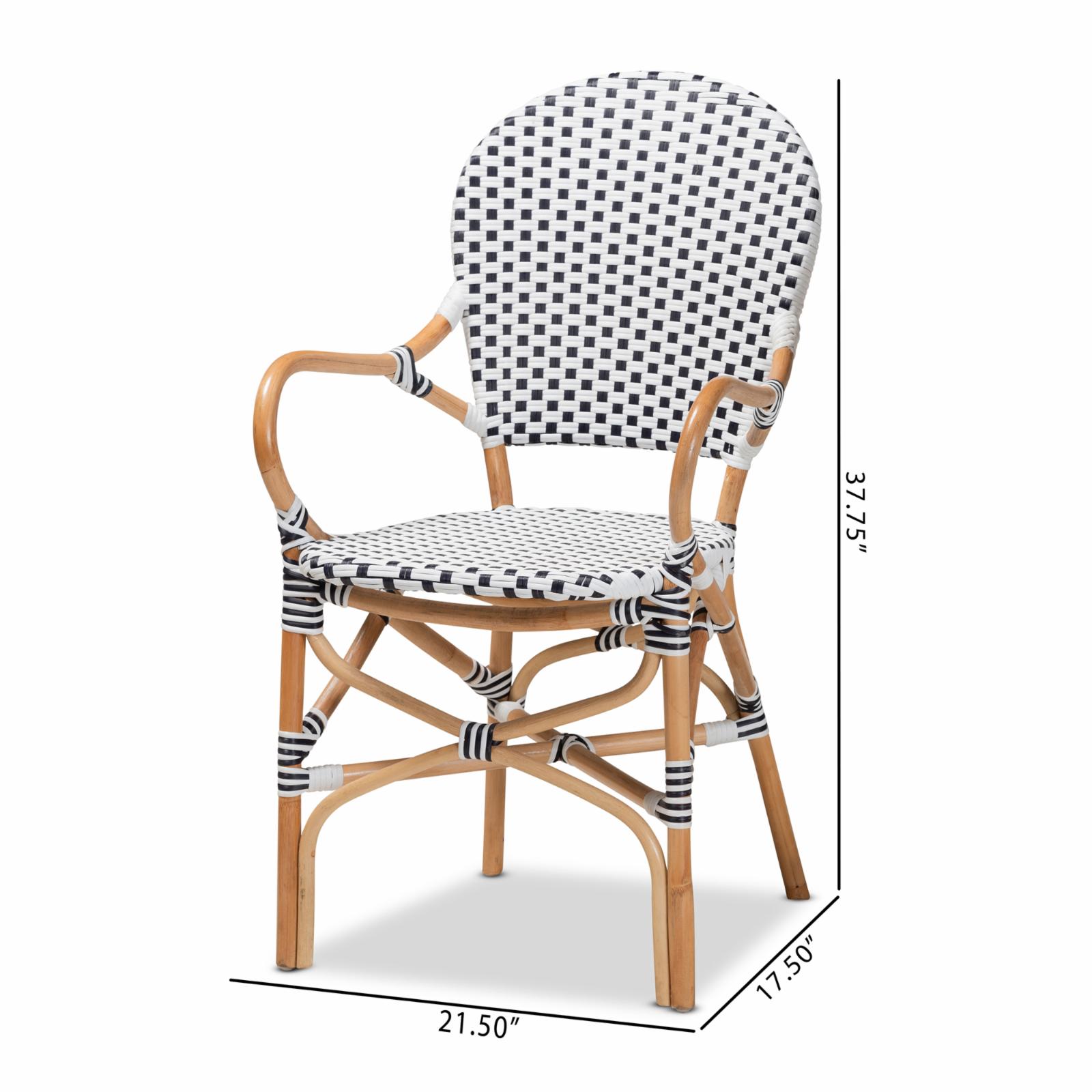 Baxton Studio Naila Black and White Weaving and Rattan 2-Piece Dining Chair Set