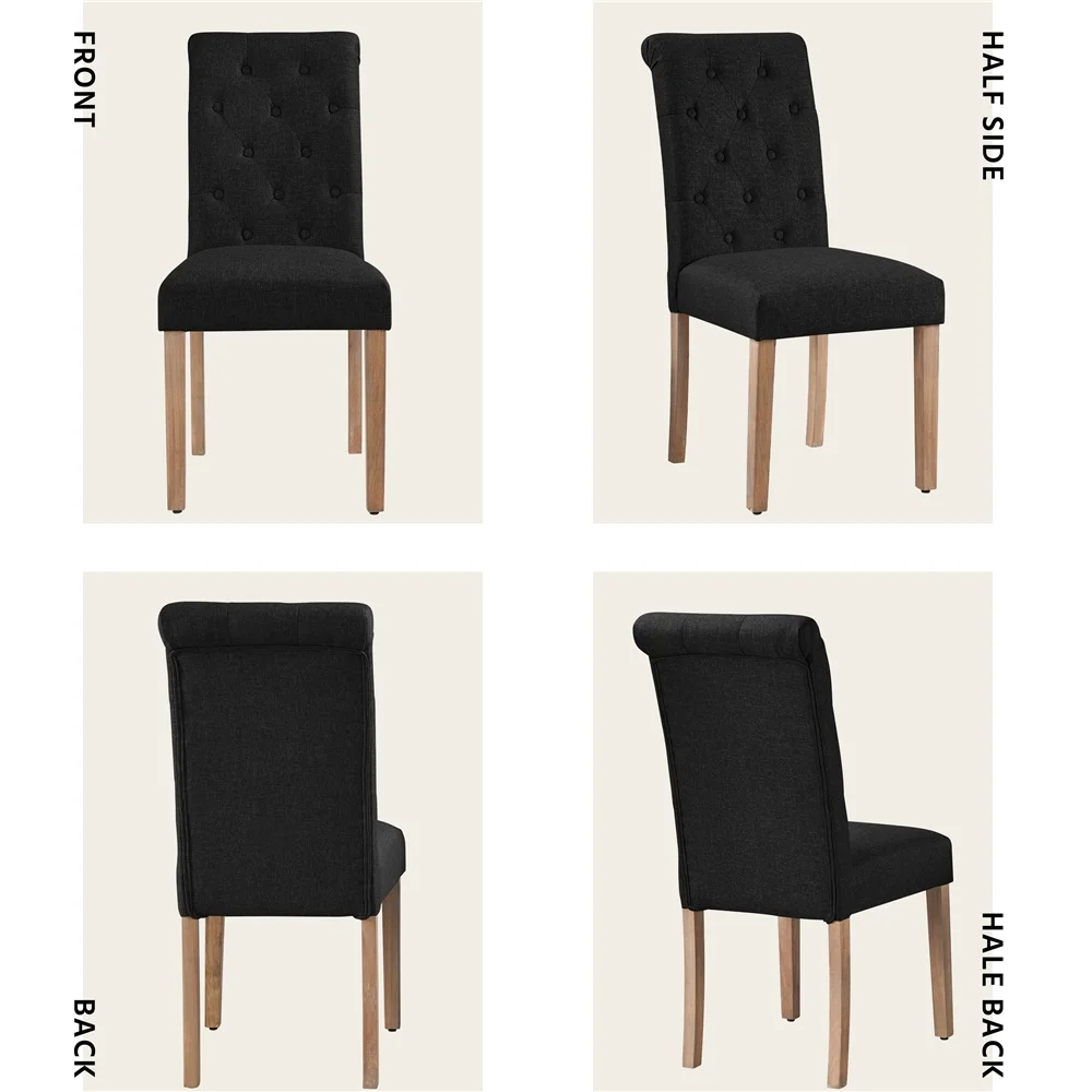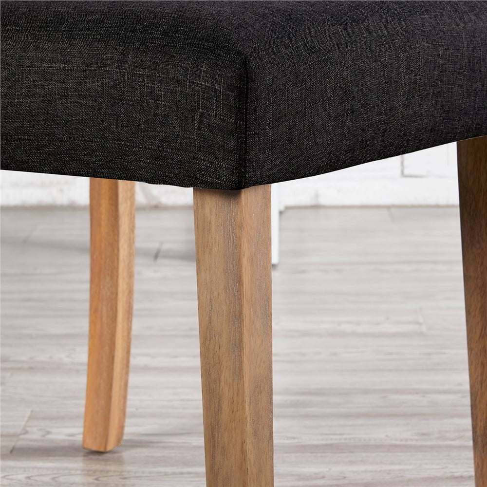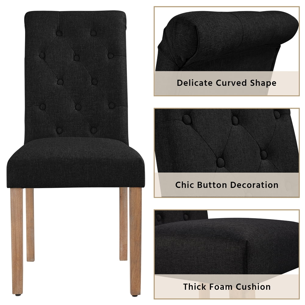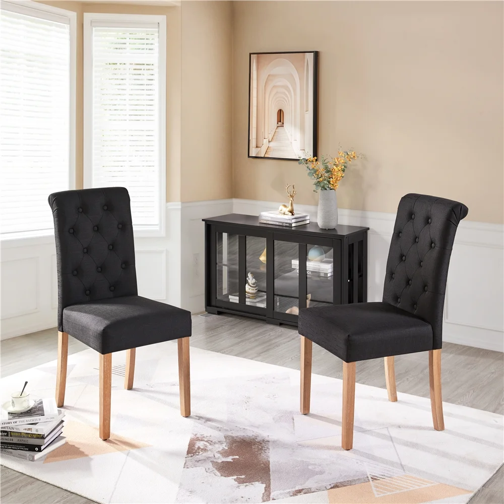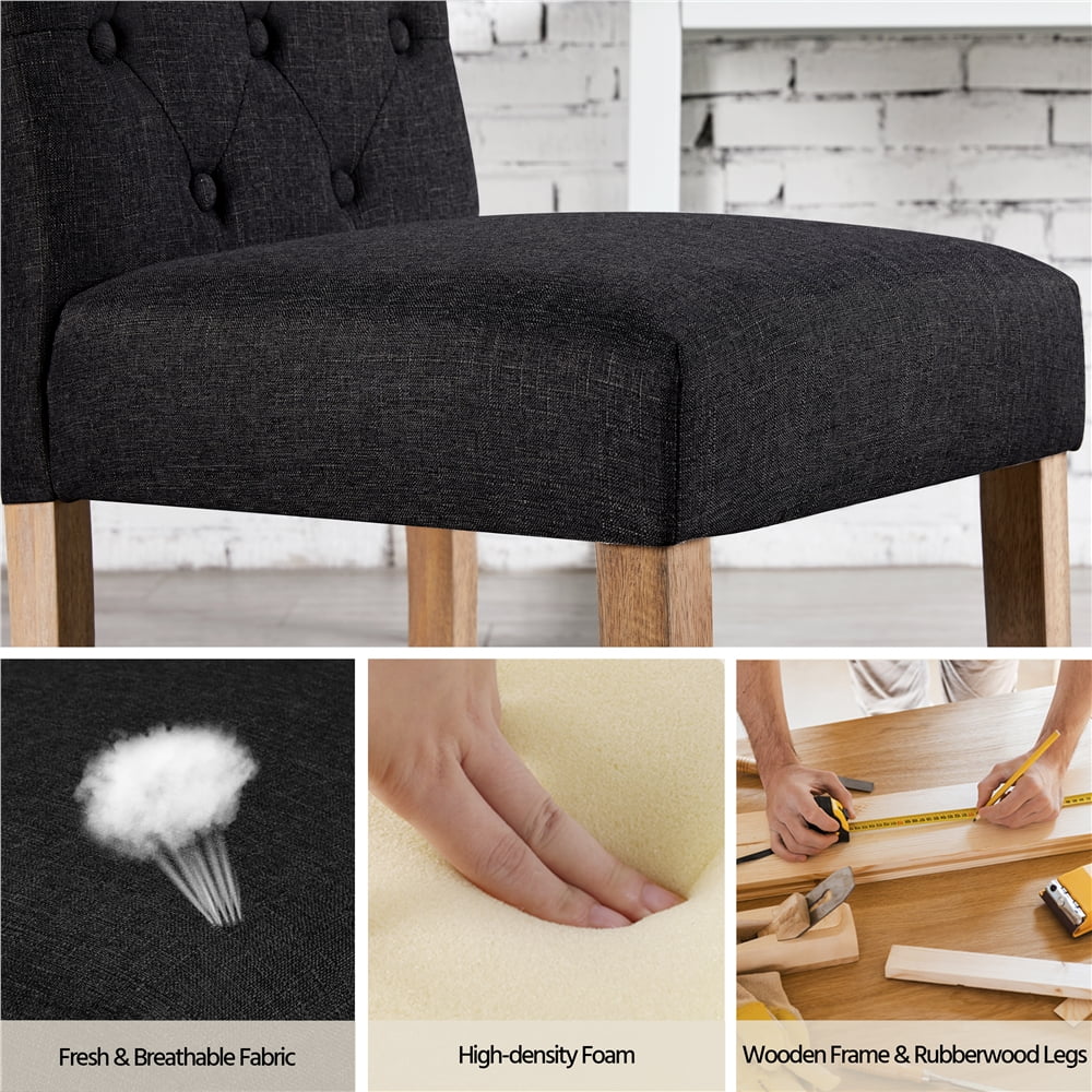Easyfashion Fabric Upholstered High Back Dining Chair, Set of 2, Black