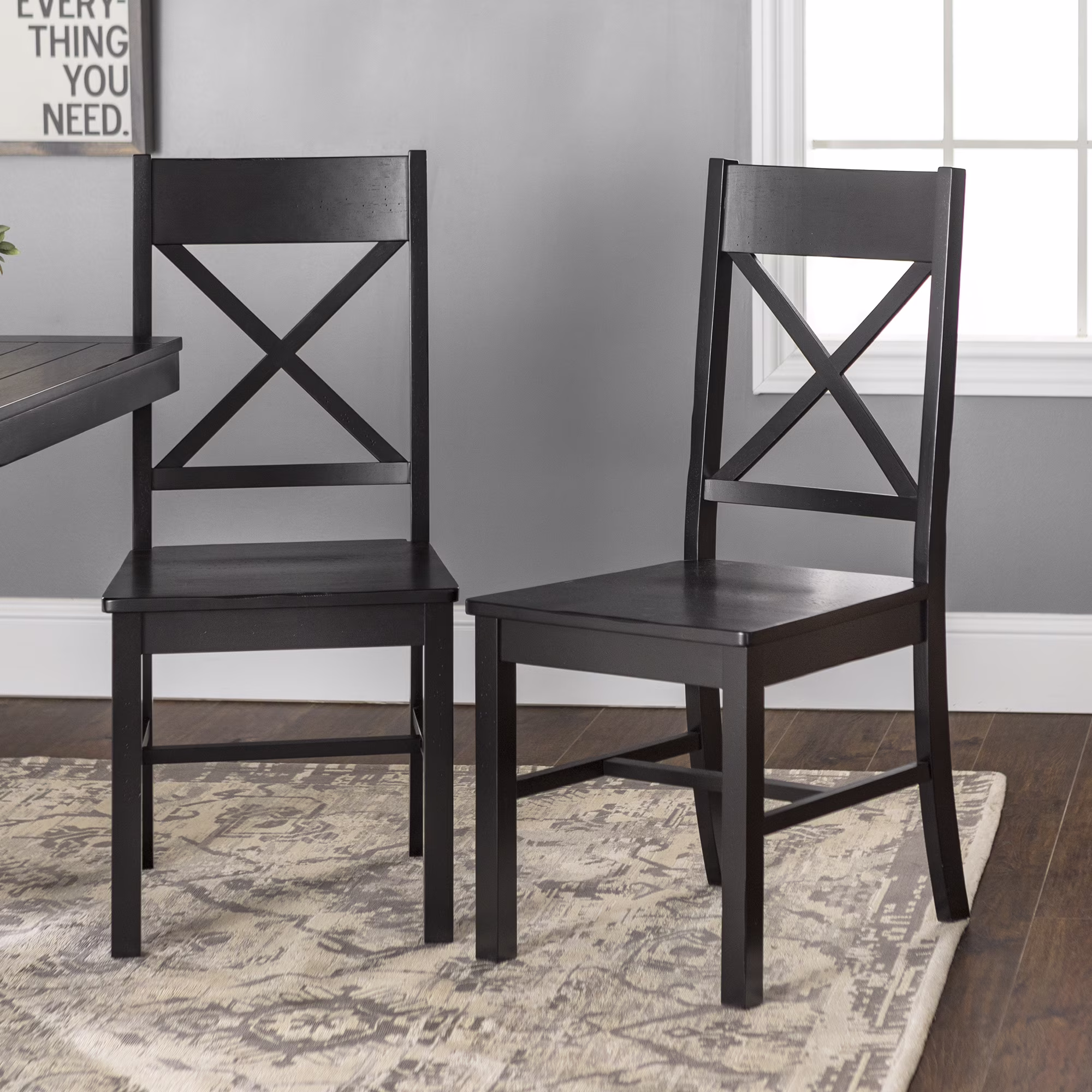Walker Edison Traditional Wood Dining Chairs, Set of 2, Antique Black