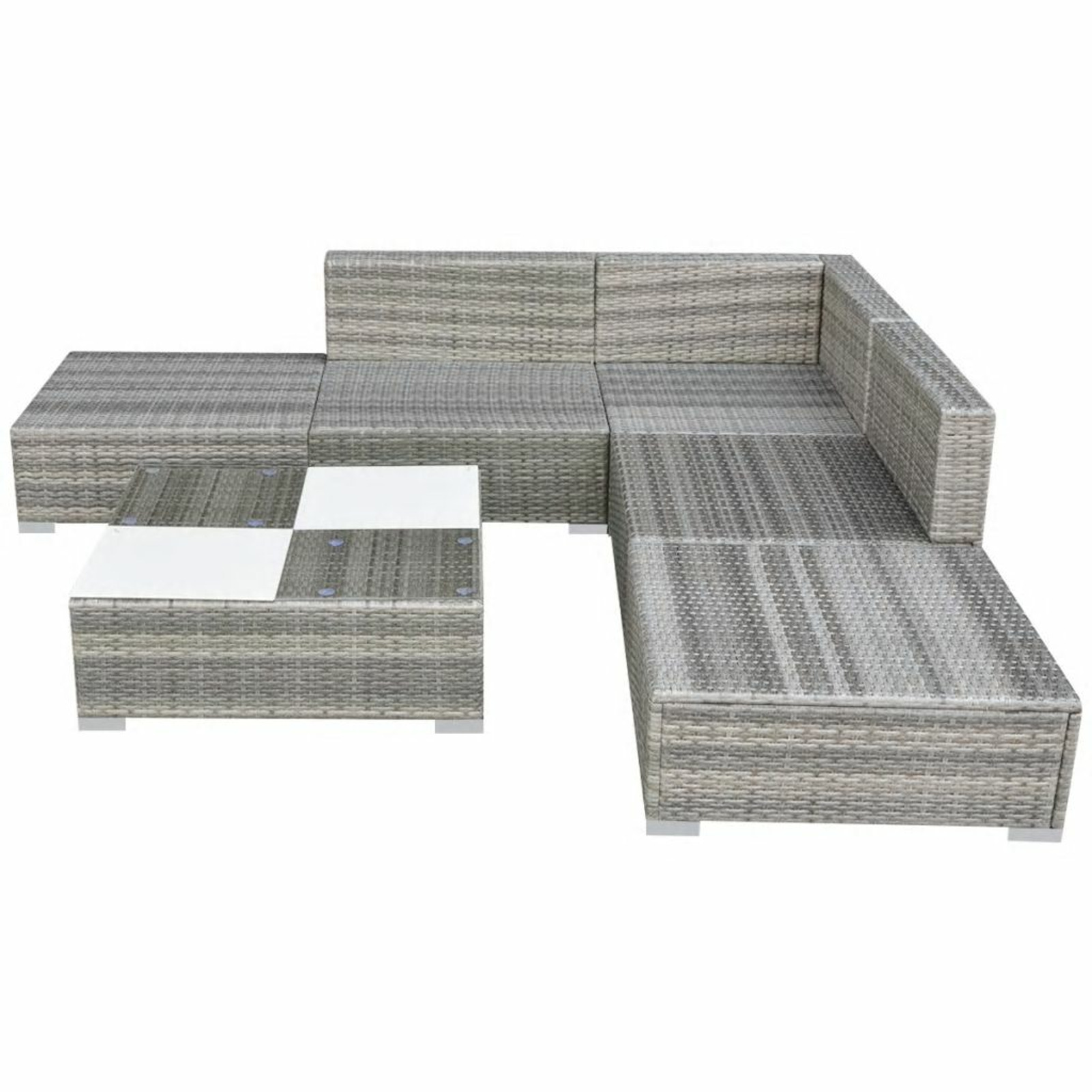 Dcenta 6 Piece Conversation Set, Cushioned Corner Sofa with 2 Center Sofas, 2 Footrest and Coffee Table, Gray Poly Rattan Sectional Sofa Set for Balcony Backyard Garden Patio Outdooor Furbiture