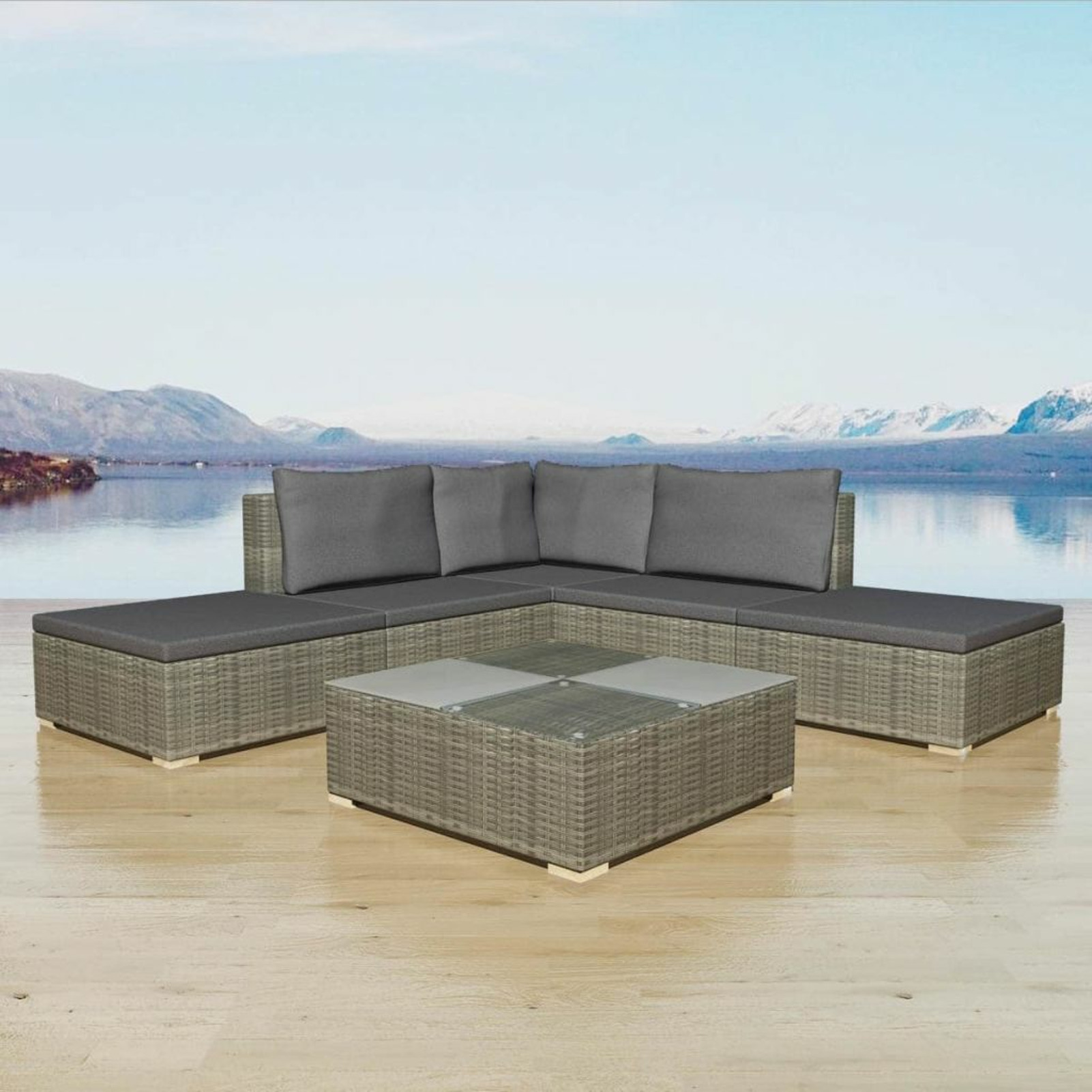 Anself 14 Piece Patio Lounge Set with Cushions 7 Corner and 6 Middle Sofas and Coffee Table Conversation Set Poly Rattan Dark Gray Outdoor Sectional Sofa Set for Garden, Balcony, Yard, Deck, Lawn