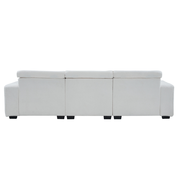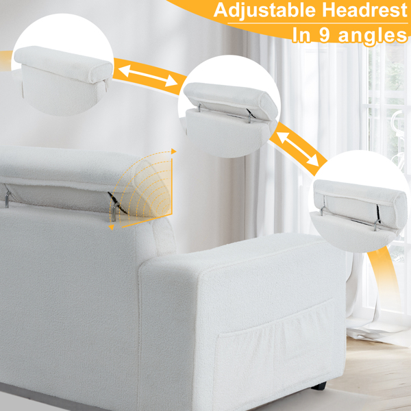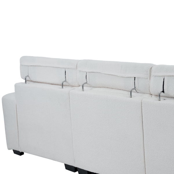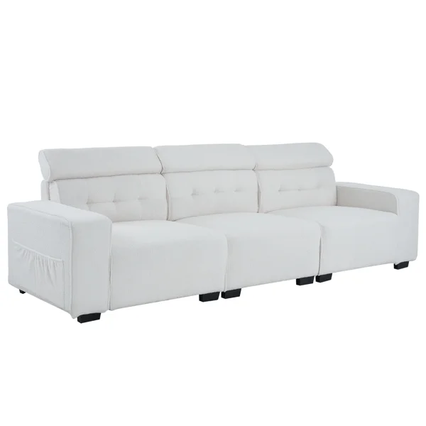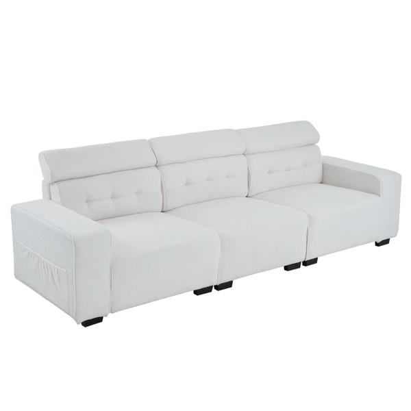 Teddy Velvet Indoor Multi-person Sofa 306*96*83cm 26cm Full Removable Armrests Triple with Side Pockets Backrest Pull Point Off-white 306*96*83cm Teddy Velvet, 26cm Fully Detachable Armrests, Three-Se
