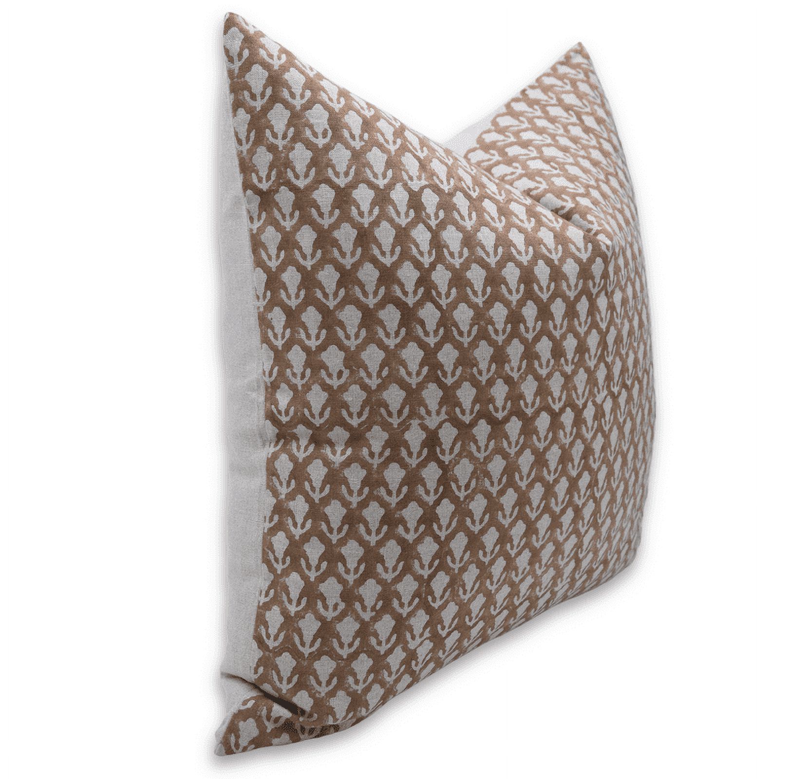 Fabdivine Block Print Throw Pillow Cover, 20x20 Inch Pure Linen Vintage Cushion Cover, Floral Print Boho Design Brown Pillow Cover for Sofa and Couch